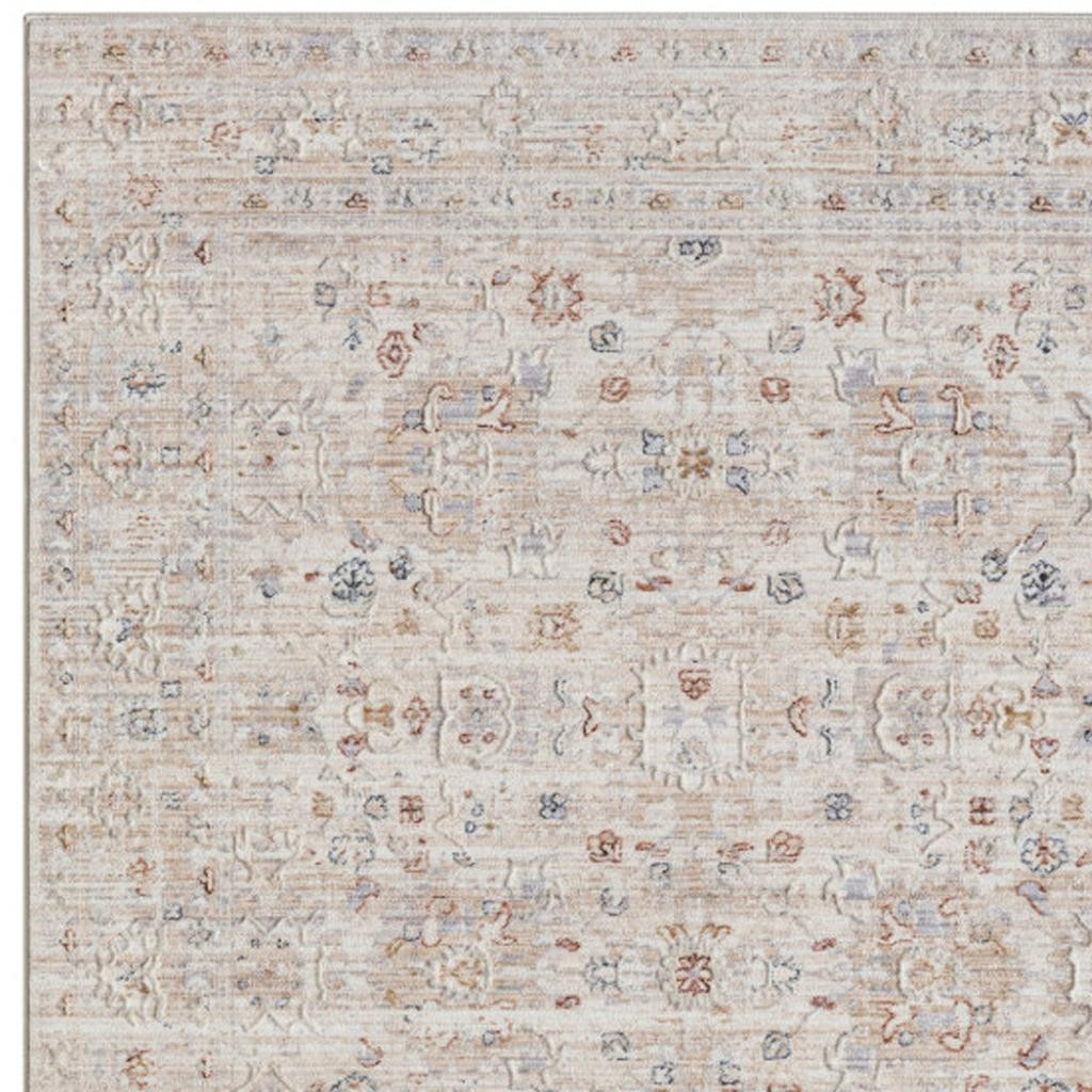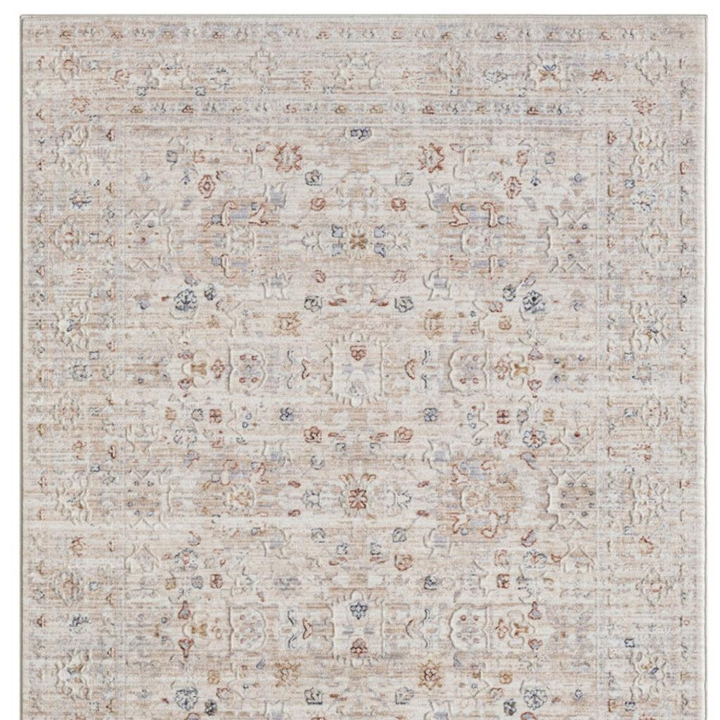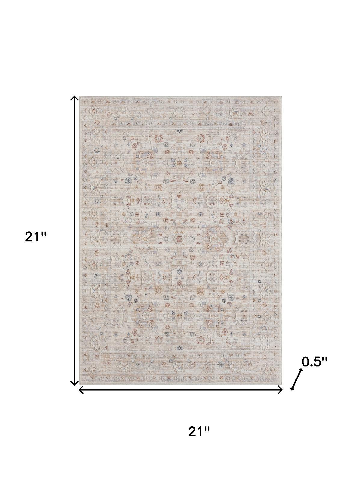This 2-foot x 2-foot ivory and cream floral square rug, is a great way to add warmth to a room. Rugs are a great way to showcase your style, hide imperfections, warm your home and reduce noise. This smaller sized, traditional styled rug is just what you need for your walkway, bedside, in front of door, cabinet, refrigerator, or chair. 21.00-inch h x 21.00-inch w x 0.50-inch d.