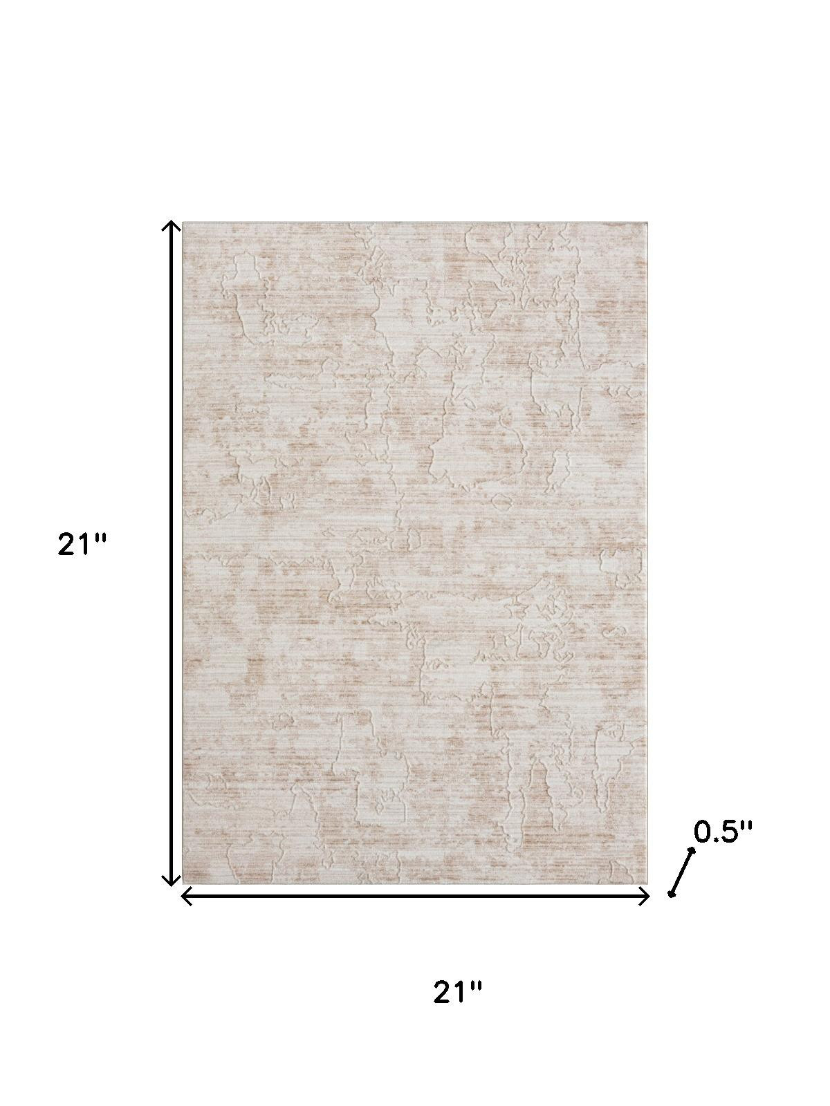 Add some artistry to your room with this 2-foot x 2-foot beige and ivory abstract square rug. Rugs are a great way to showcase your style, hide imperfections, warm your home and reduce noise. This smaller sized, modern styled rug is just what you need for your walkway, bedside, in front of door, cabinet, refrigerator, or chair. 21.00-inch h x 21.00-inch w x 0.50-inch d.