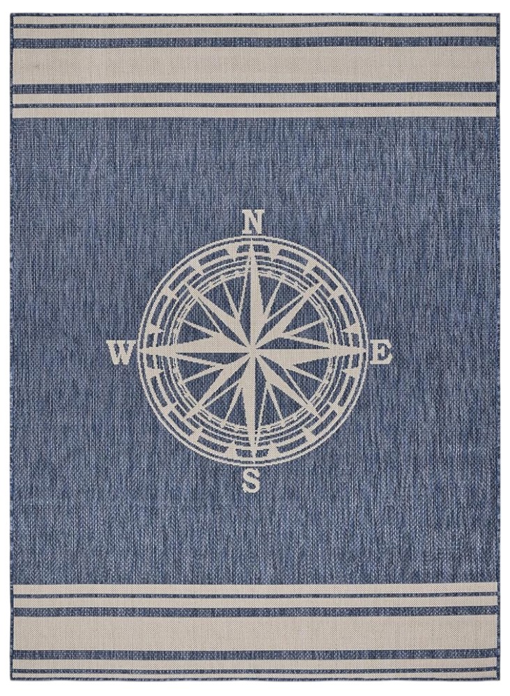 Add great coloration and comfortable texture to your space with this 6-foot x 9-foot navy blue and white geometric area rug. Built to last, this rug crafted from polypropylene blend fibers is known for its durability and long lasting appeal. Rugs are a great way to showcase your style, hide imperfections, warm your home and reduce noise. This larger sized, coastal styled rug is ready to create a focal point or statement piece in your room. 108.00-inch h x 72.00-inch w x 0.11-inch d.