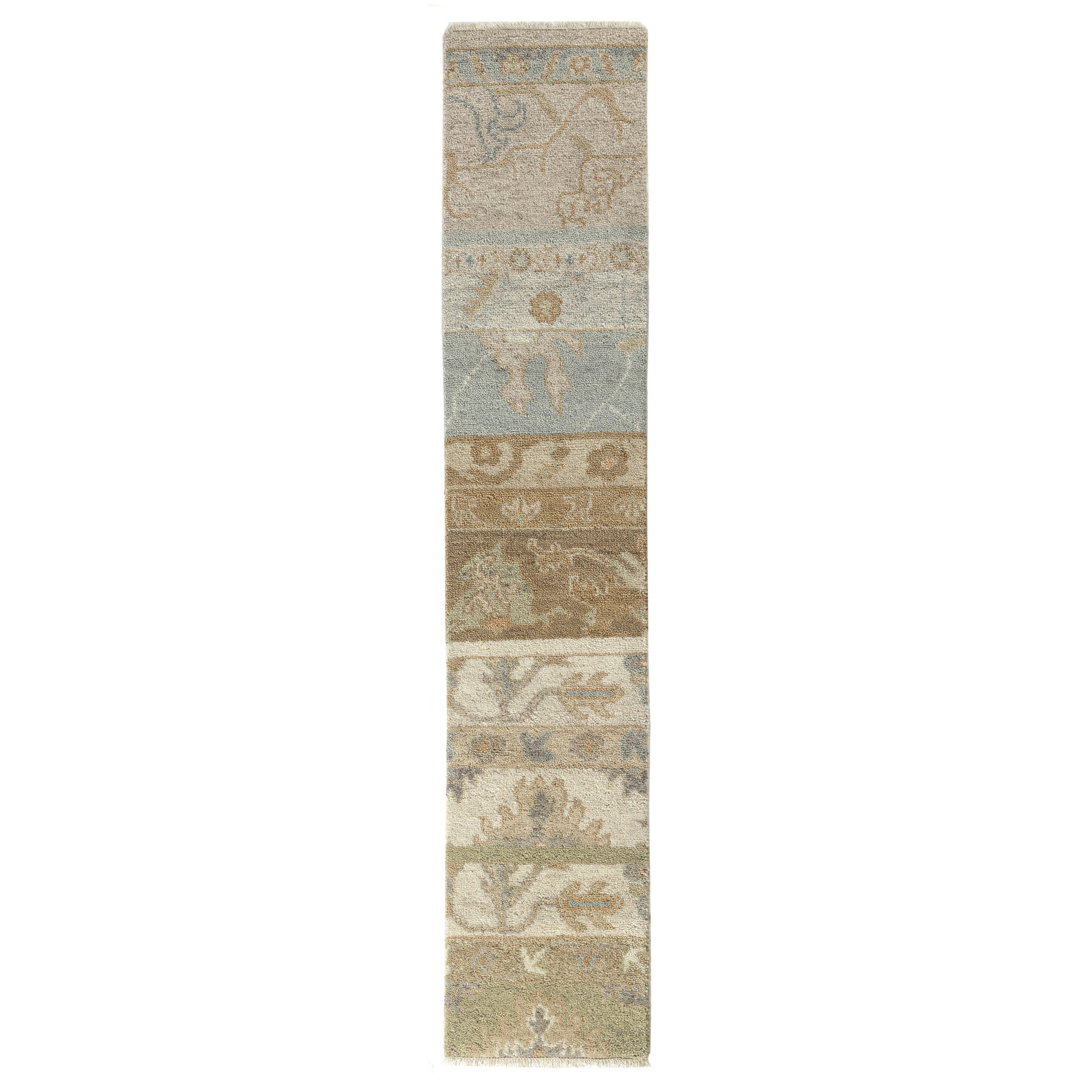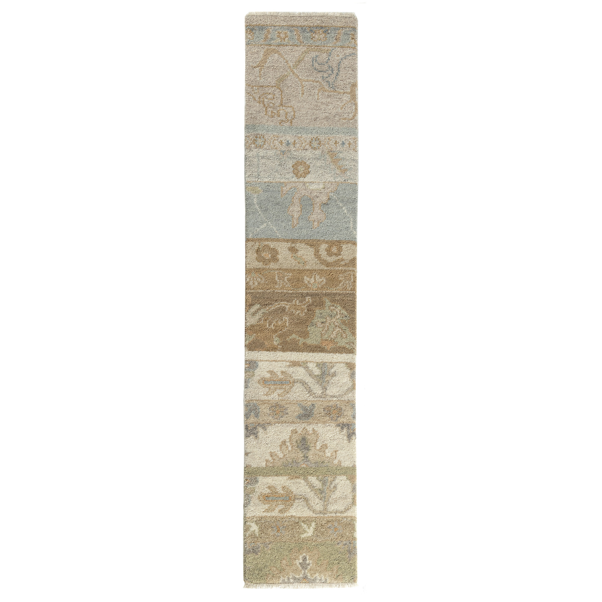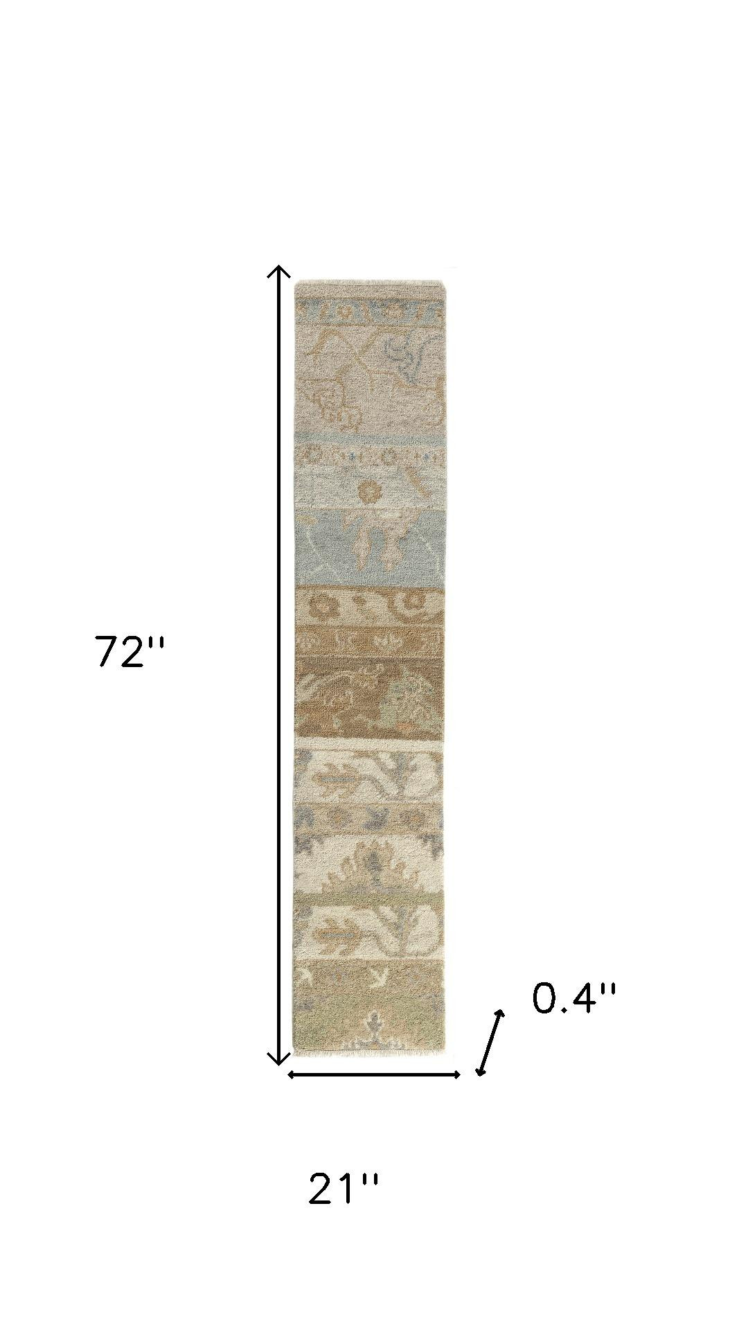 Set an inviting tone in your space with this 2-foot x 2-foot beige and gray wool abstract hand knotted area rug. Crafted by skilled artisans, this hand knotted rug is genuine and unique. No two will be exactly alike. Rugs are a great way to showcase your style, hide imperfections, warm your home and reduce noise. This larger sized, traditional styled rug is ready to create a focal point or statement piece in your room. 72.00-inch h x 21.00-inch w x 0.40-inch d.