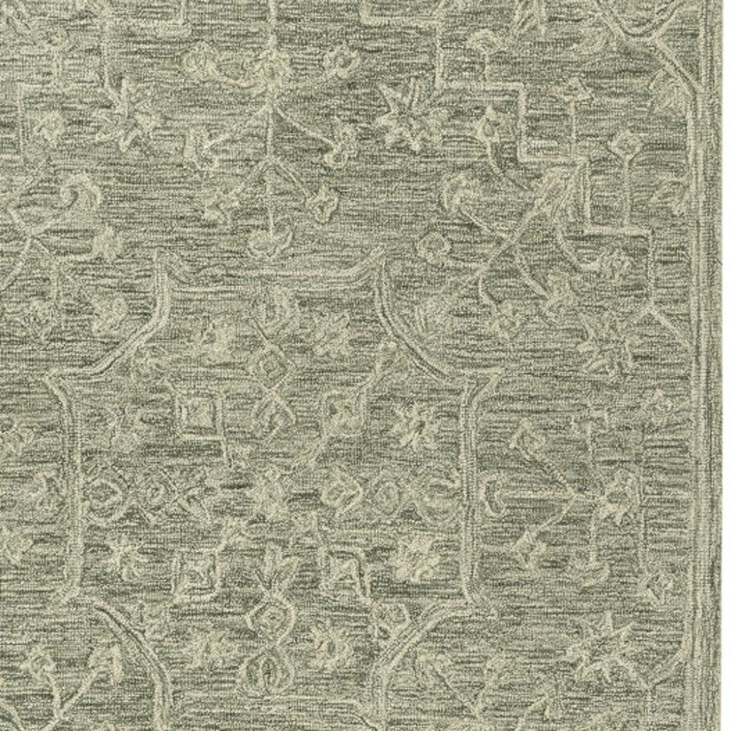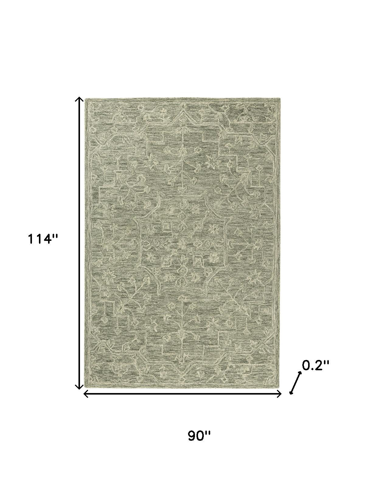 Set an inviting tone in your space with this 8-foot x 10-foot green and ivory wool floral hand tufted area rug. Crafted by skilled artisans, this hand tufted rug is genuine and unique. No two will be exactly alike. Rugs are a great way to showcase your style, hide imperfections, warm your home and reduce noise. This larger sized, transitional styled rug is ready to create a focal point or statement piece in your room. 114.00-inch h x 90.00-inch w x 0.20-inch d.