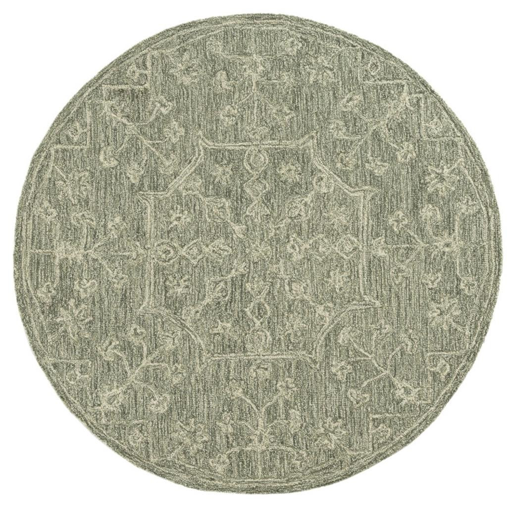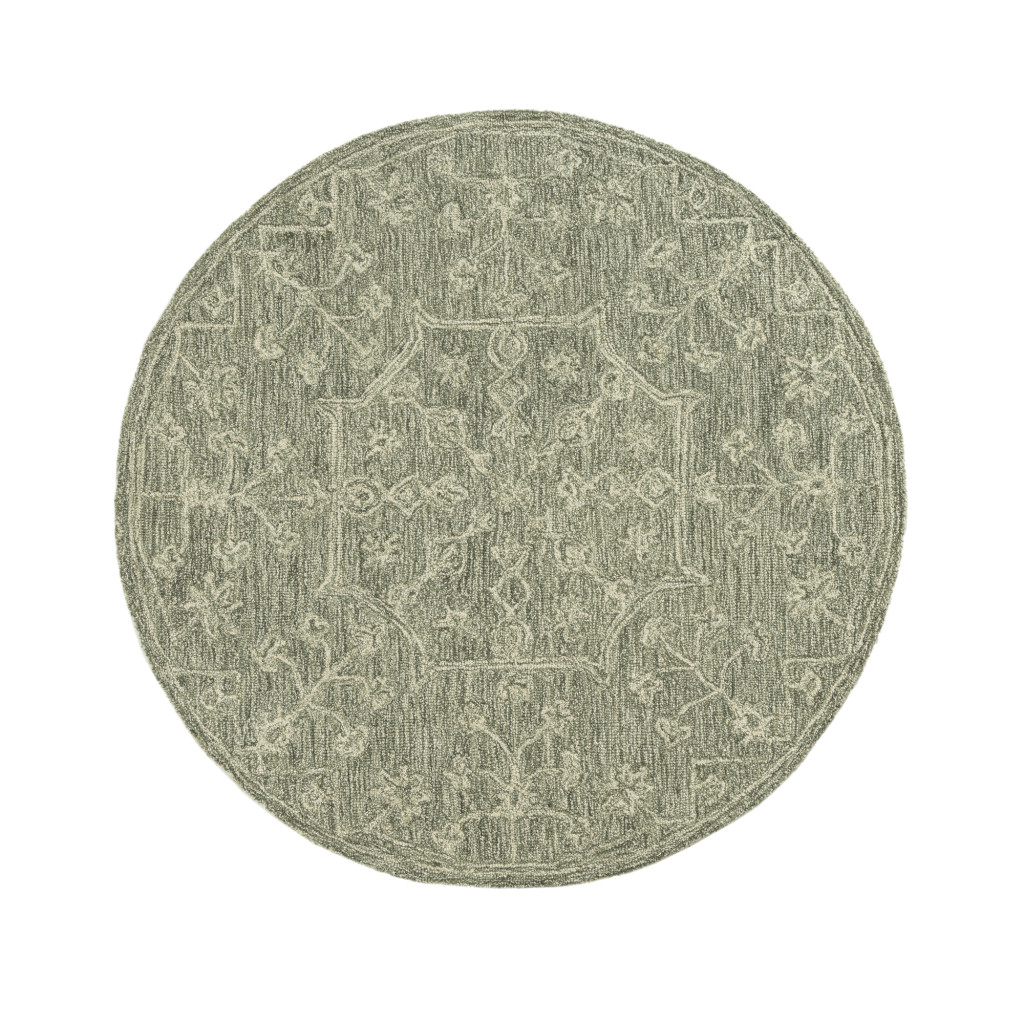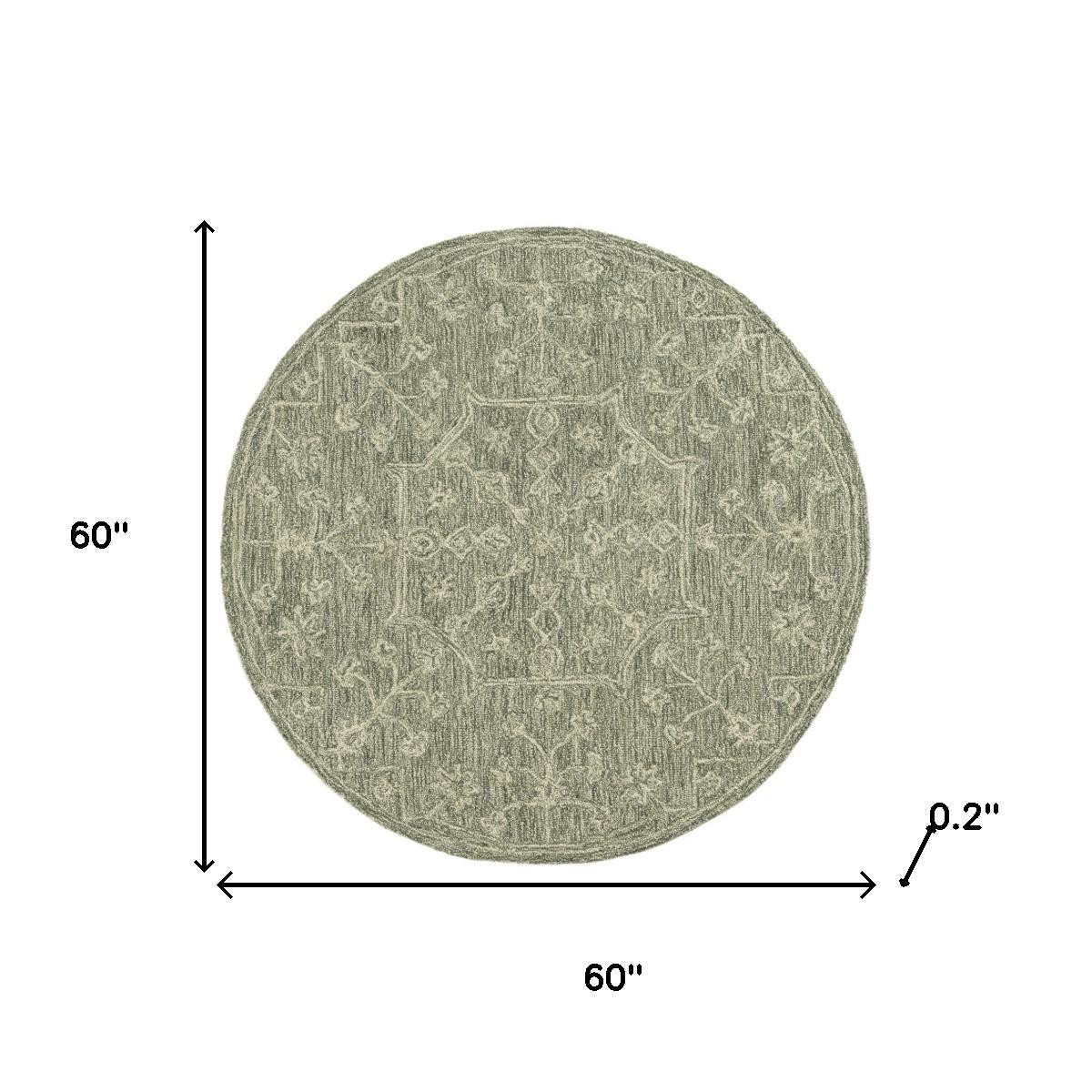 This 5-foot green and ivory wool floral hand tufted round rug, is a great way to add warmth to a room. Crafted by skilled artisans, this hand tufted rug is genuine and unique. No two will be exactly alike. Rugs are a great way to showcase your style, hide imperfections, warm your home and reduce noise. This larger sized, transitional styled rug is ready to create a focal point or statement piece in your room. 60.00-inch h x 60.00-inch w x 0.20-inch d.