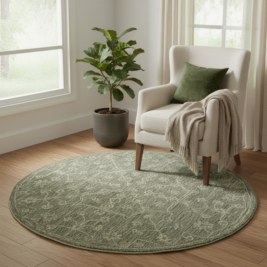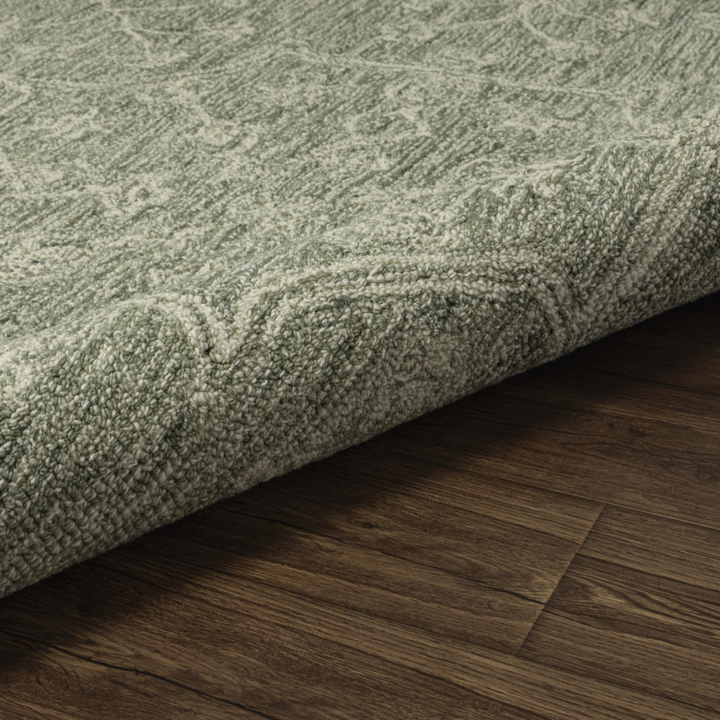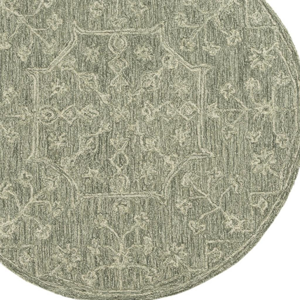 This 5-foot green and ivory wool floral hand tufted round rug, is a great way to add warmth to a room. Crafted by skilled artisans, this hand tufted rug is genuine and unique. No two will be exactly alike. Rugs are a great way to showcase your style, hide imperfections, warm your home and reduce noise. This larger sized, transitional styled rug is ready to create a focal point or statement piece in your room. 60.00-inch h x 60.00-inch w x 0.20-inch d.