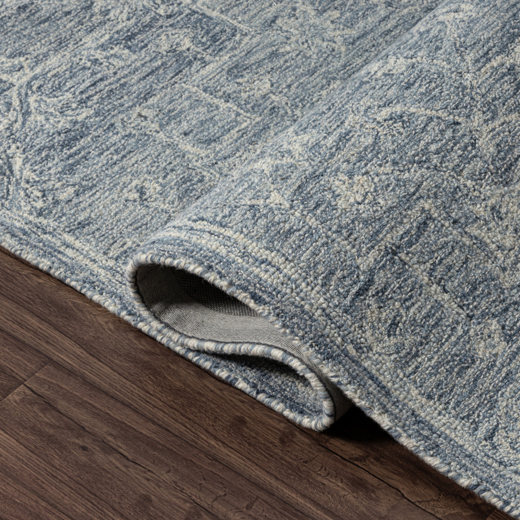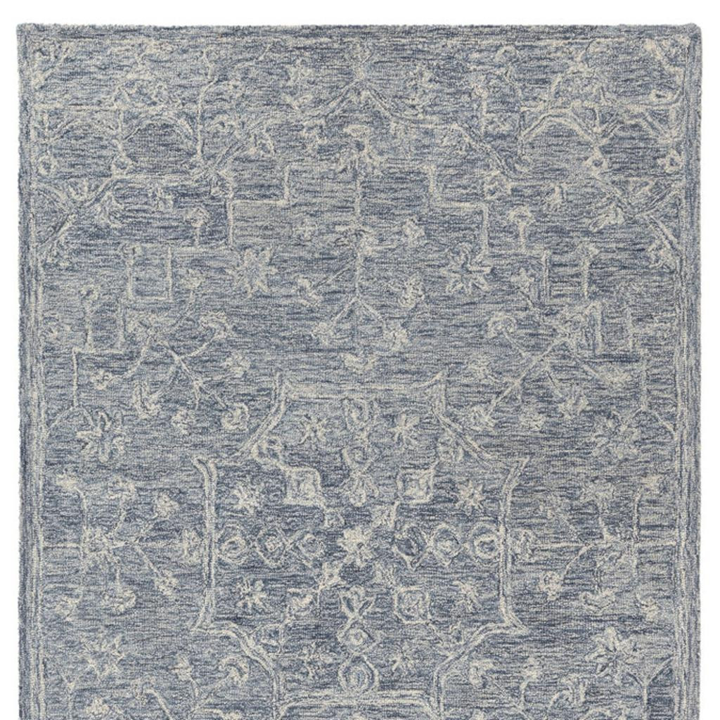 Add great coloration and comfortable texture to your space with this 8-foot x 10-foot blue and ivory wool floral hand tufted area rug. Crafted by skilled artisans, this hand tufted rug is genuine and unique. No two will be exactly alike. Rugs are a great way to showcase your style, hide imperfections, warm your home and reduce noise. This larger sized, transitional styled rug is ready to create a focal point or statement piece in your room. 114.00-inch h x 90.00-inch w x 0.20-inch d.