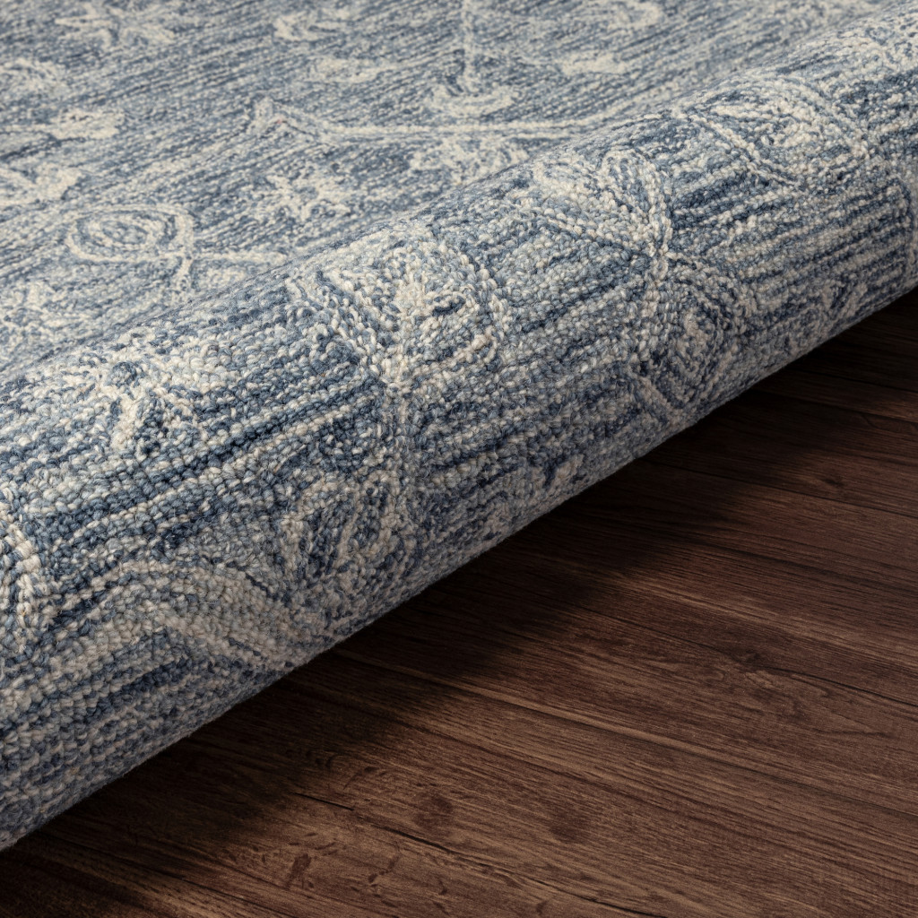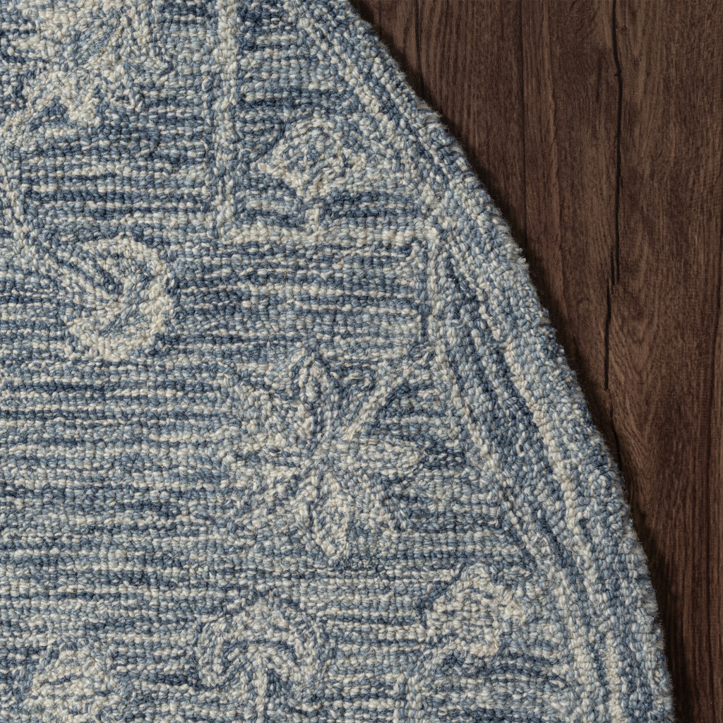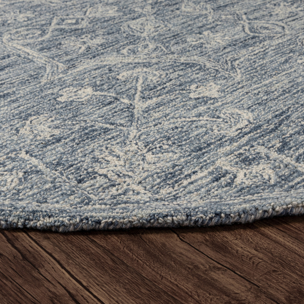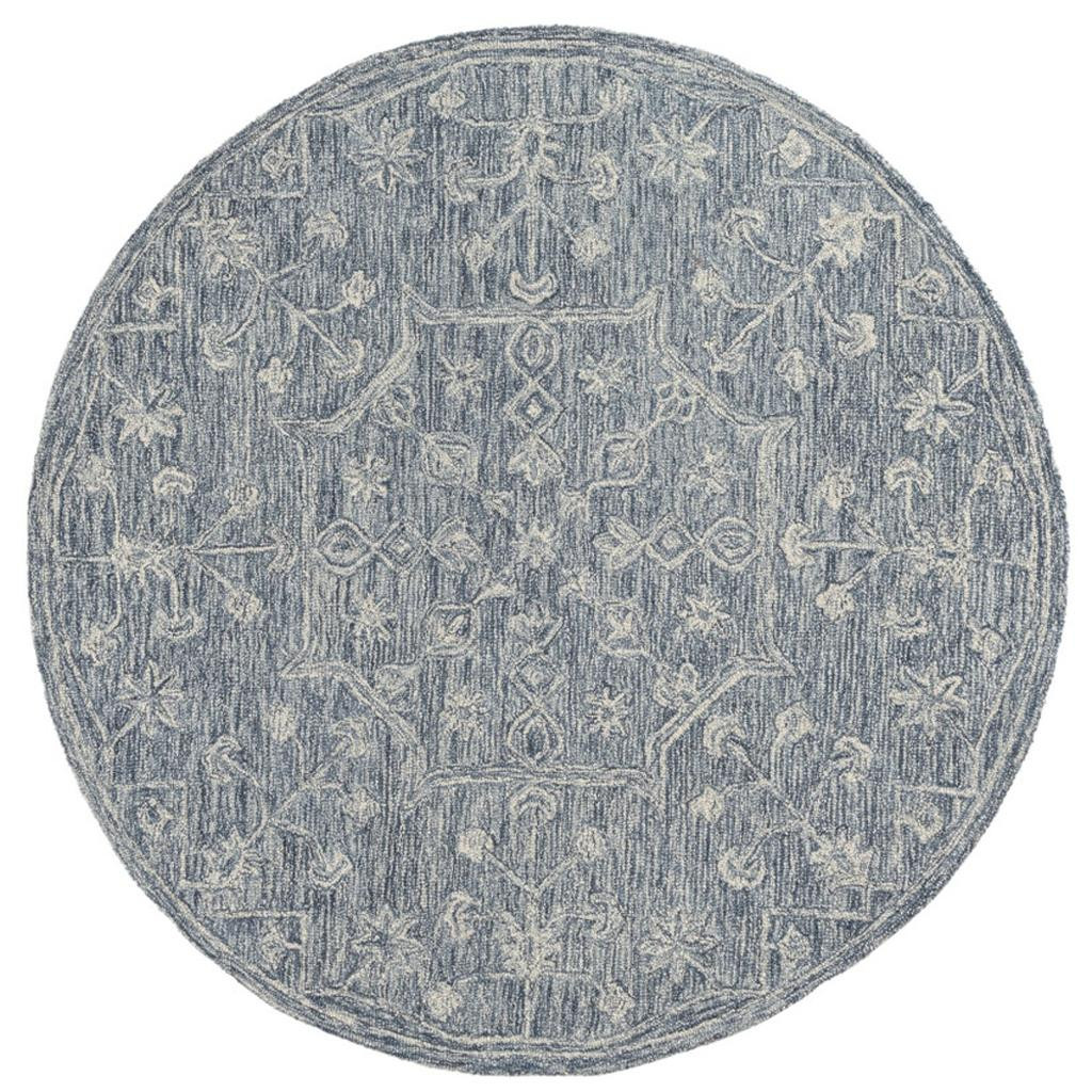 Add great coloration and comfortable texture to your space with this 5-foot blue and ivory wool floral hand tufted round rug. Crafted by skilled artisans, this hand tufted rug is genuine and unique. No two will be exactly alike. Rugs are a great way to showcase your style, hide imperfections, warm your home and reduce noise. This larger sized, transitional styled rug is ready to create a focal point or statement piece in your room. 60.00-inch h x 60.00-inch w x 0.20-inch d.