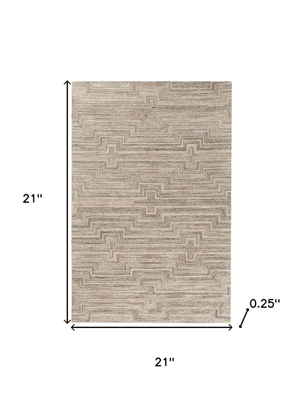 This 2-foot x 2-foot taupe and ivory geometric hand tufted square rug, is a great way to add warmth to a room. Crafted by skilled artisans, this hand tufted rug is genuine and unique. No two will be exactly alike. Crafted from wool blend fibers that give this piece premium texture, refinement, and appeal. Rugs are a great way to showcase your style, hide imperfections, warm your home and reduce noise. This smaller sized, contemporary styled rug is just what you need for your walkway, bedside, in front of door, cabinet, refrigerator, or chair. 21.00-inch h x 21.00-inch w x 0.25-inch d.
