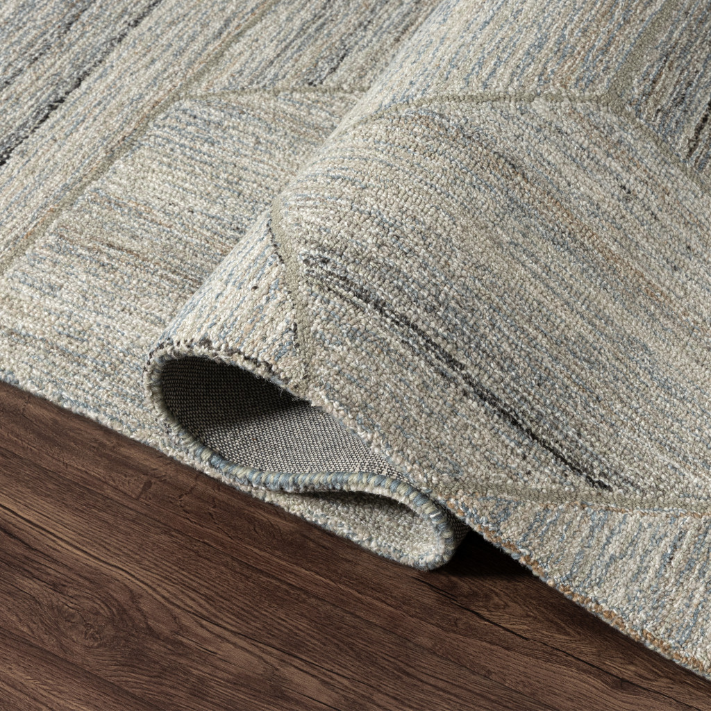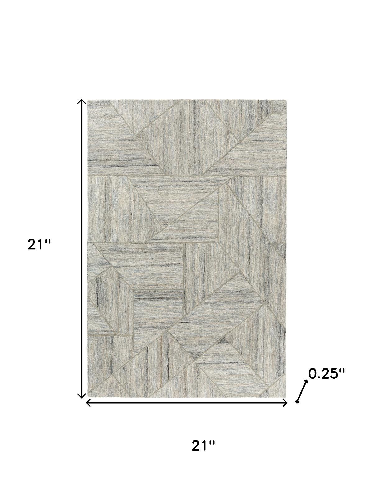 Add great coloration and comfortable texture to your space with this 2-foot x 2-foot blue and ivory geometric hand tufted square rug. Crafted by skilled artisans, this hand tufted rug is genuine and unique. No two will be exactly alike. Crafted from wool blend fibers that give this piece premium texture, refinement, and appeal. Rugs are a great way to showcase your style, hide imperfections, warm your home and reduce noise. This smaller sized, contemporary styled rug is just what you need for your walkway, bedside, in front of door, cabinet, refrigerator, or chair. 21.00-inch h x 21.00-inch w x 0.25-inch d.