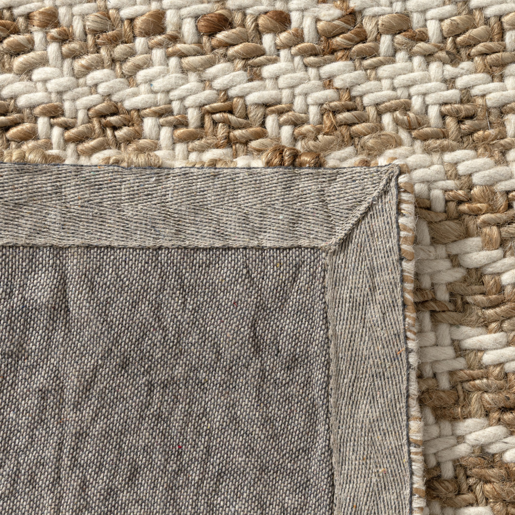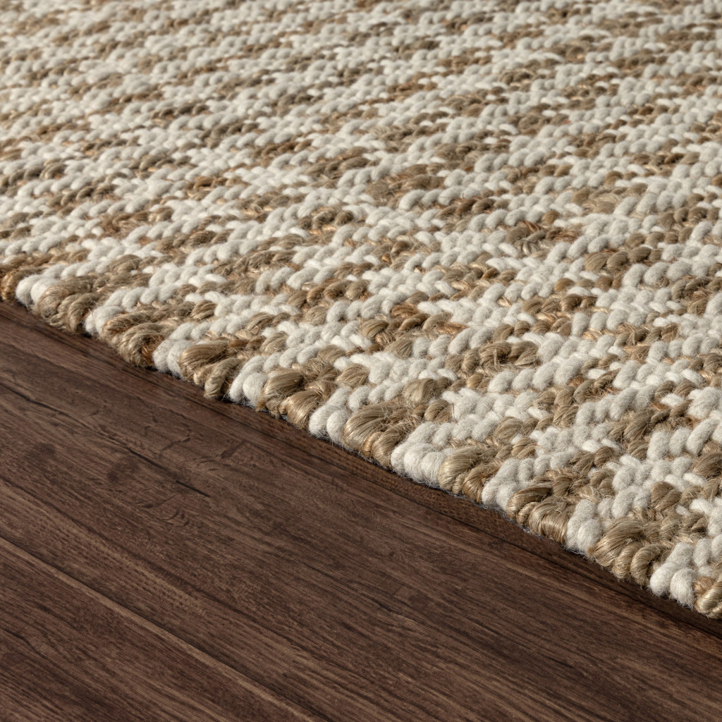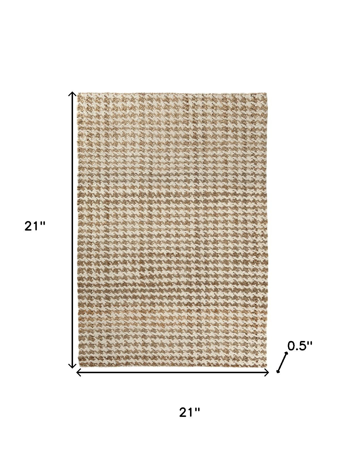 Add some artistry to your room with this 2-foot x 2-foot natural and ivory jute striped hand woven square rug. Crafted by skilled artisans, this hand woven rug is genuine and unique. No two will be exactly alike. Crafted from jute fibers that give this piece premium texture, refinement, and appeal. Rugs are a great way to showcase your style, hide imperfections, warm your home and reduce noise. This smaller sized, transitional styled rug is just what you need for your walkway, bedside, in front of door, cabinet, refrigerator, or chair. 21.00-inch h x 21.00-inch w x 0.50-inch d.