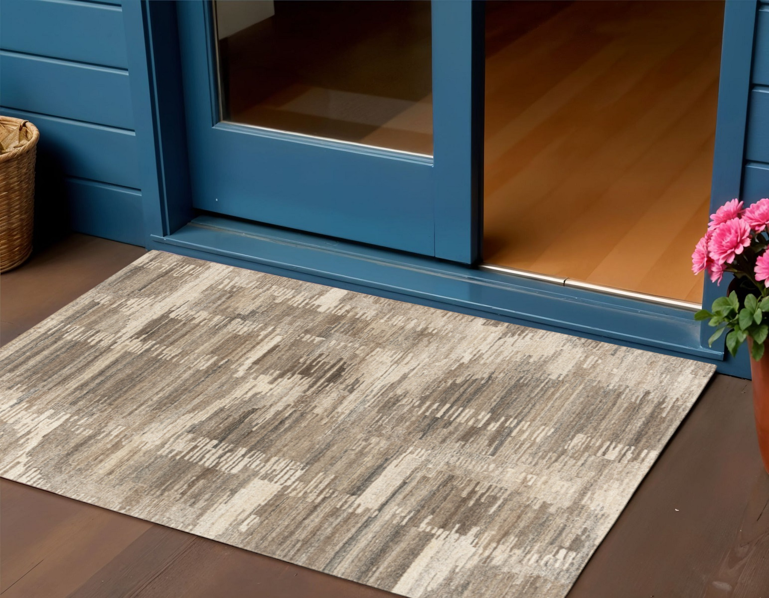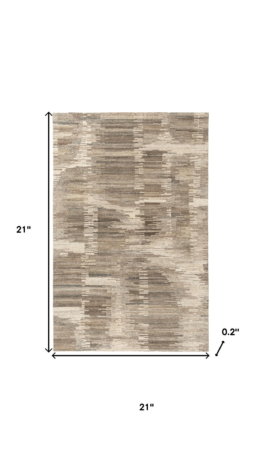 Set an inviting tone in your space with this 2-foot x 2-foot brown and beige abstract hand tufted square rug. Crafted by skilled artisans, this hand tufted rug is genuine and unique. No two will be exactly alike. Crafted from wool blend fibers that give this piece premium texture, refinement, and appeal. Rugs are a great way to showcase your style, hide imperfections, warm your home and reduce noise. This smaller sized, contemporary styled rug is just what you need for your walkway, bedside, in front of door, cabinet, refrigerator, or chair. 21.00-inch h x 21.00-inch w x 0.20-inch d.