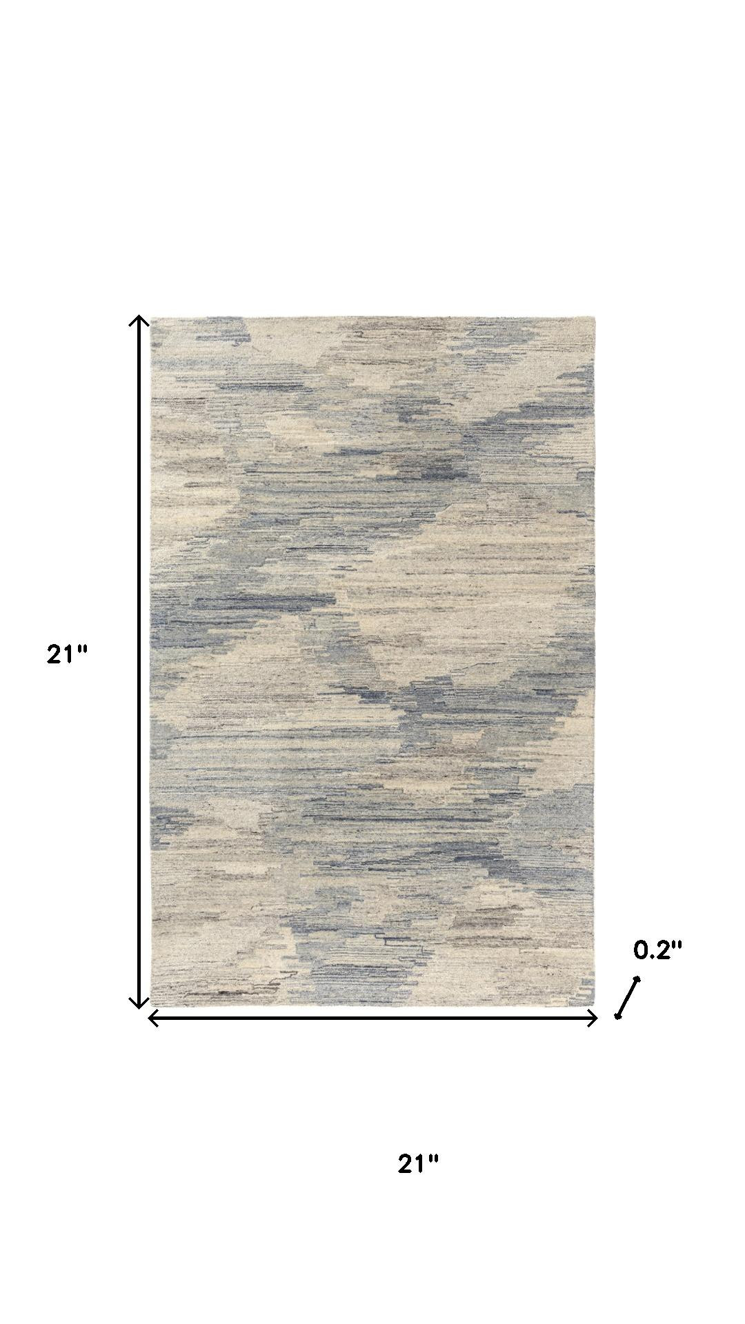 This 2-foot x 2-foot blue and gray abstract hand tufted square rug, is a great way to add warmth to a room. Crafted by skilled artisans, this hand tufted rug is genuine and unique. No two will be exactly alike. Crafted from wool blend fibers that give this piece premium texture, refinement, and appeal. Rugs are a great way to showcase your style, hide imperfections, warm your home and reduce noise. This smaller sized, contemporary styled rug is just what you need for your walkway, bedside, in front of door, cabinet, refrigerator, or chair. 21.00-inch h x 21.00-inch w x 0.20-inch d.