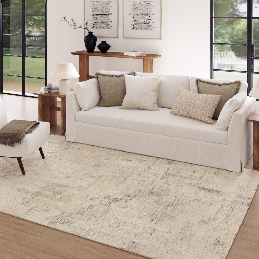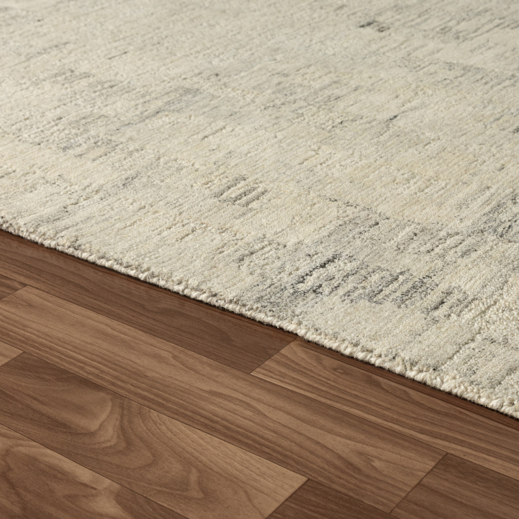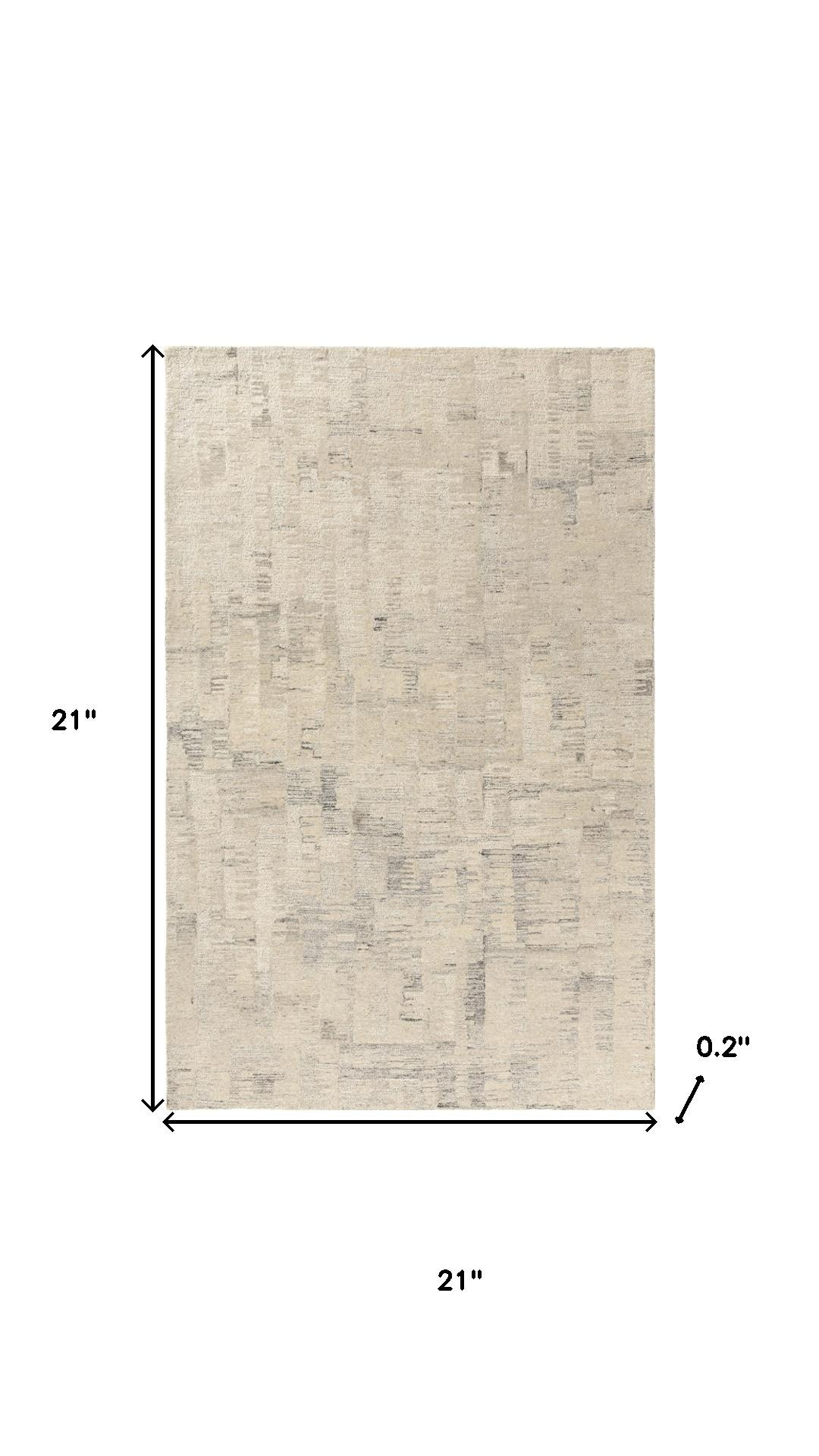 Set an inviting tone in your space with this 2-foot x 2-foot ivory and silver abstract hand tufted square rug. Crafted by skilled artisans, this hand tufted rug is genuine and unique. No two will be exactly alike. Crafted from wool blend fibers that give this piece premium texture, refinement, and appeal. Rugs are a great way to showcase your style, hide imperfections, warm your home and reduce noise. This smaller sized, contemporary styled rug is just what you need for your walkway, bedside, in front of door, cabinet, refrigerator, or chair. 21.00-inch h x 21.00-inch w x 0.20-inch d.