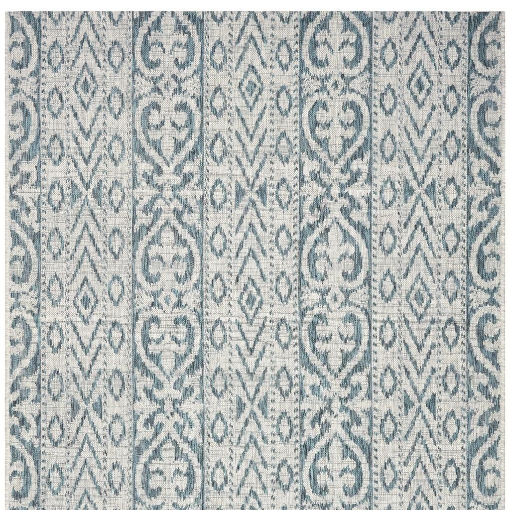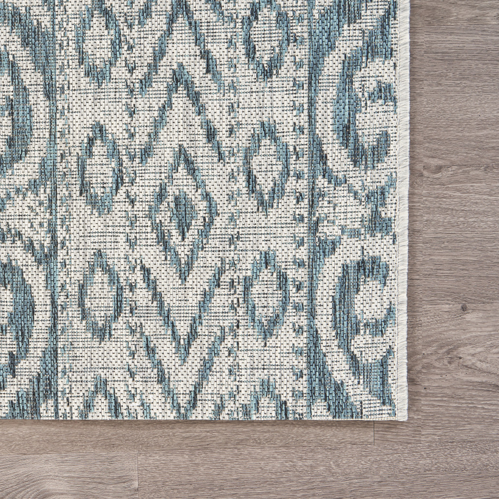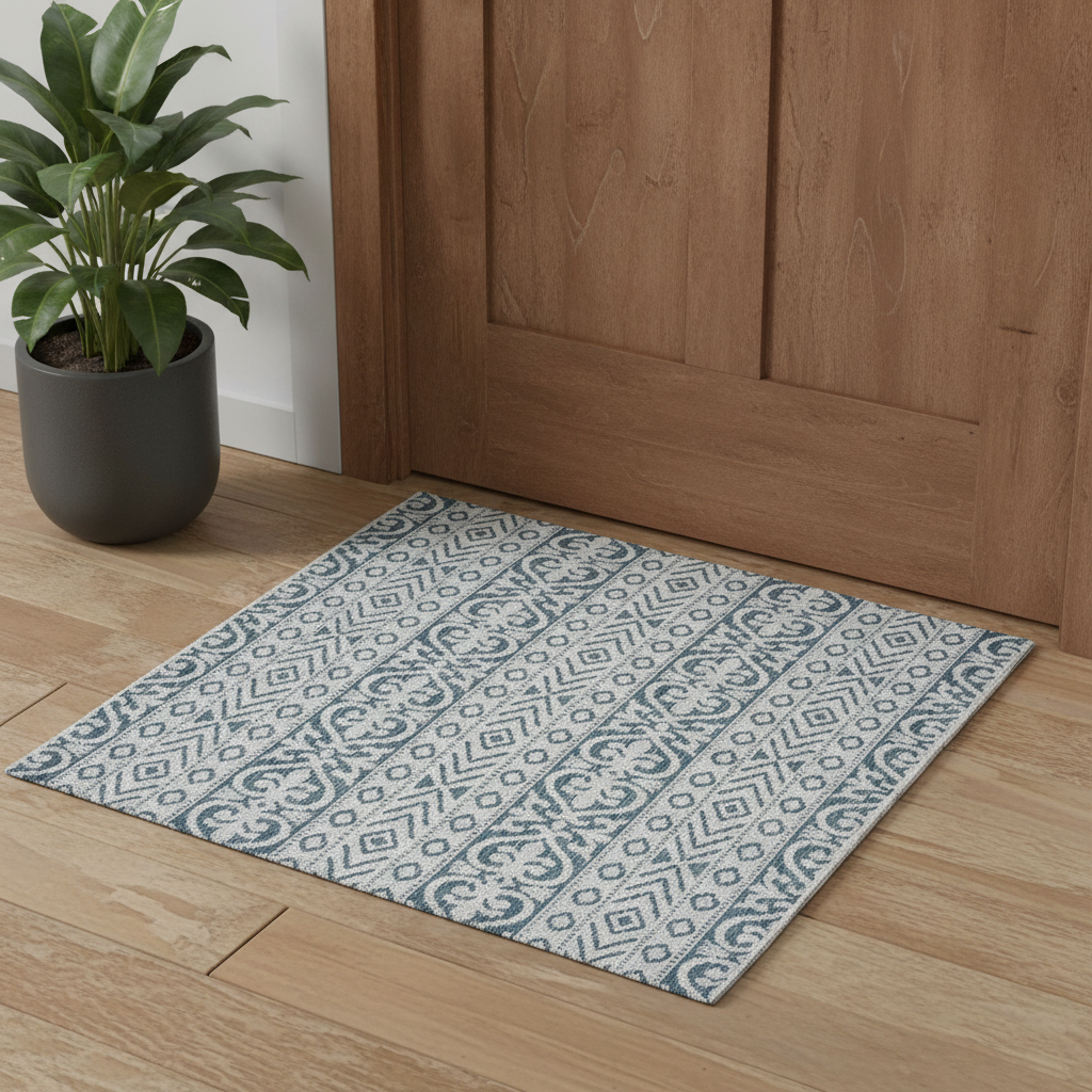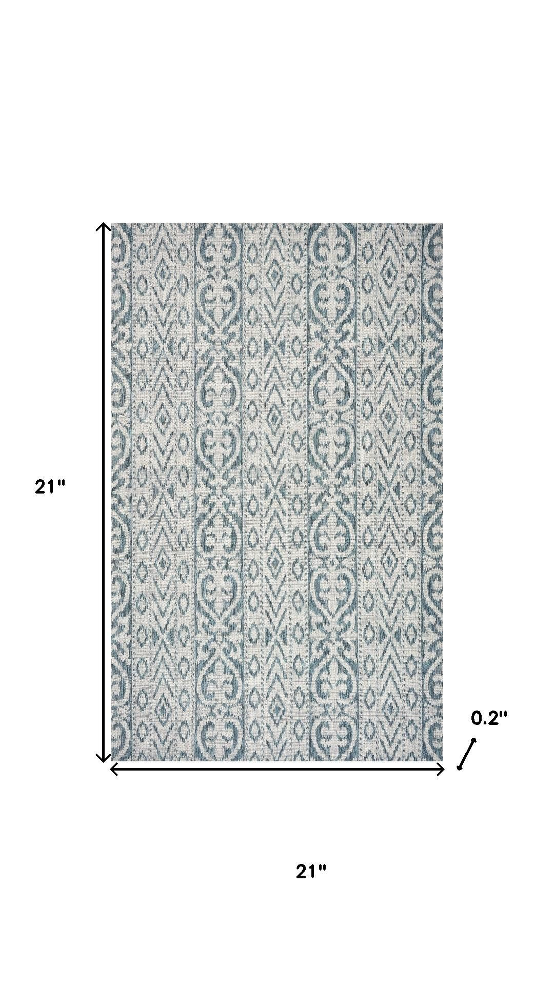 Set an inviting tone in your space with this 2-foot x 2-foot blue and gray ikat square rug. Built to last, this rug crafted from polypropylene fibers is known for its durability and long lasting appeal. Rugs are a great way to showcase your style, hide imperfections, warm your home and reduce noise. This smaller sized, transitional styled rug is just what you need for your walkway, bedside, in front of door, cabinet, refrigerator, or chair. 21.00-inch h x 21.00-inch w x 0.20-inch d.