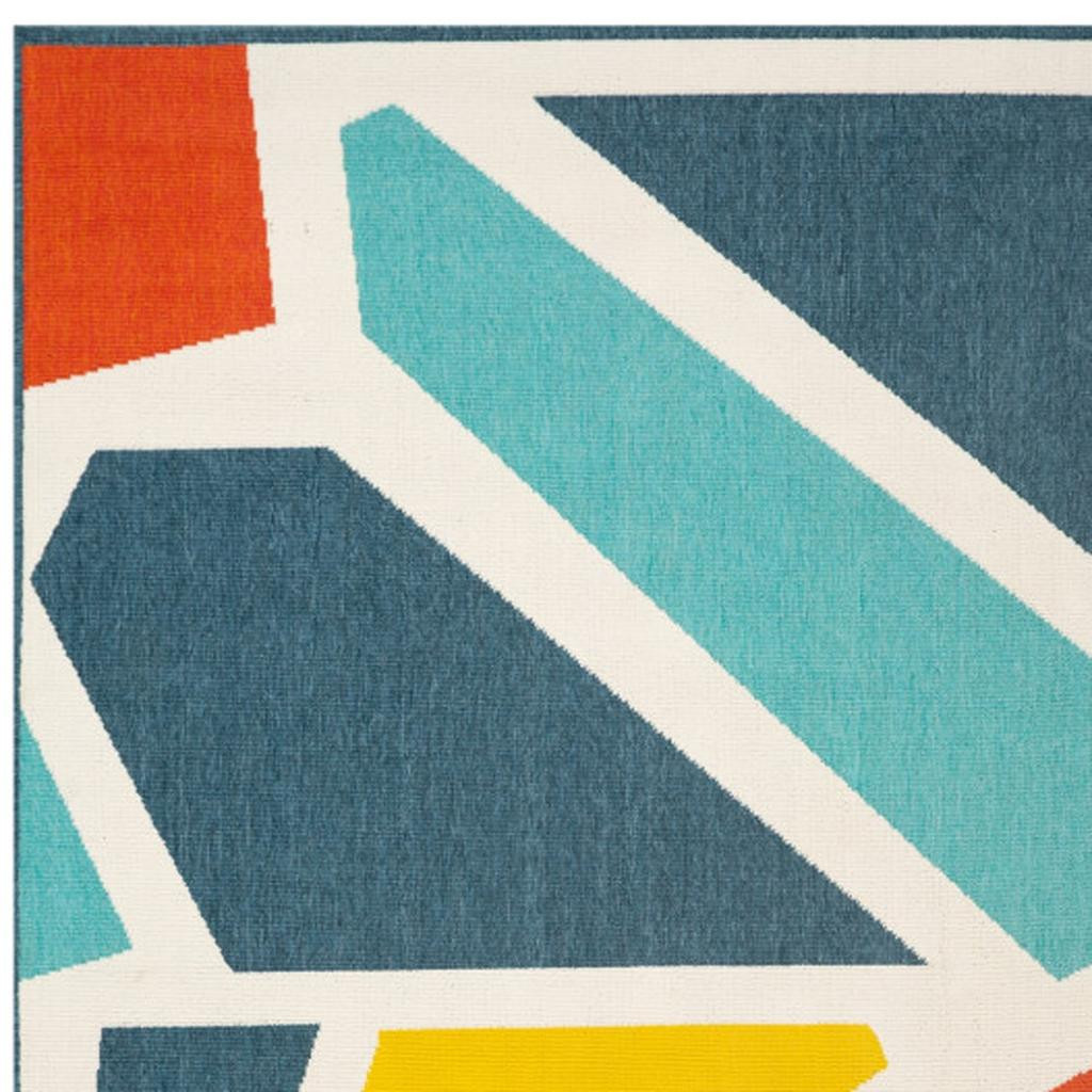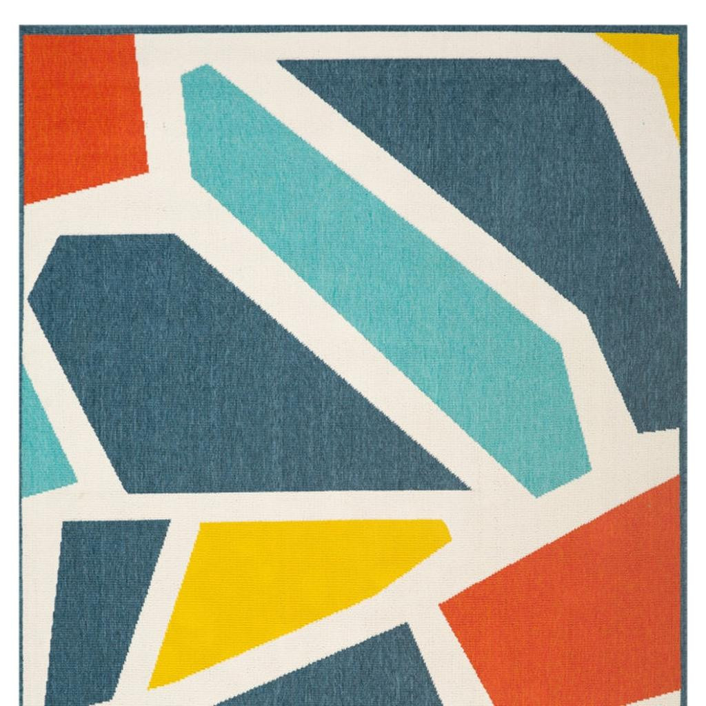 Add great coloration and comfortable texture to your space with this 5-foot x 7-foot white blue and red abstract area rug. Built to last, this rug crafted from polypropylene fibers is known for its durability and long lasting appeal. Rugs are a great way to showcase your style, hide imperfections, warm your home and reduce noise. This larger sized, modern styled rug is ready to create a focal point or statement piece in your room. 84.00-inch h x 60.00-inch w x 0.50-inch d.