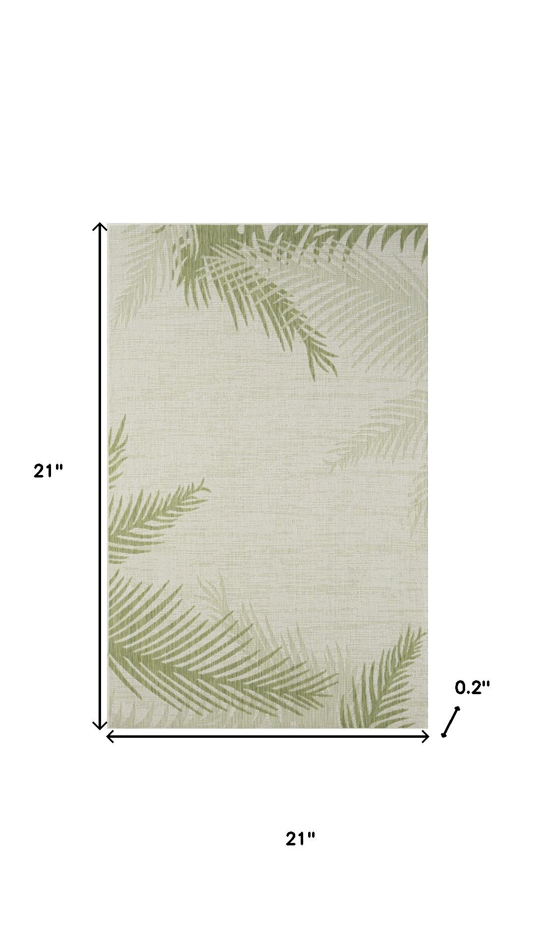 Add great coloration and comfortable texture to your space with this 2-foot x 2-foot green and ivory floral square rug. Ideal for spaces with kids and pets, this rug is stain resistant to help repel dirt and spilled liquids. Built to last, this rug crafted from polypropylene fibers is known for its durability and long lasting appeal. Rugs are a great way to showcase your style, hide imperfections, warm your home and reduce noise. This smaller sized, tropical styled rug is just what you need for your walkway, bedside, in front of door, cabinet, refrigerator, or chair. 21.00-inch h x 21.00-inch w x 0.20-inch d.