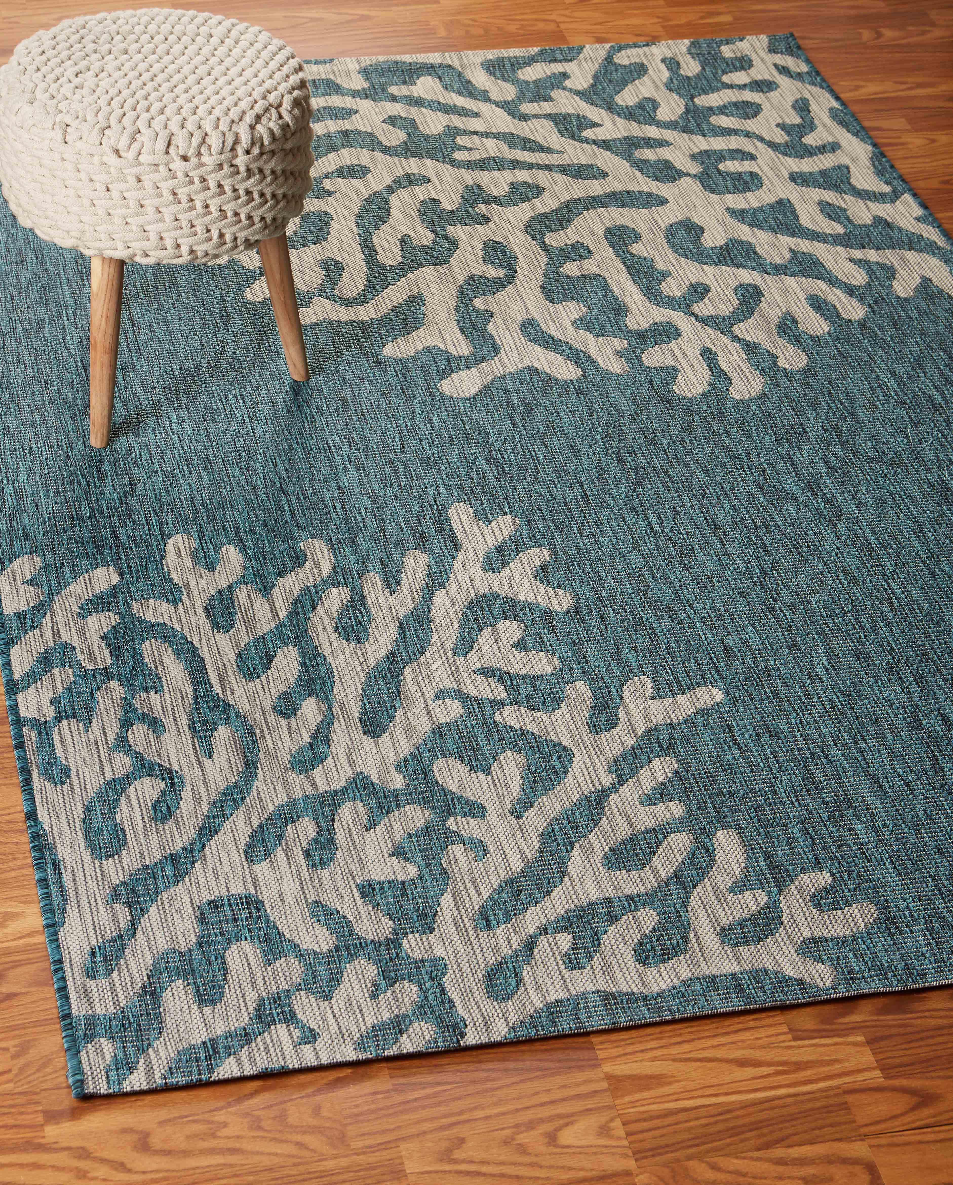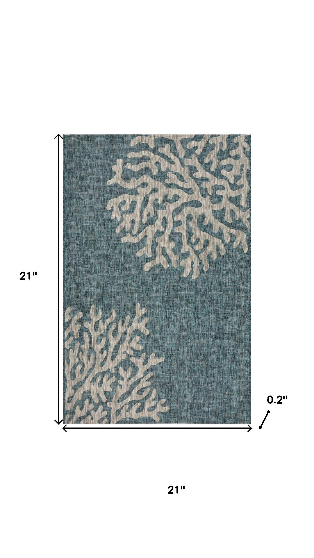 This 2-foot x 2-foot teal and ivory floral square rug, is a great way to add warmth to a room. Built to last, this rug crafted from polypropylene fibers is known for its durability and long lasting appeal. Rugs are a great way to showcase your style, hide imperfections, warm your home and reduce noise. This smaller sized, tropical styled rug is just what you need for your walkway, bedside, in front of door, cabinet, refrigerator, or chair. 21.00-inch h x 21.00-inch w x 0.20-inch d.