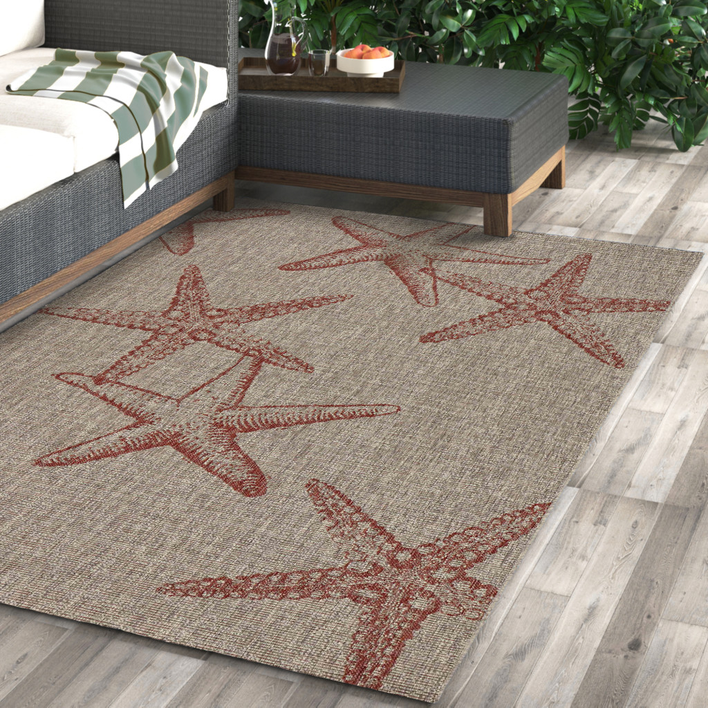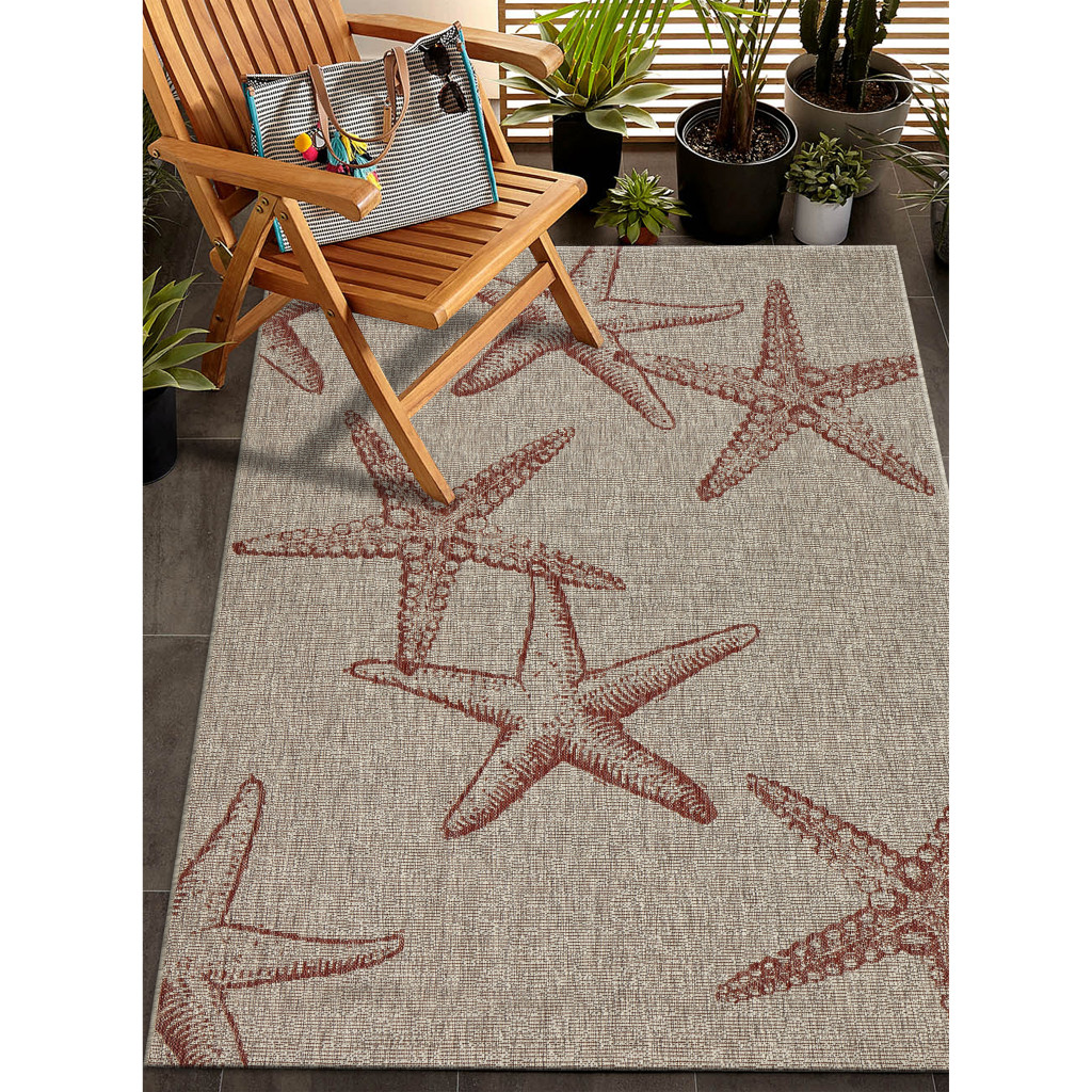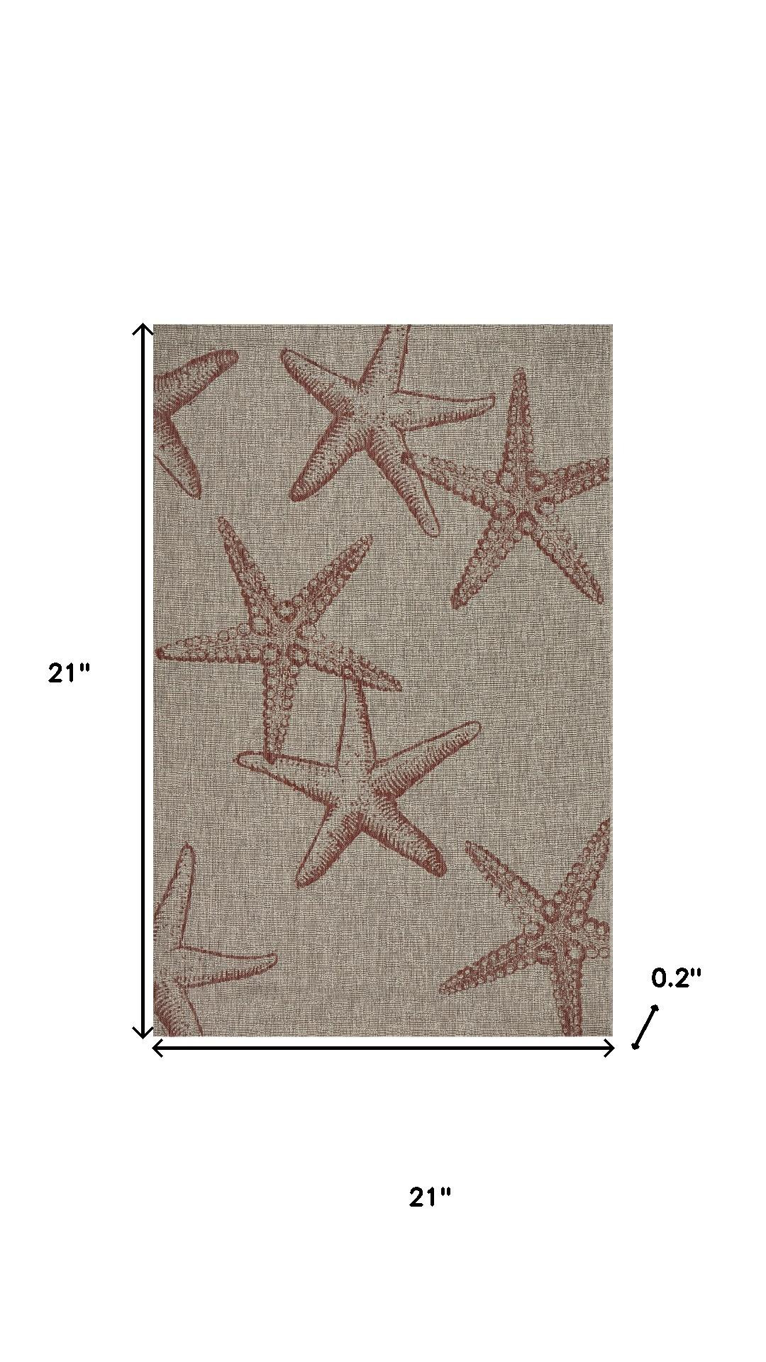 This 2-foot x 2-foot rust and beige starfish square rug, is a great way to add warmth to a room. Built to last, this rug crafted from polypropylene fibers is known for its durability and long lasting appeal. Rugs are a great way to showcase your style, hide imperfections, warm your home and reduce noise. This smaller sized, coastal styled rug is just what you need for your walkway, bedside, in front of door, cabinet, refrigerator, or chair. 21.00-inch h x 21.00-inch w x 0.20-inch d.