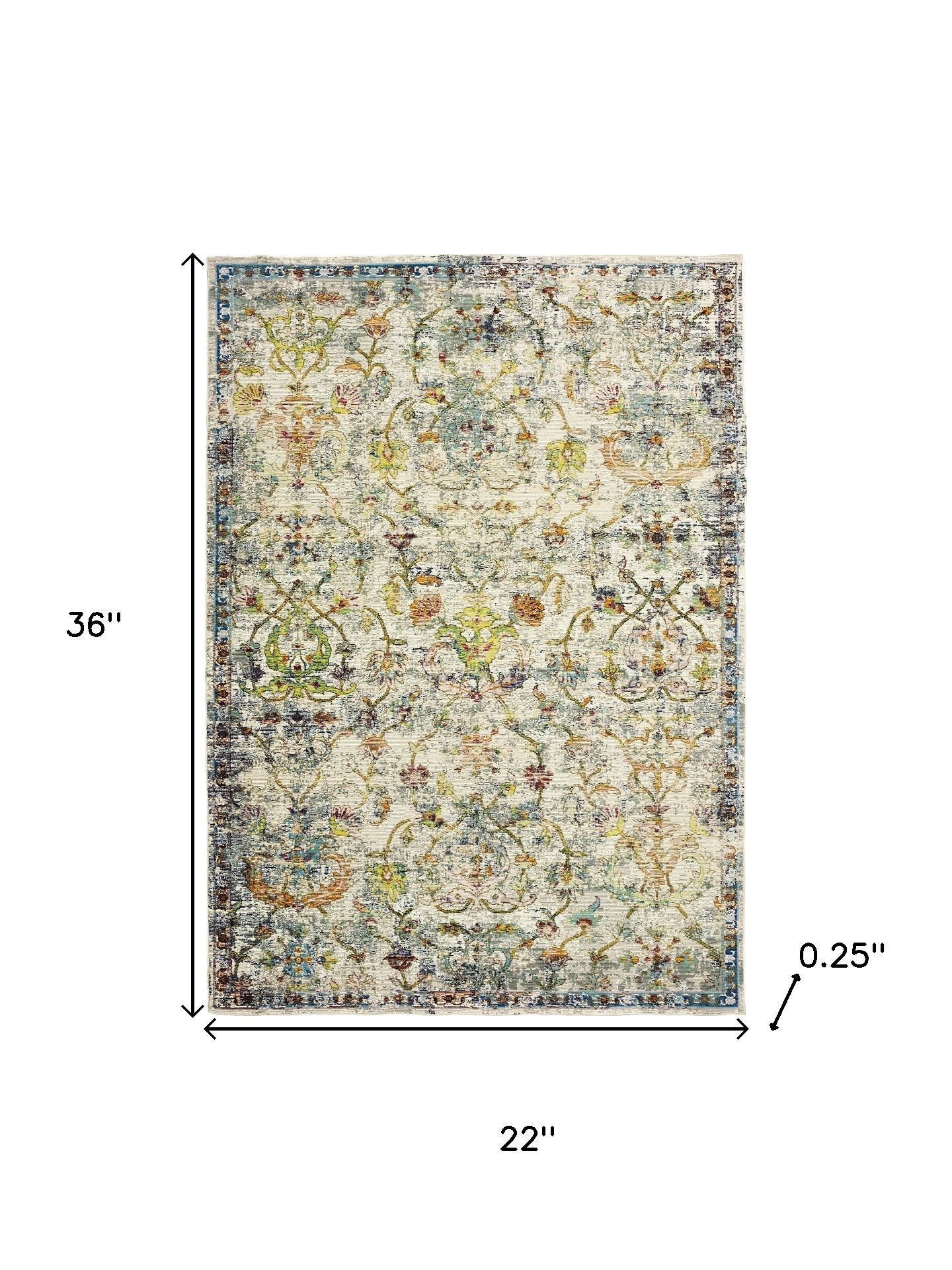 Add some artistry to your room with this 2-foot x 3-foot green and ivory floral area rug. Ideal for spaces with kids and pets, this rug is stain resistant to help repel dirt and spilled liquids. Built to last, this rug crafted from polypropylene fibers is known for its durability and long lasting appeal. Rugs are a great way to showcase your style, hide imperfections, warm your home and reduce noise. This smaller sized, contemporary styled rug is just what you need for your walkway, bedside, in front of door, cabinet, refrigerator, or chair. 36.00-inch h x 22.00-inch w x 0.25-inch d.