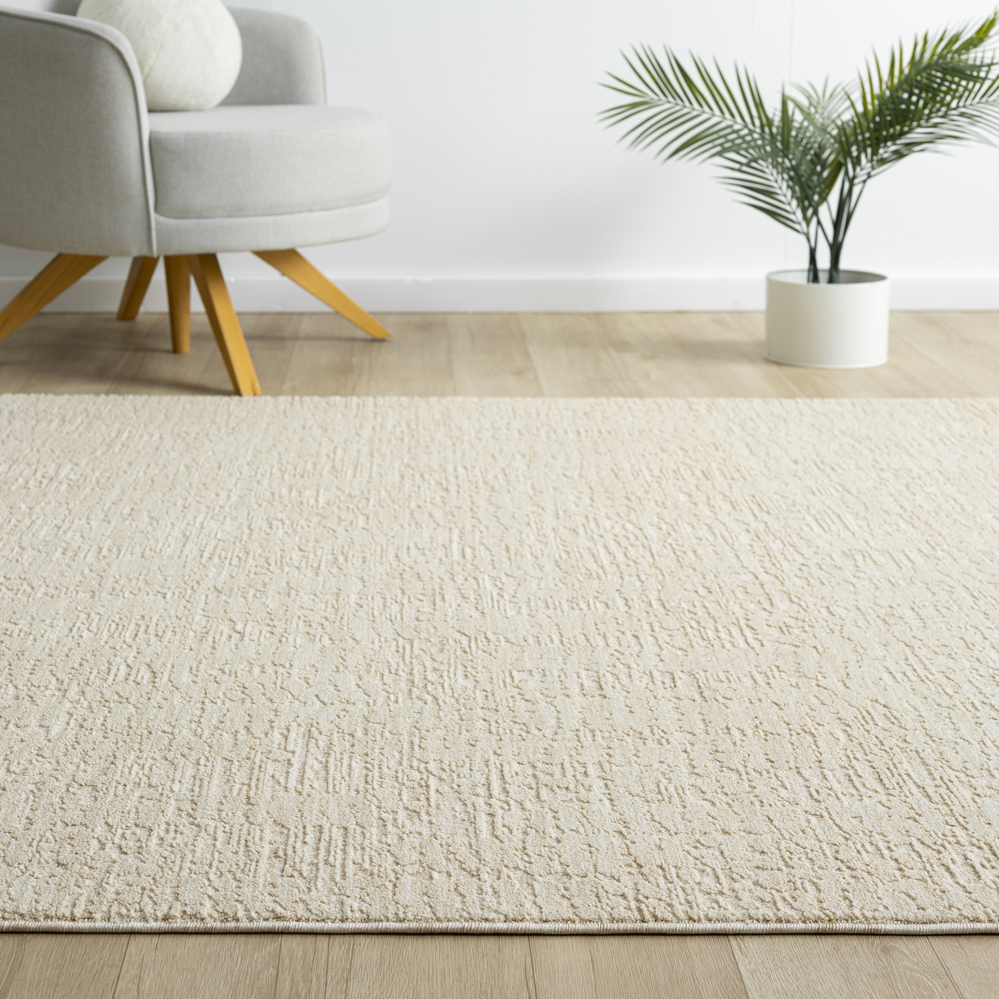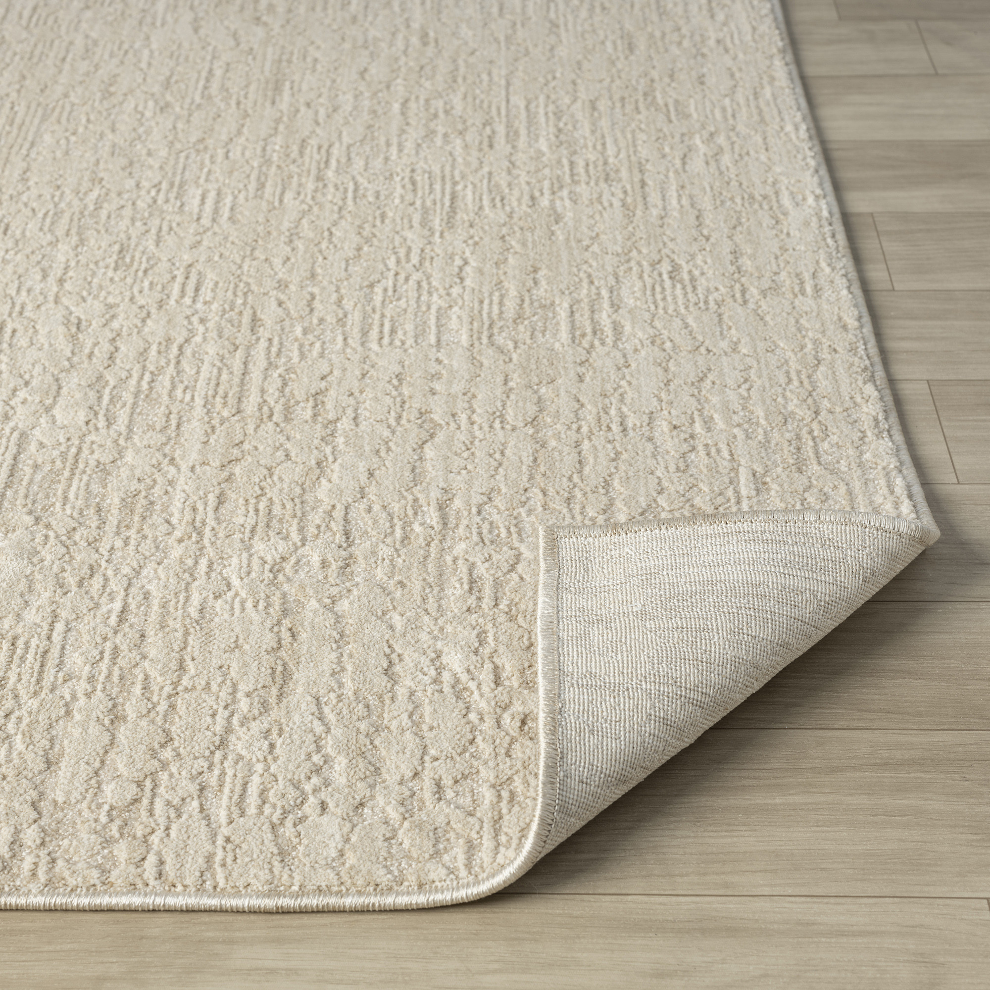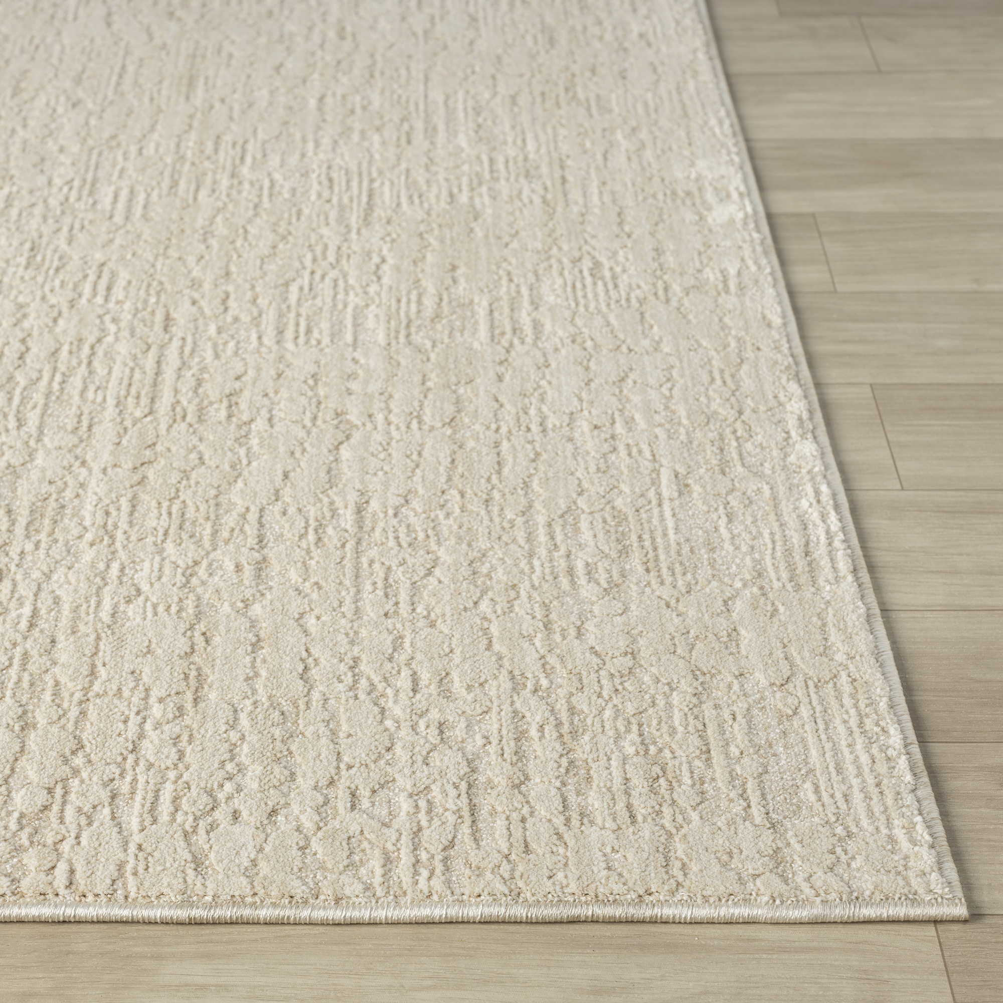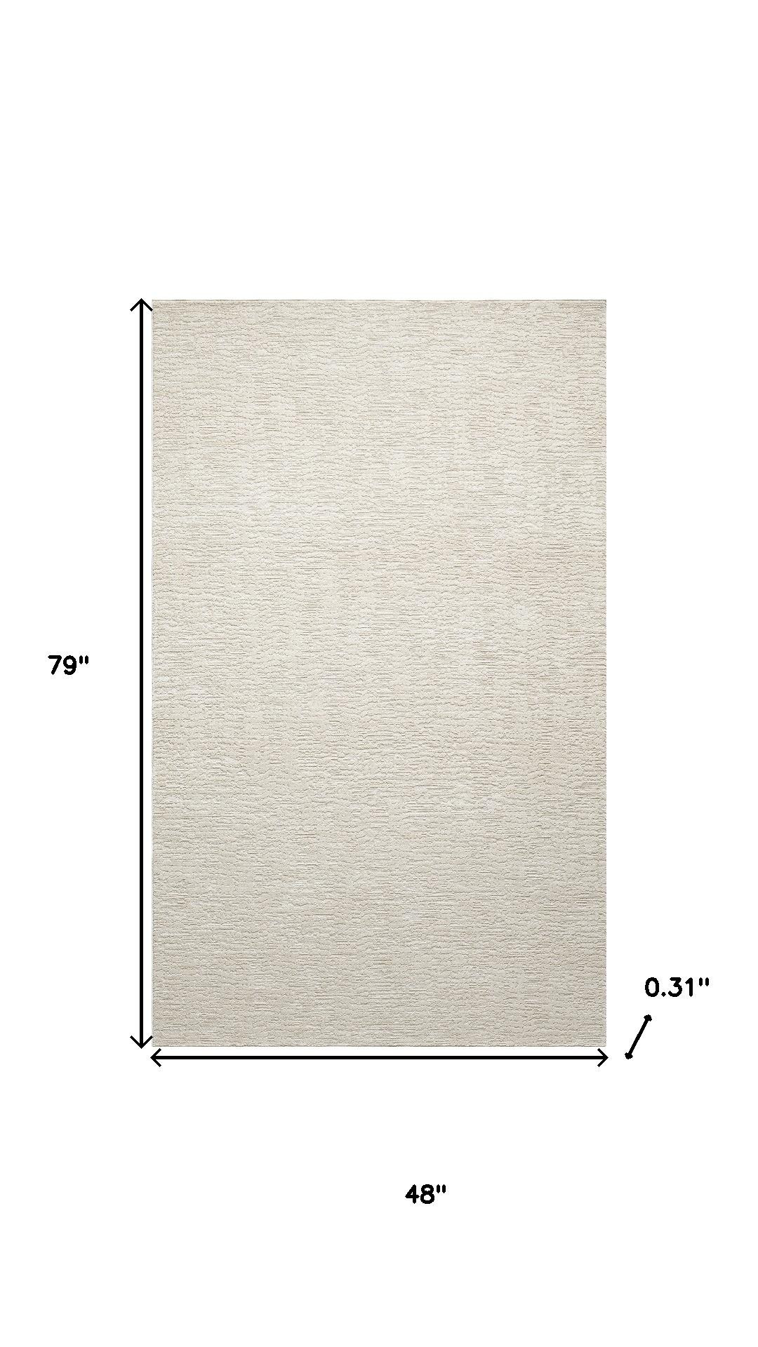Add some artistry to your room with this 4-foot x 5-foot beige and cream abstract area rug. Built to last, this rug crafted from polyester fibers is known for its durability and long lasting appeal. Rugs are a great way to showcase your style, hide imperfections, warm your home and reduce noise. This larger sized, transitional styled rug is ready to create a focal point or statement piece in your room. 79.00-inch h x 48.00-inch w x 0.31-inch d.