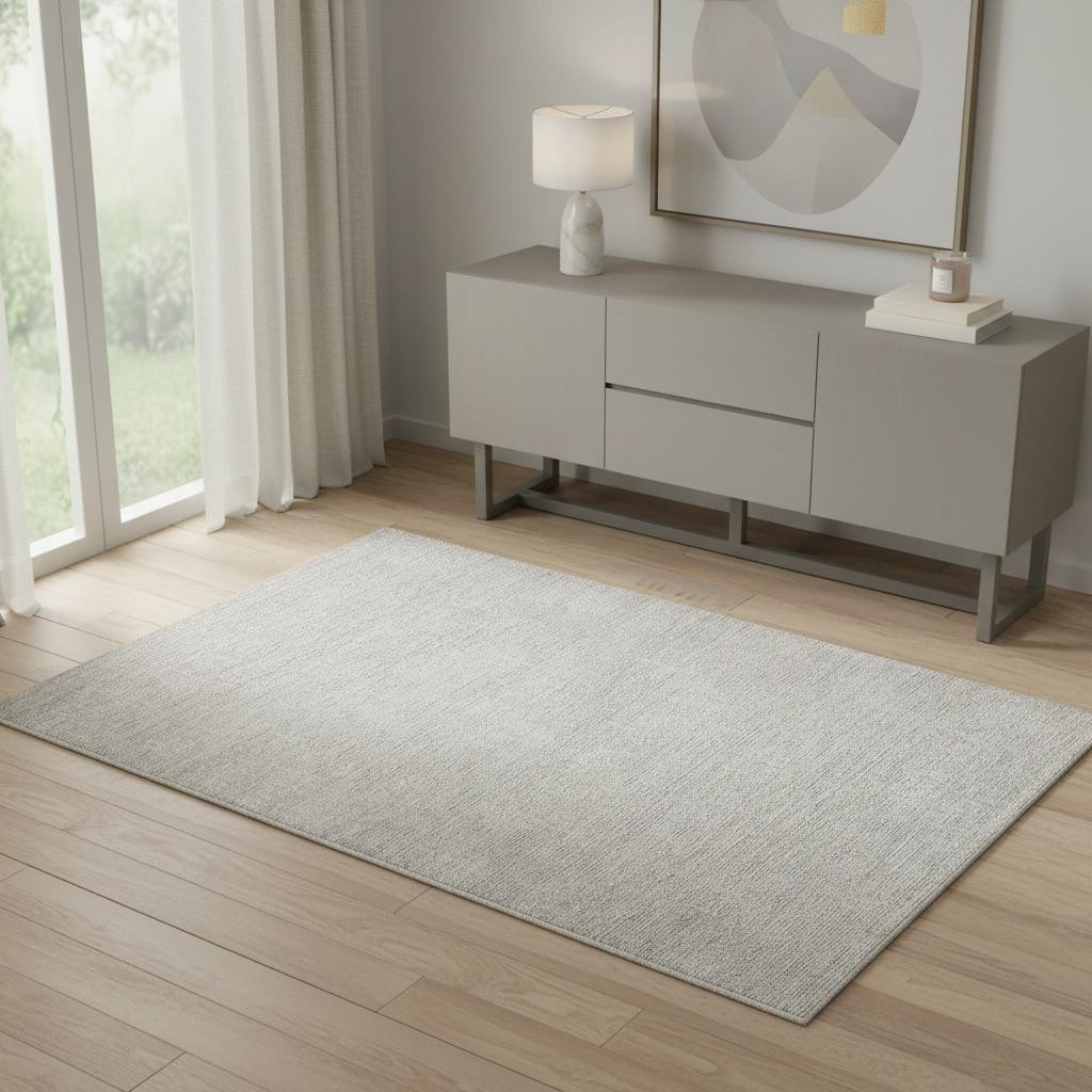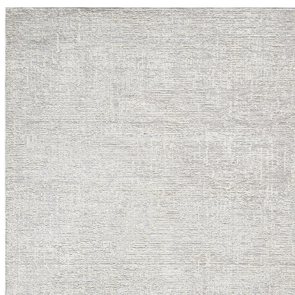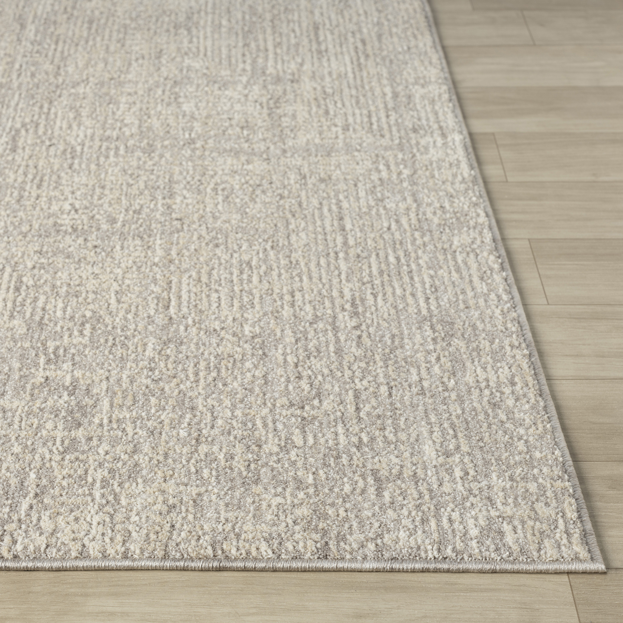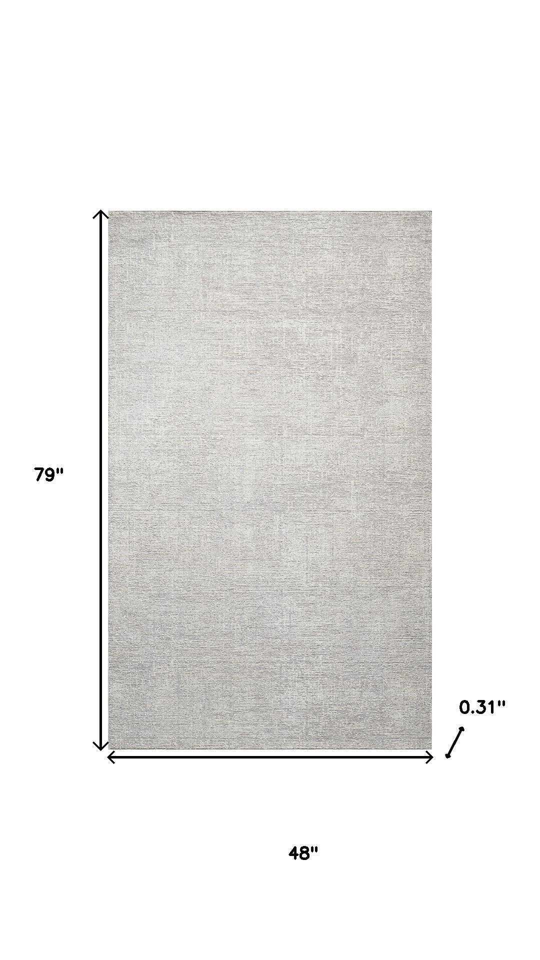 This 4-foot x 5-foot silver and cream abstract area rug, is a great way to add warmth to a room. Built to last, this rug crafted from polyester fibers is known for its durability and long lasting appeal. Rugs are a great way to showcase your style, hide imperfections, warm your home and reduce noise. This larger sized, transitional styled rug is ready to create a focal point or statement piece in your room. 79.00-inch h x 48.00-inch w x 0.31-inch d.