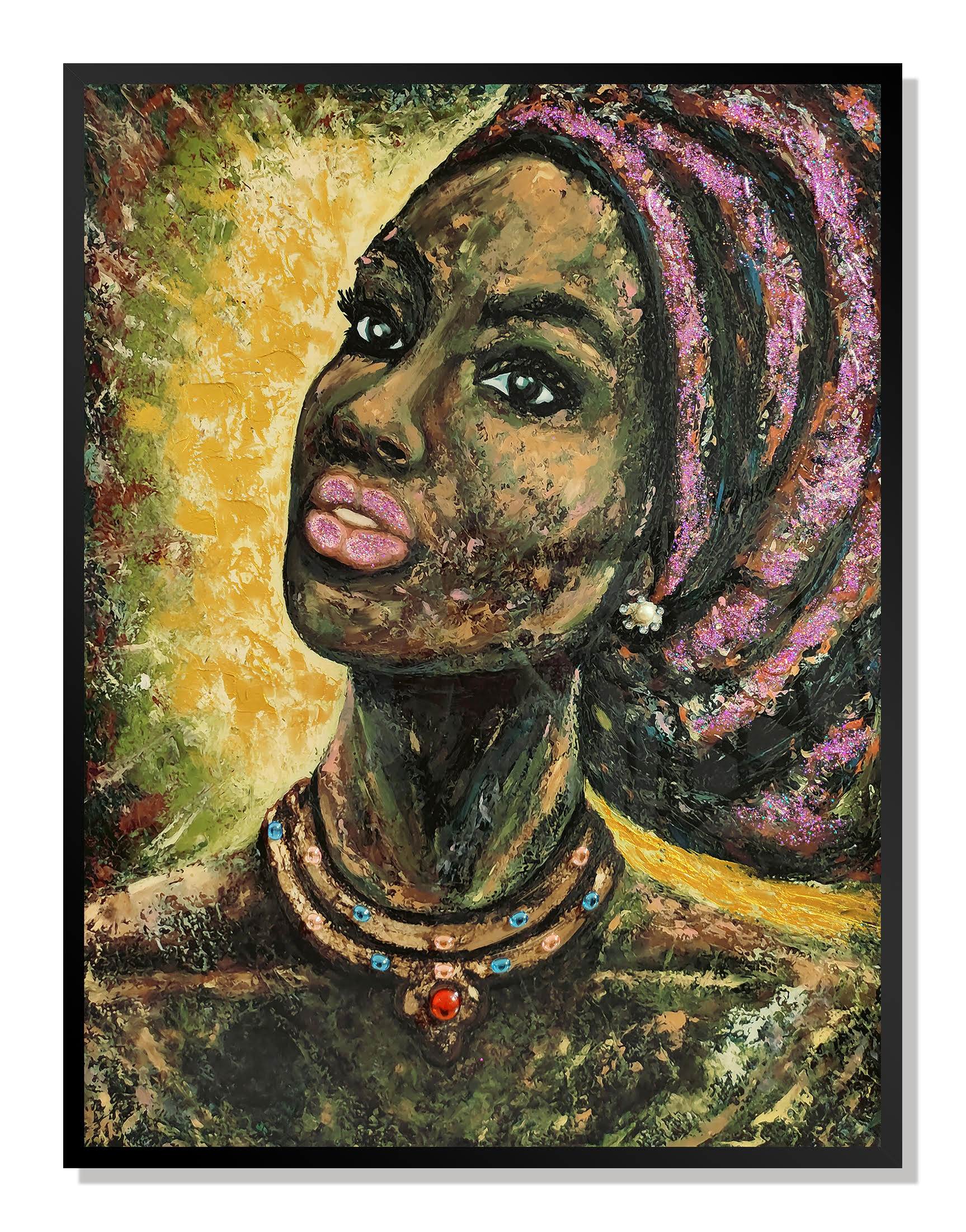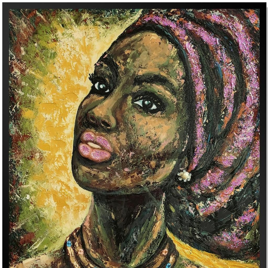 african portrait ii 30" X 39", african portrait ii, african portrait ii 30" X 39", figurative painting hand painted black, painted mixed media wall art |