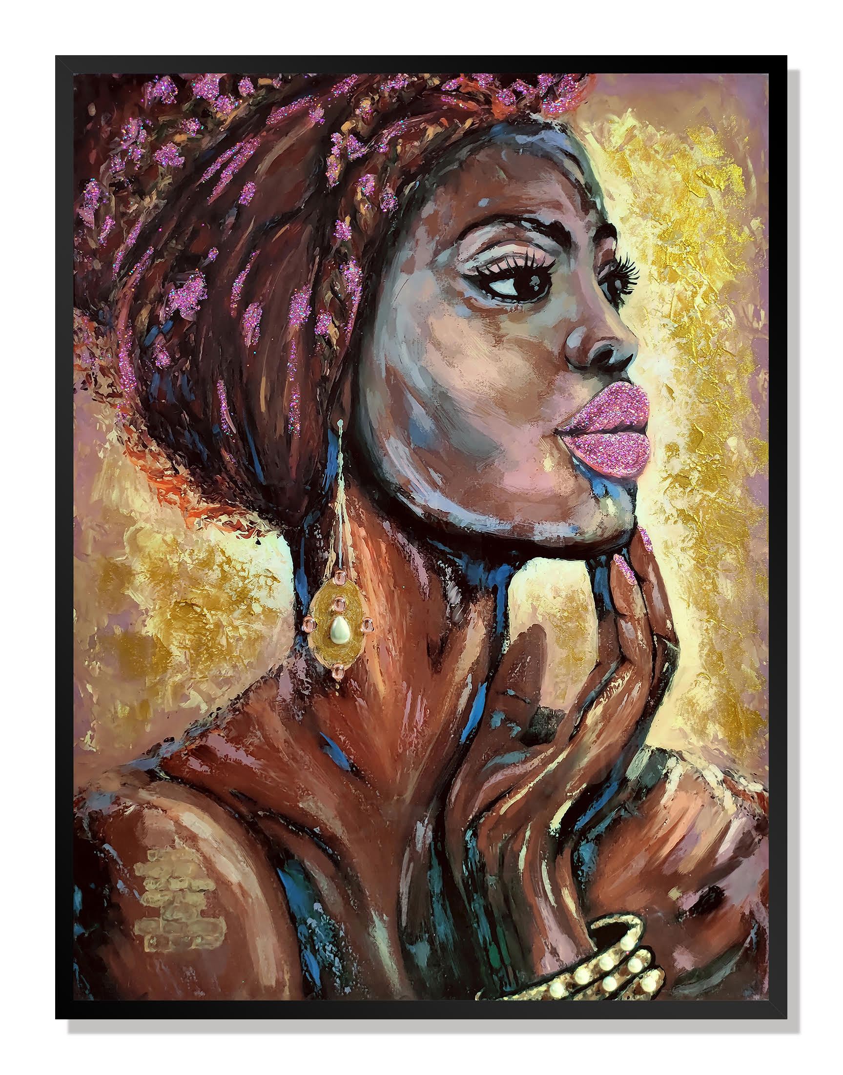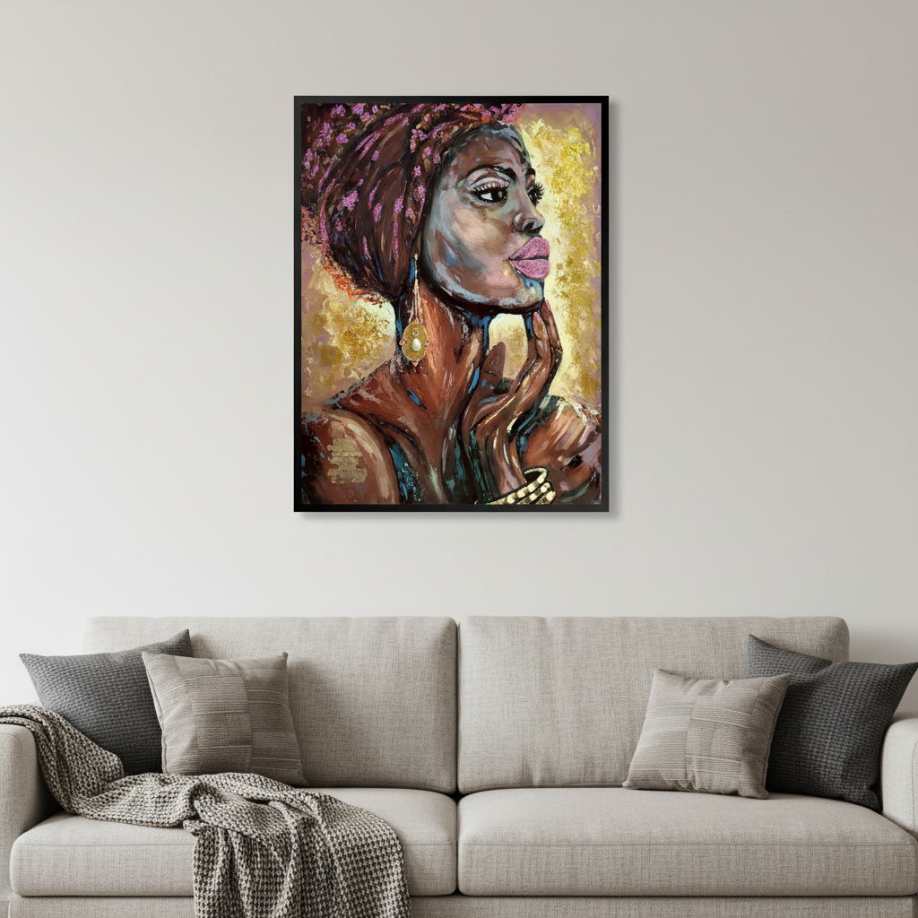 african woman hand painted black, woman hand painted black floater, african woman hand painted, woman hand painted black, black floater frame wall art |