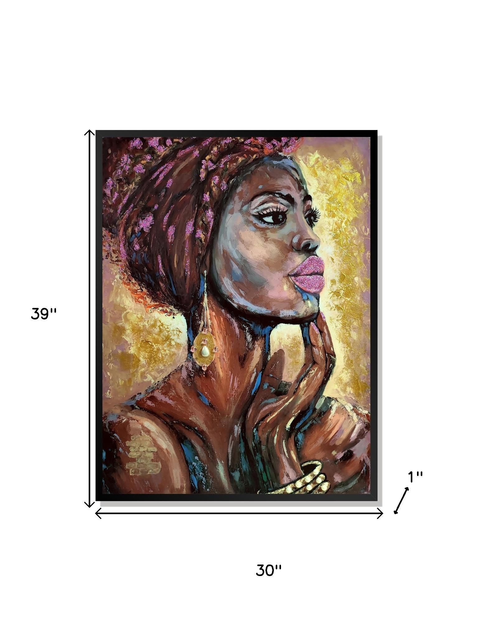 Bring some sizzle to your space with this eye-catching 39-inch x 30-inch African profile floater frame canvas wall art. Not a print, this fabulous work of art is truly hand-painted. Reproduced for you on canvas, this hanging decorative accent will be an expressive and fashionable way to dress your walls. Adding this hanging wall art to your space to make your room feel more finished and attractive. Instantly liven up your space with this art that brings color and dimension to your walls. 39.00-inch h x 30.00-inch w x 1.00-inch d.