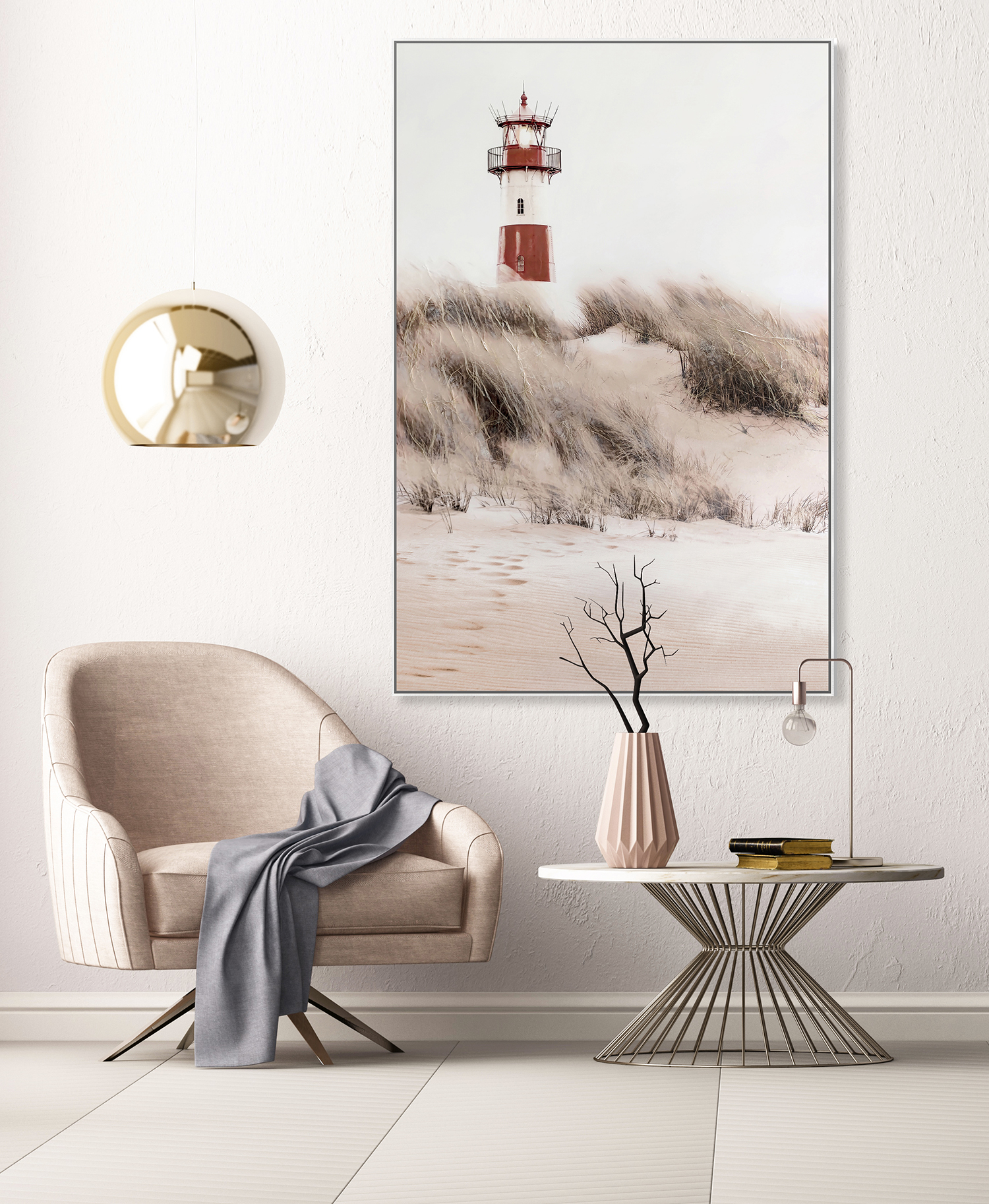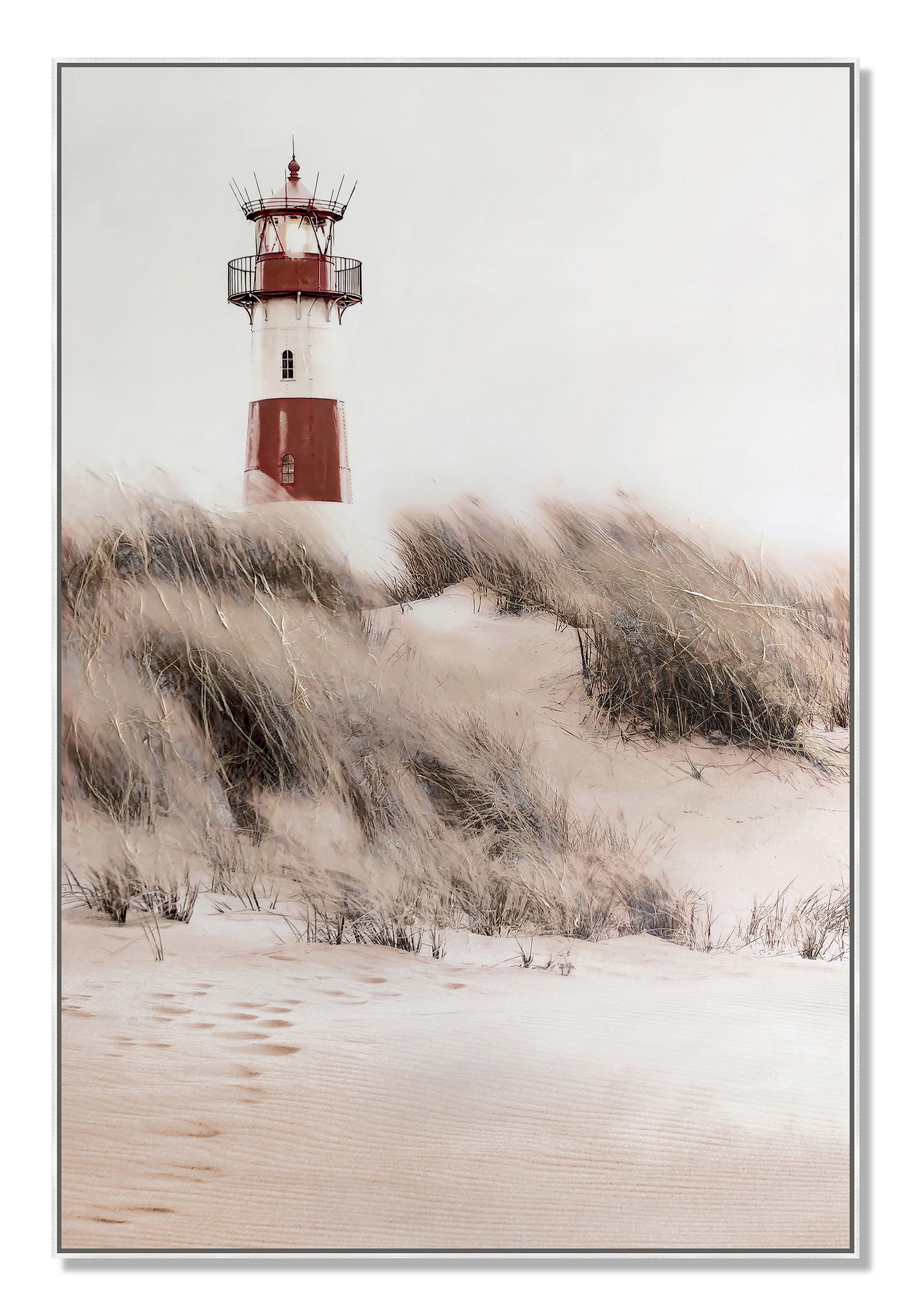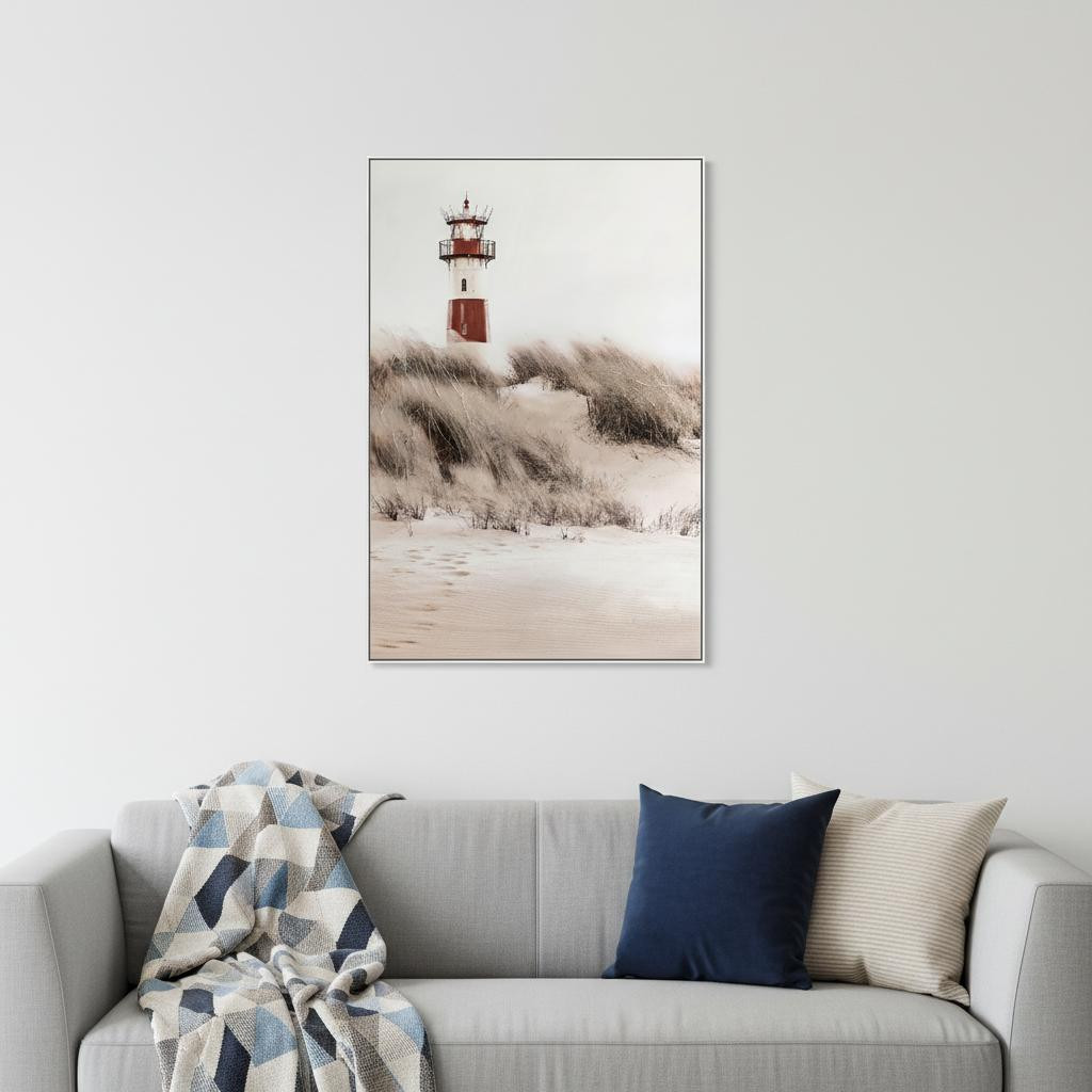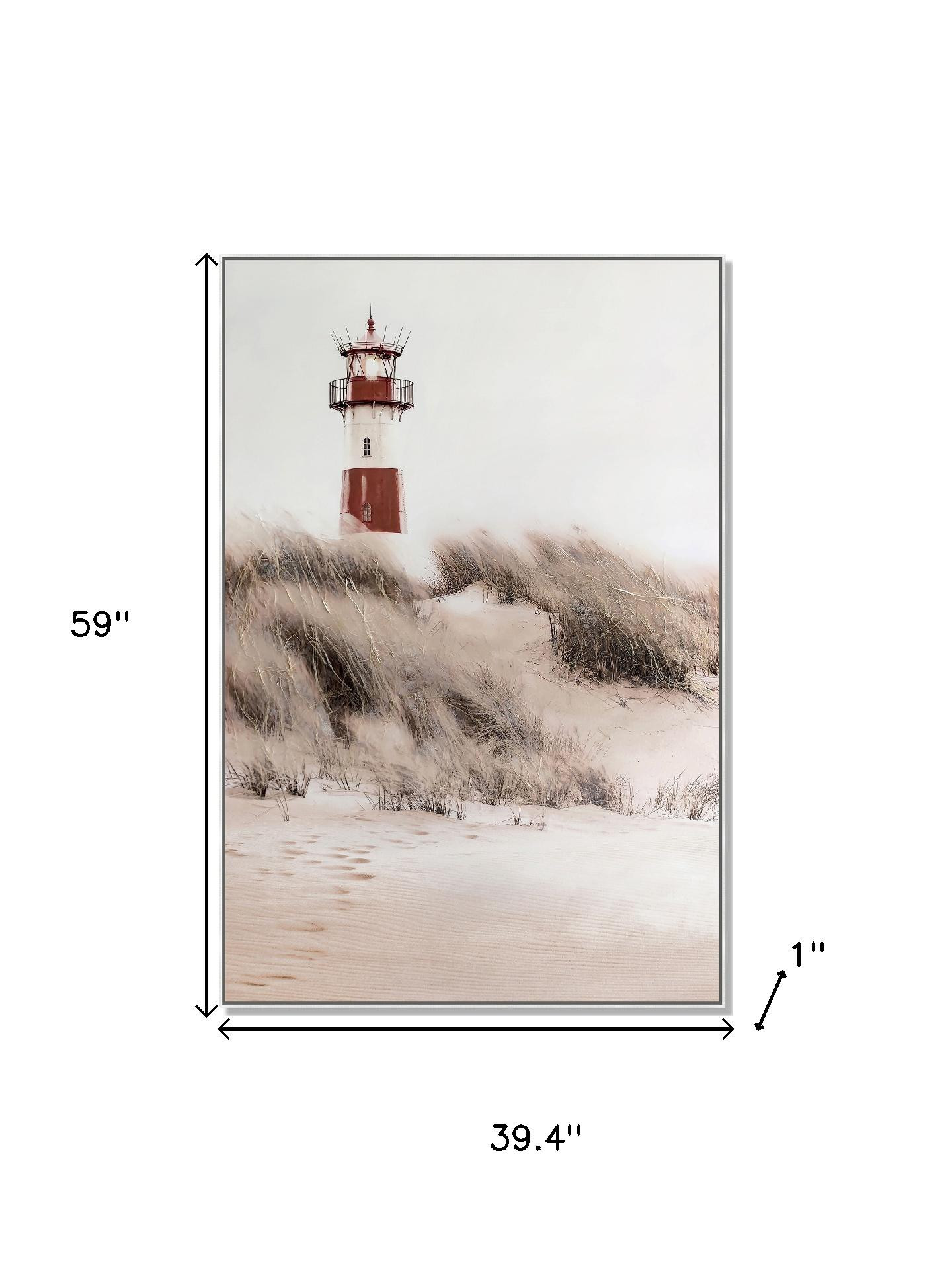 Lighthouse on Coastal Dunes ? 39" × 59" | Hand-Painted Coastal Wall Art | Serene Nautical Landscape |