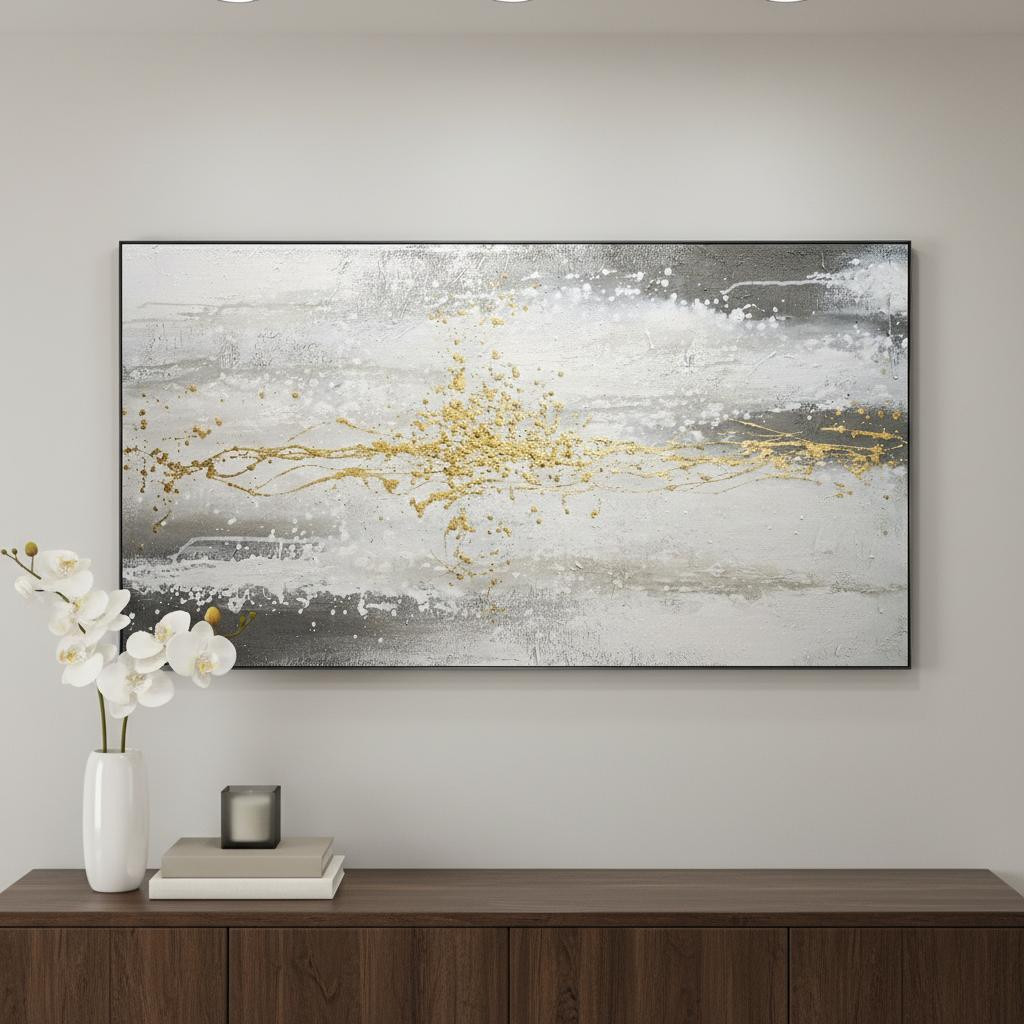 Metallic Abstract Horizon ? 59" × 32" | Hand-Painted Textured Wall Art with Gold Accents | Modern Oversized Statement Piece |