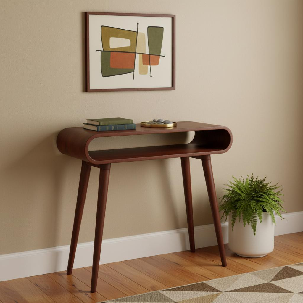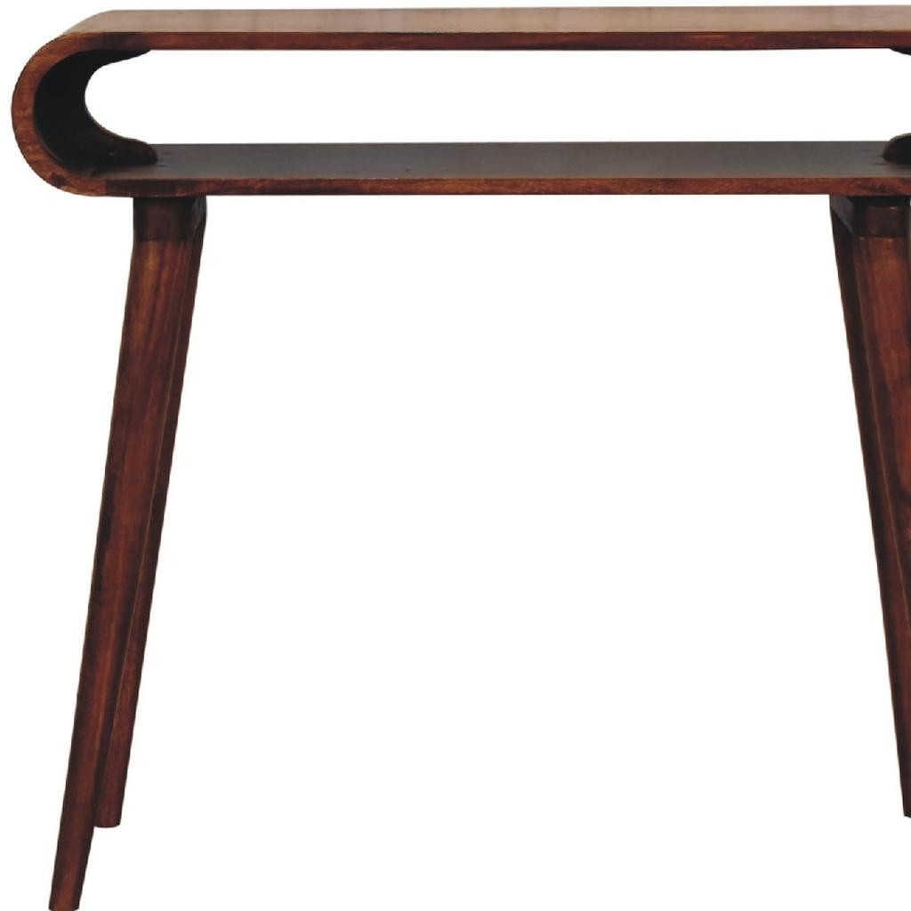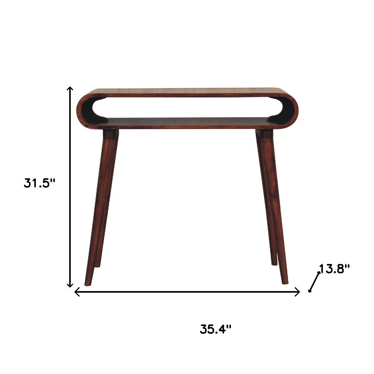 Make a statement in your entryway with our stunning 35-inch chestnut solid wood console table with shelf and. This versatile table is a classic rectangular shape, which will easily fit into most any space in your home. If you are searching for the highest quality chestnut wood furniture, hardwood can not be beaten as an unmatchable combination of beauty, craftsmanship, and durability. The four leg base is made of solid wood, the most strong and durable option available. Ideal for living rooms, bedrooms, home offices, and lounge areas, this console table is not only good looking but multi-functional and practical addition to your space. 31.50-inch h x 35.40-inch w x 13.80-inch d.