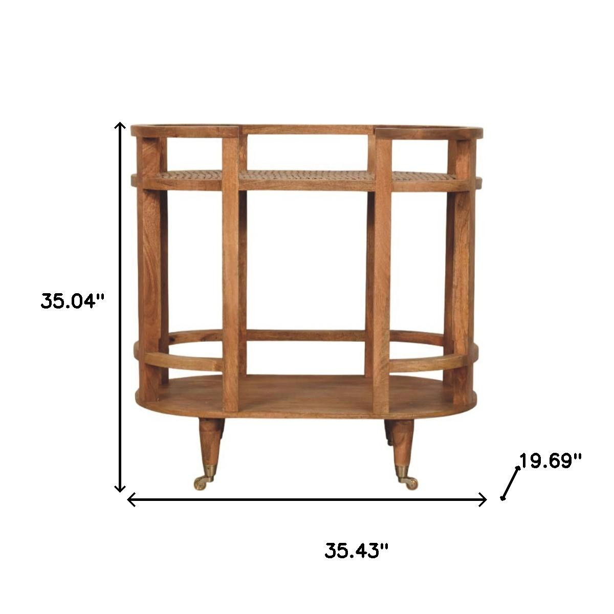 Transform your home with our elegant and versatile 35-inch brown solid wood console table with shelf. Don't miss out on the perfect finishing touch for your home. This rectangular table has clean lines and plenty of surface area. This unit has a brown genuuine hardwood tabletop. The four leg base is made of solid wood, the most strong and durable option available. Versatile in use, console tables can be used for a variety of purposes in a variety of rooms and settings. 35.04-inch h x 35.43-inch w x 19.69-inch d.