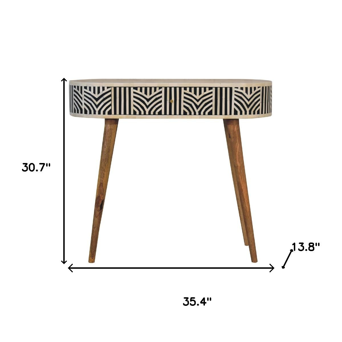 Our 35-inch brown solid wood solid console table and with two drawers a great addition to any room, serving as a stylish and decorative element. This versatile table is a classic rectangular shape, which will easily fit into most any space in your home. The brown hardwood table surface makes this unit stand out with its high quality material and construction. The solid base is made of solid wood, the most strong and durable option available. Versatile in use, console tables can be used for a variety of purposes in a variety of rooms and settings. 30.70-inch h x 35.40-inch w x 13.80-inch d.