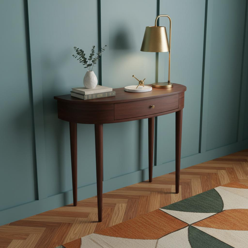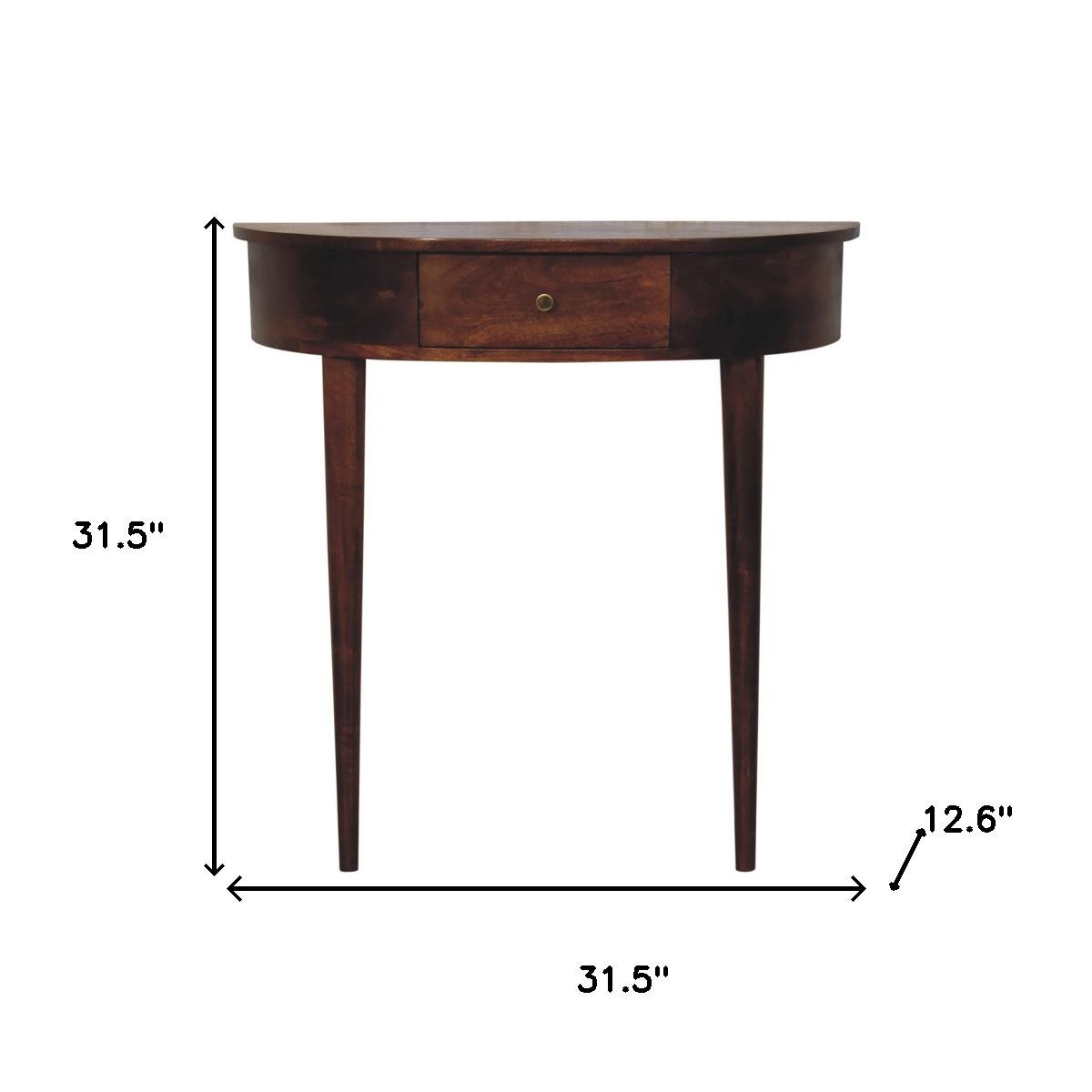 This 32-inch brown solid wood solid console table with shelf and with two drawers can provide a variety of practical functions such as providing extra storage space, serving as a display area for decorative items or acting as a catch-all for keys, mail, and other small items. This rectangular table has clean lines and plenty of surface area. The brown hardwood table surface makes this unit stand out with its high quality material and construction. The solid of this unit is crafted with solid wood, leaving you with a console table that is of the finest quality and materials. Versatile in use, console tables can be used for a variety of purposes in a variety of rooms and settings. 31.50-inch h x 31.50-inch w x 12.60-inch d.