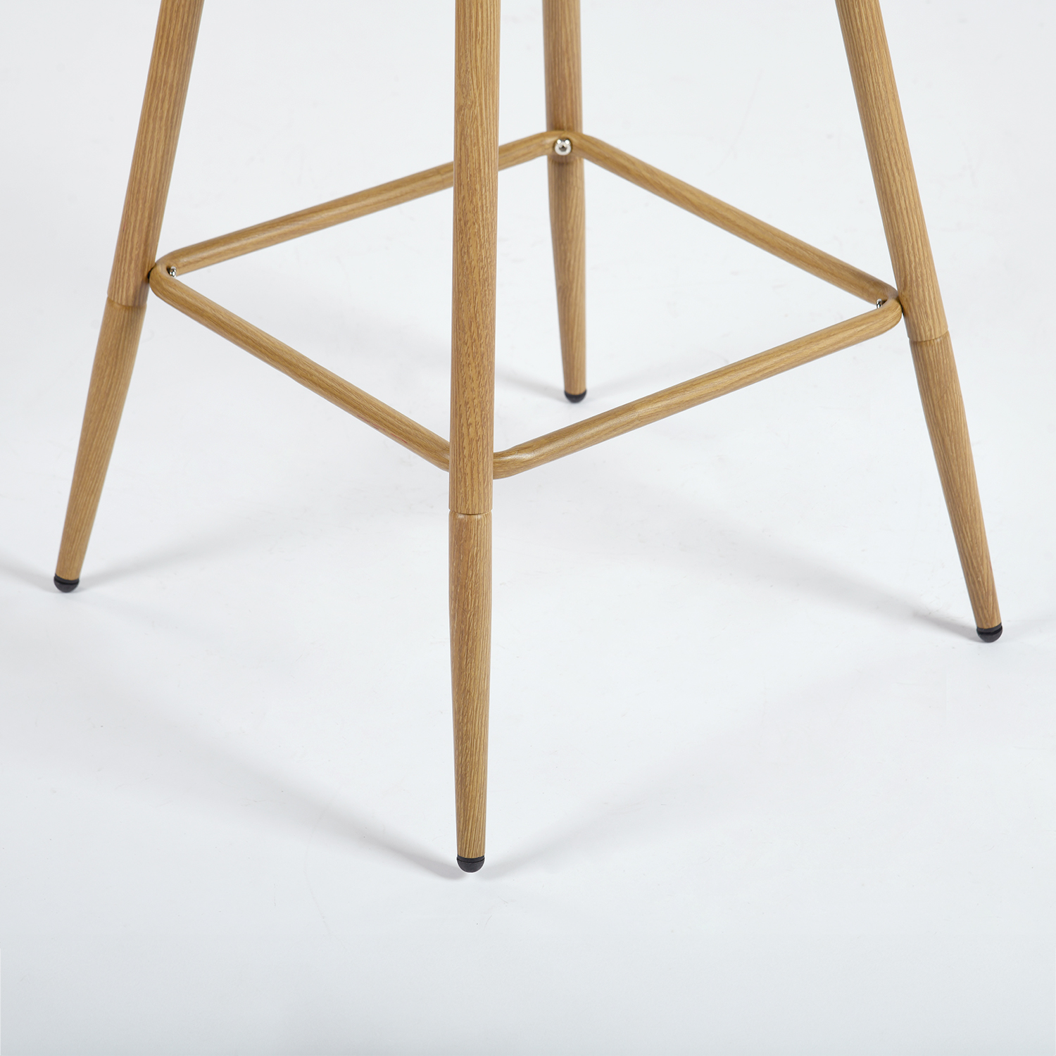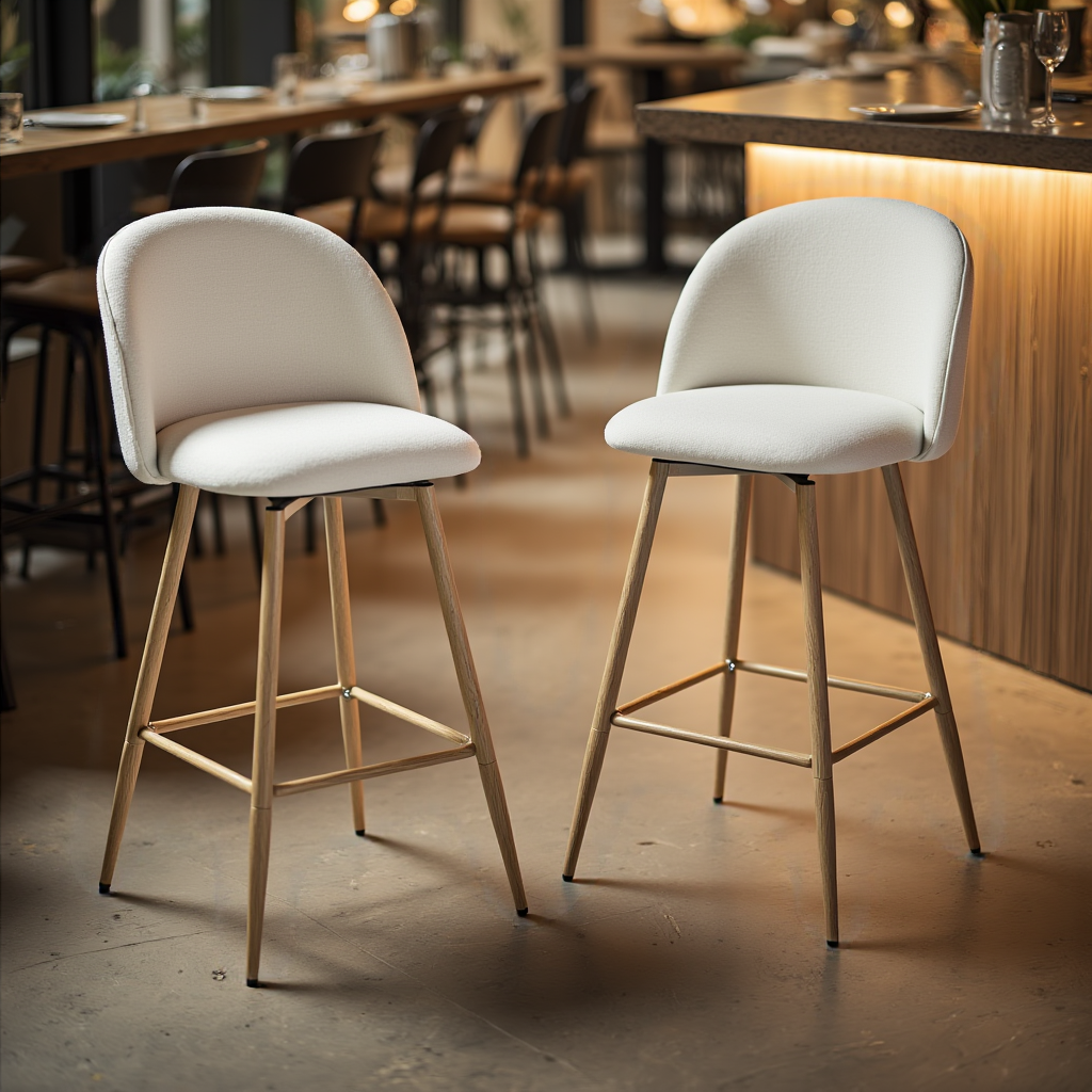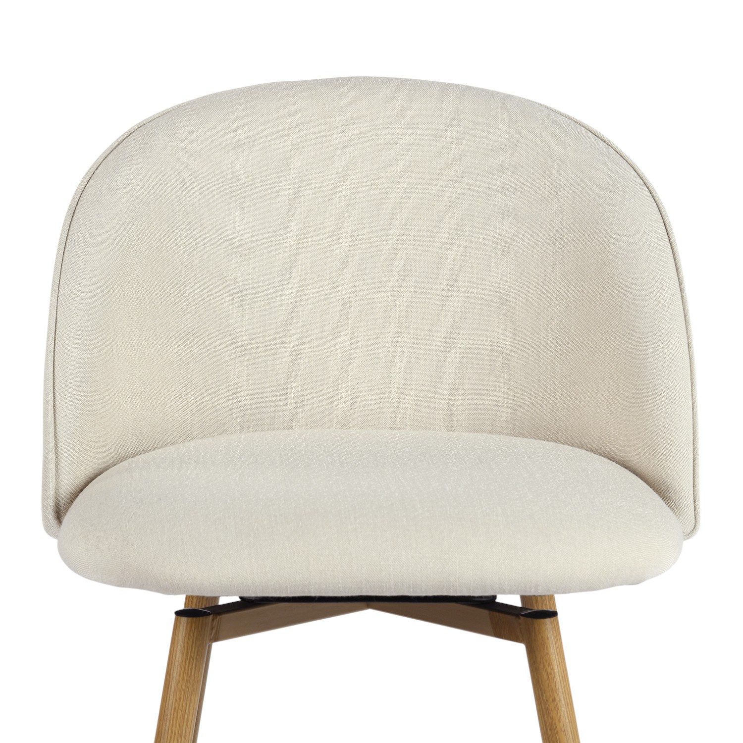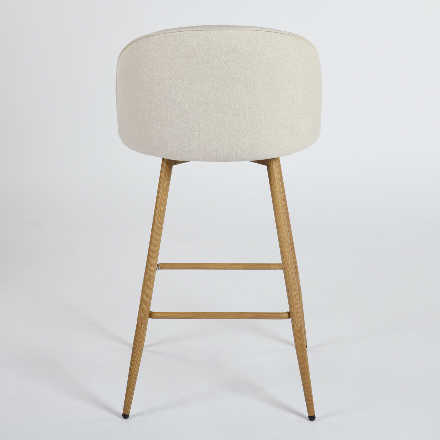 Comfortable enough to sit in for awhile, this set of two 27-inch beige and oak fabric and metal counter height swivel bar chairs will transcend the look of your room. Quality construction from metal with an oak brown faux wood finish combines with soft and durable polyester fabric to give these stools a fresh, neutral, and updated look. A slightly curved back and bucket shaped seat design makes these versatile bar chairs both comfortable and fashionable. 36.20-inch h x 16.50-inch w x 15.20-inch d.