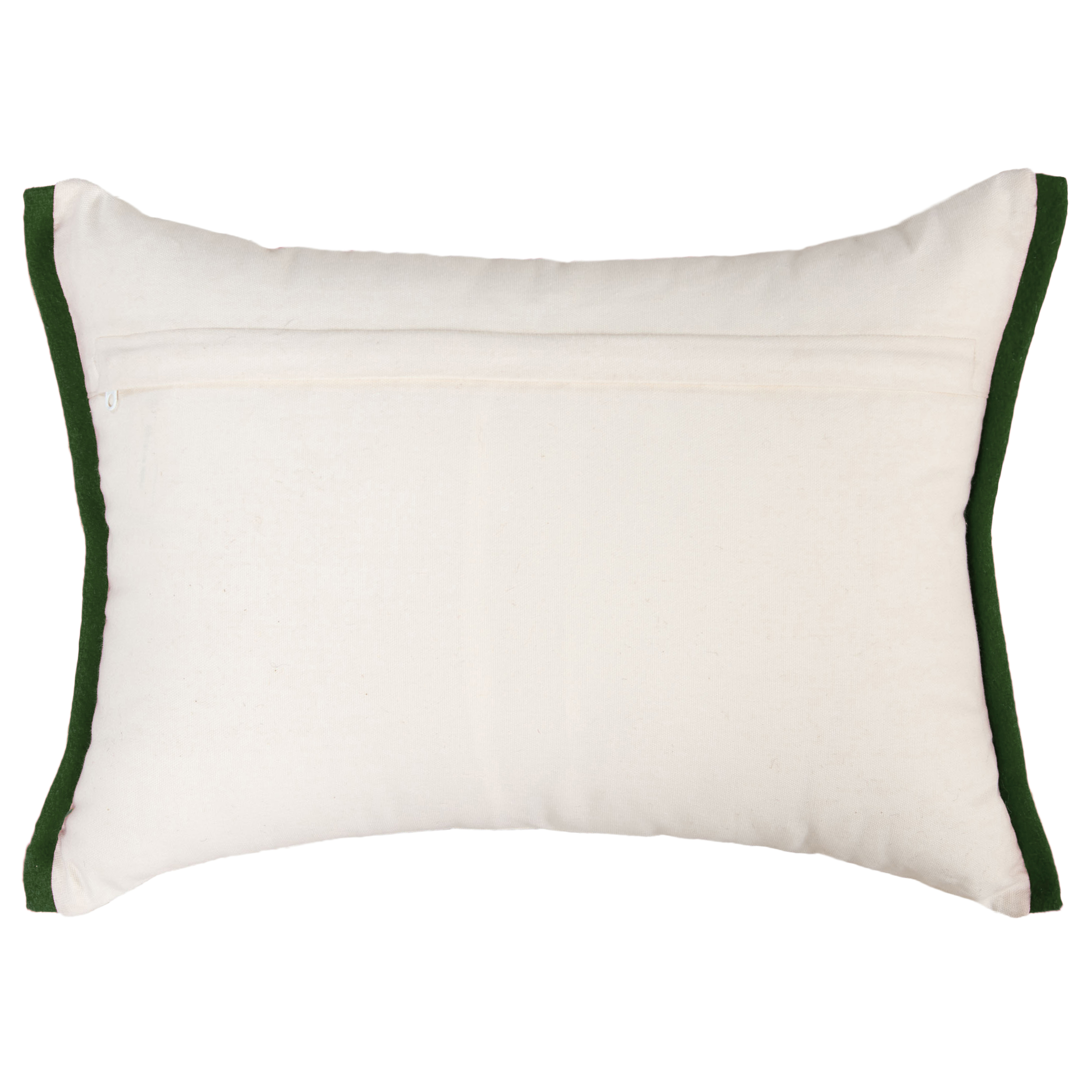 This 14-inch x 20-inch green and ivory cotton Christmas gnomes throw pillow with embroidery is a great way to celebrate and decorate for the holidays. This fun pillow represents quality construction, expertly made from durable cotton that is not only long lasting but soft to the touch as well. Featuring a trio of textural gnomes with embroidery and embellishments that will bring a smile to all who visit. Super soft and built to hold its shape, this polyfill-filled pillow is a great option. A great way to add some festive and unique spirt to your space for the season. 14.00-inch h x 20.00-inch w x 6.50-inch d.