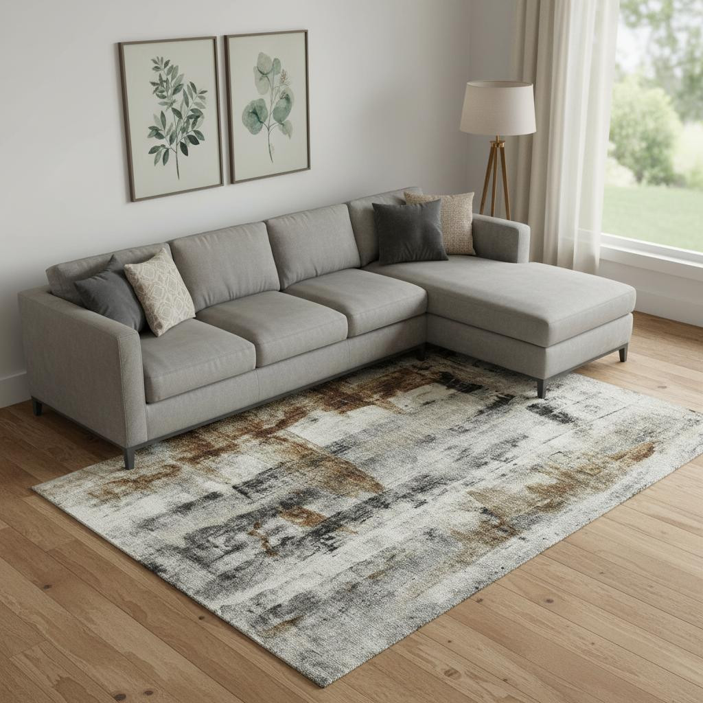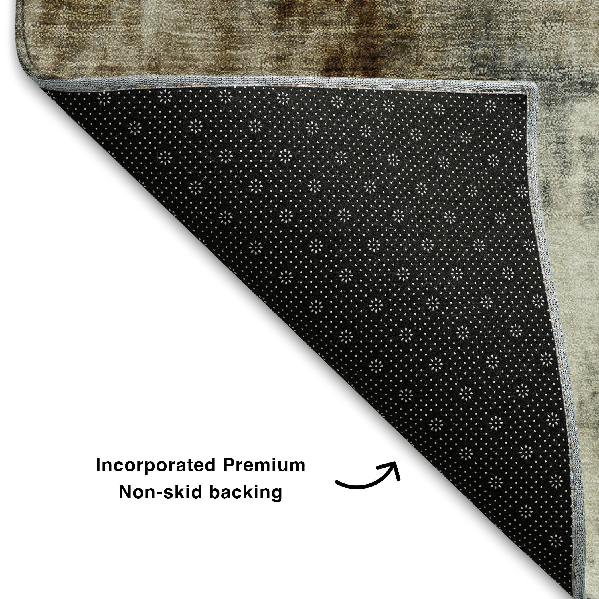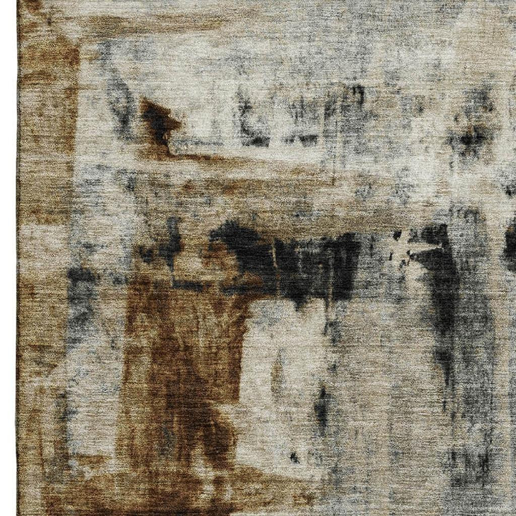 Set an inviting tone in your space with this 9-foot x 12-foot taupe charcoal and brown abstract washable area rug with uv protection. Ideal for spaces with kids and pets, this rug is stain resistant to help repel dirt and spilled liquids. Built to last, this rug crafted from polyester fibers is known for its durability and long lasting appeal. Rugs are a great way to showcase your style, hide imperfections, warm your home and reduce noise. This larger sized, transitional styled rug is ready to create a focal point or statement piece in your room. 108.00-inch h x 144.00-inch w x 0.39-inch d.