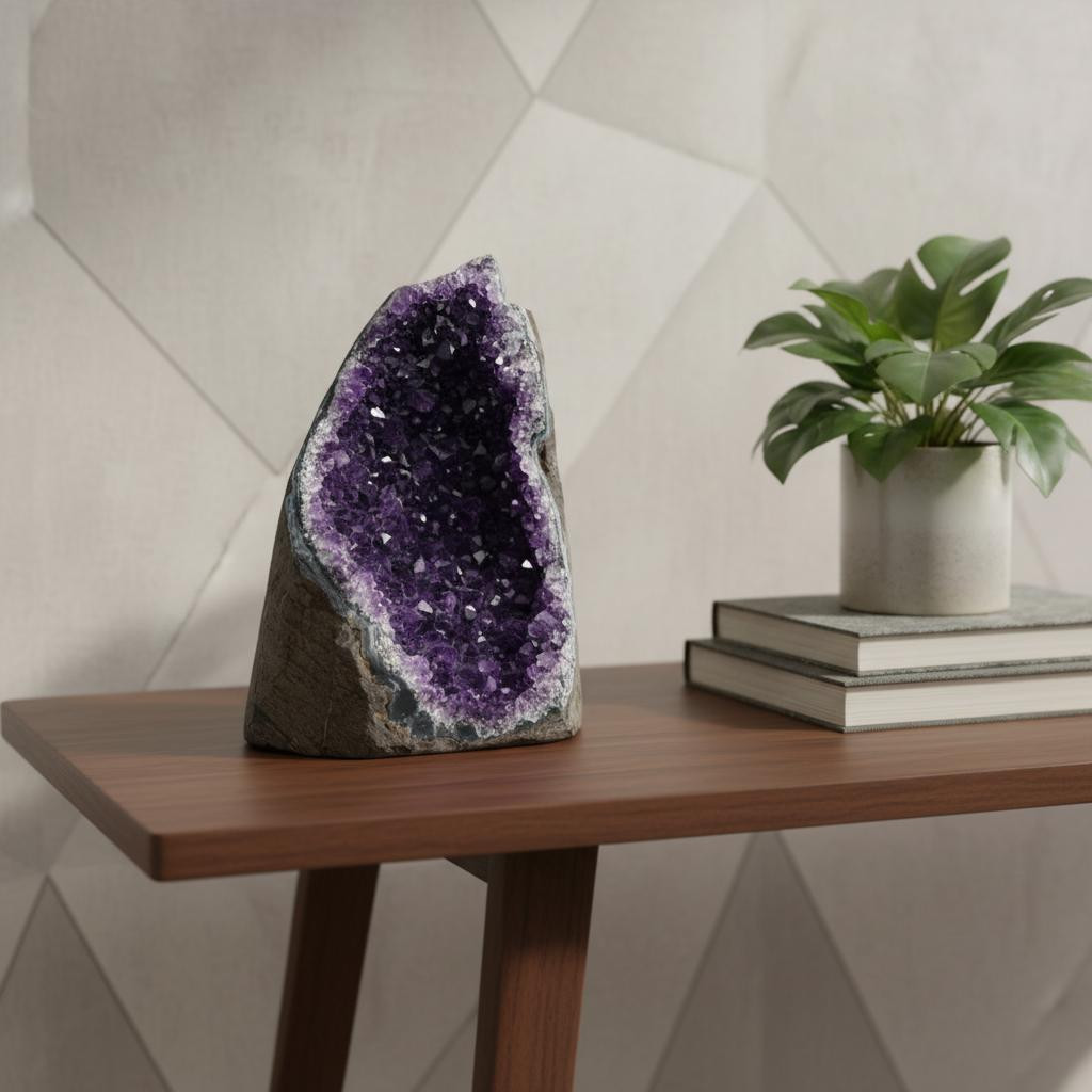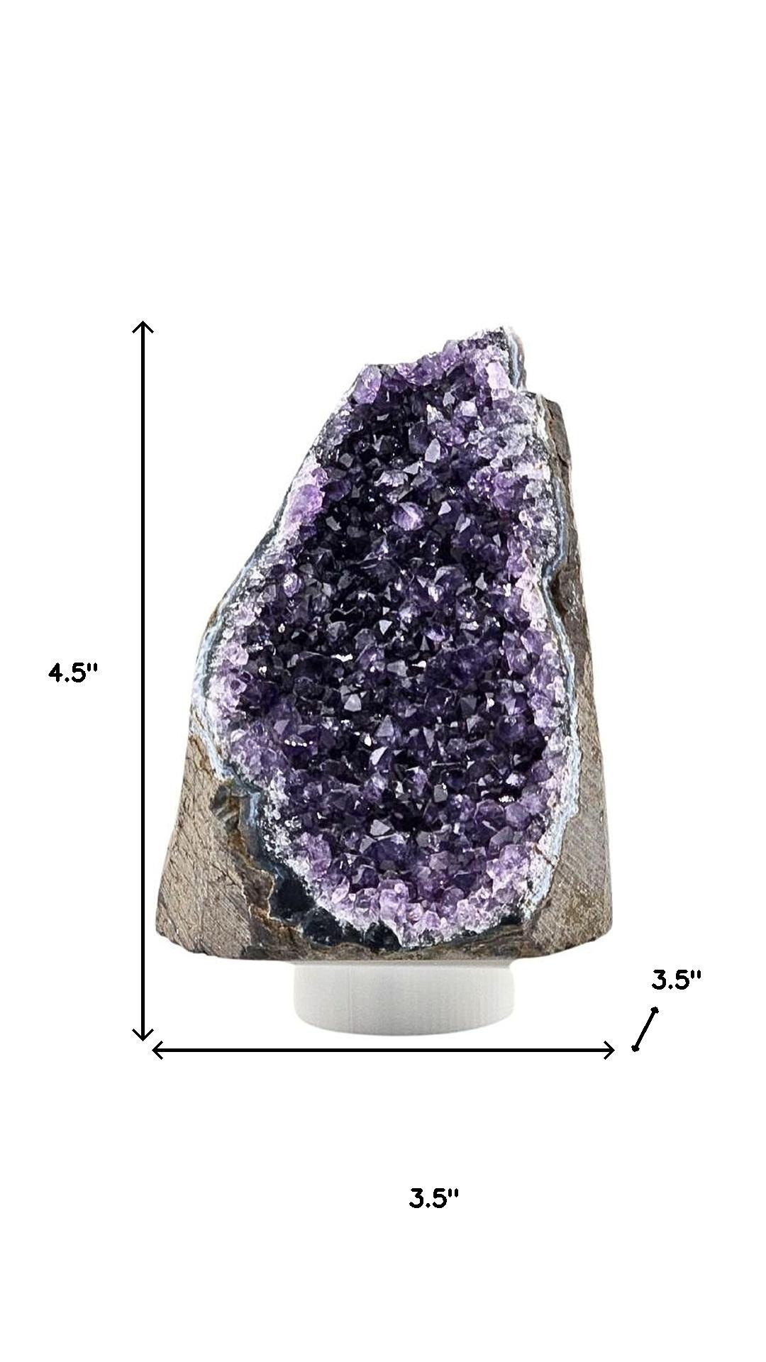 The 5-inch purple glass crystal is the perfect decorative accessory for your home. This figurine makes a great tabletop accent for your coffee table, counter, bookshelf, mantle, or even dining table. A perfect decorative addition for anyone who loves a stylish look and feel. A perfect decorative addition for anyone who loves a stylish look and feel. 4.50-inch h x 3.50-inch w x 3.50-inch d.