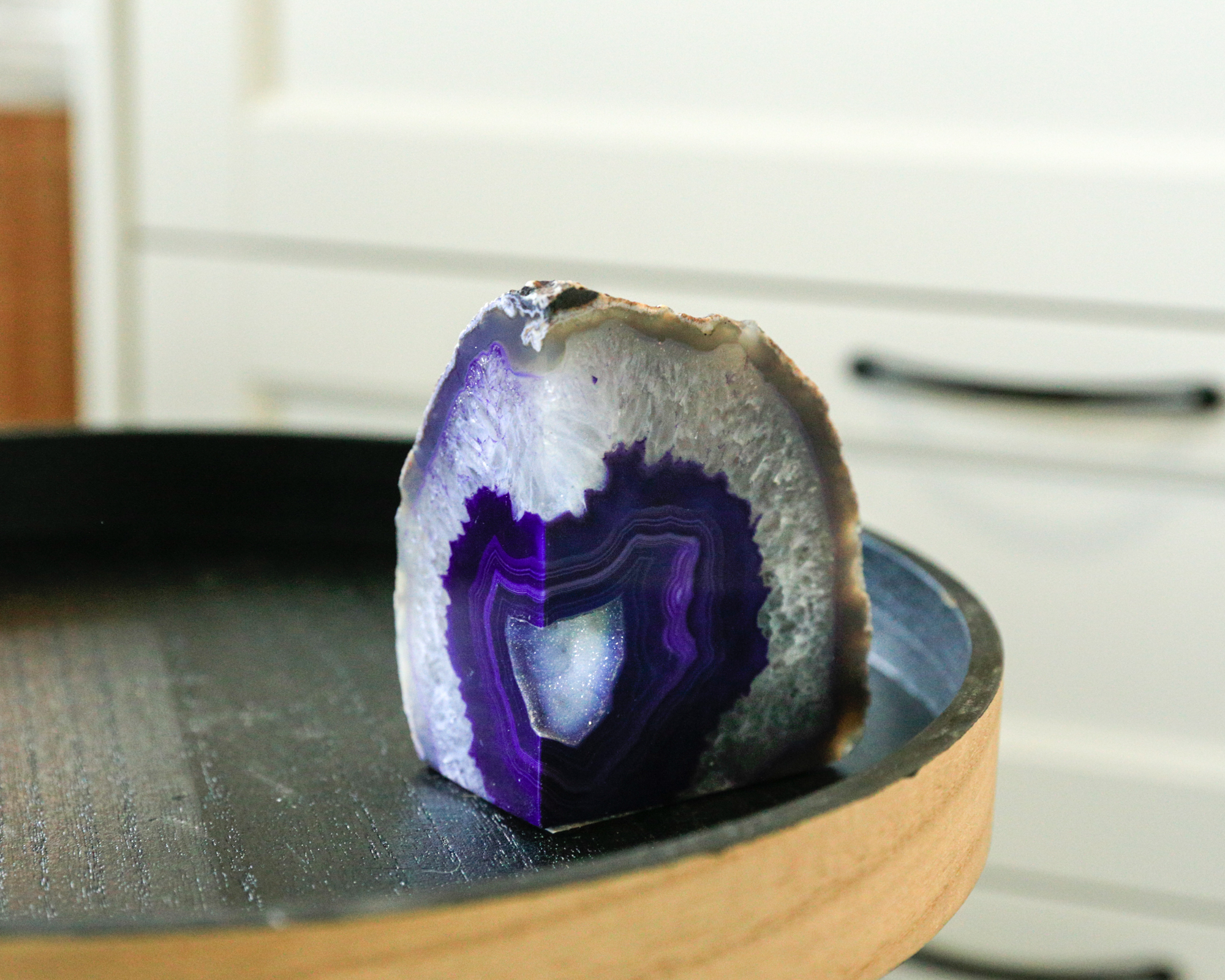 Add an air of fashion to your room and rejuvenate the space with this 7-inch purple glass crystal. This figurine makes a great tabletop accent for your coffee table, counter, bookshelf, mantle, or even dining table. A perfect decorative addition for anyone who loves a stylish look and feel. A perfect decorative addition for anyone who loves a stylish look and feel. 7.00-inch h x 4.00-inch w x 5.00-inch d.