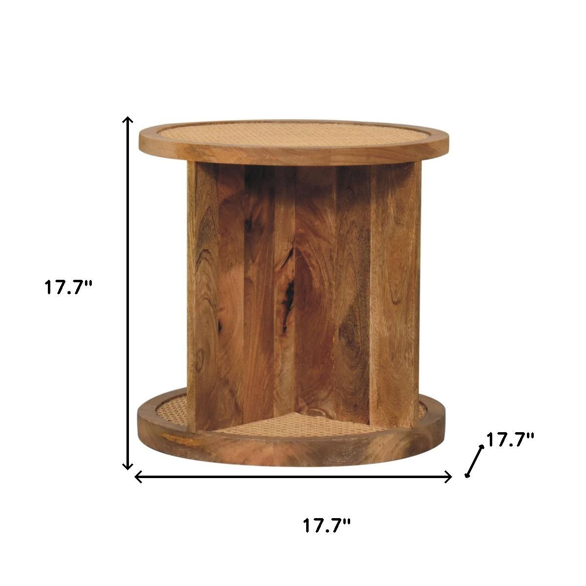 Distinctive in style the 18-inch brown solid wood and wood end table radiates a versatile charm. This table features quality construction from solid wood and an updated monotone color scheme with brown as the main color on both the top and the base. A great accent on either side of the sofa or bed, this adorable end or side table is just what you need. This versatile table is a great accent for most any room. 17.70-inch h x 17.70-inch w x 17.70-inch d.