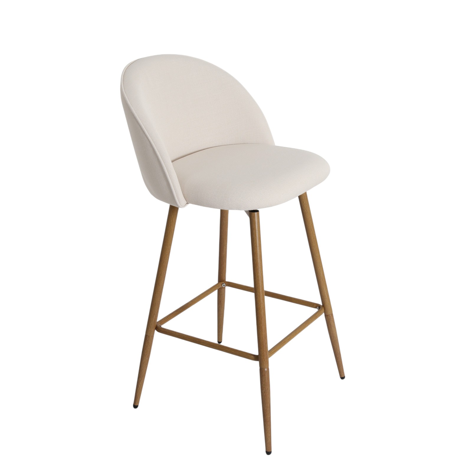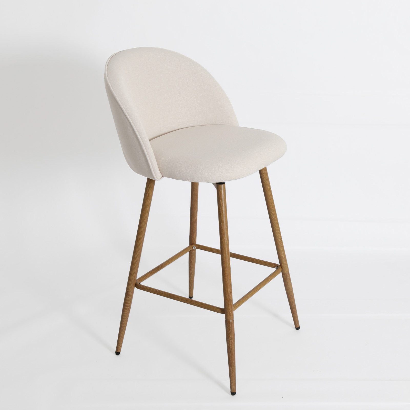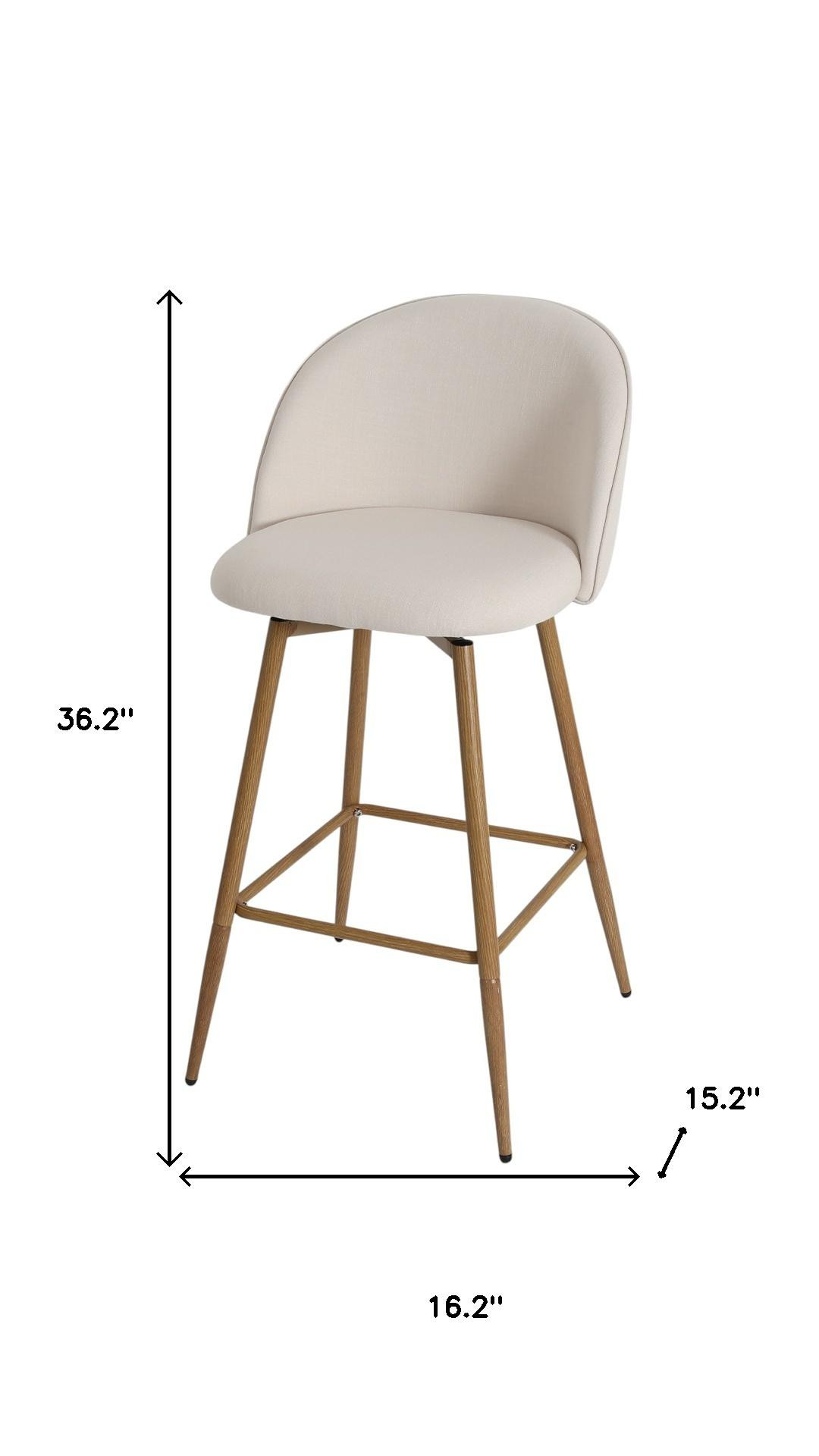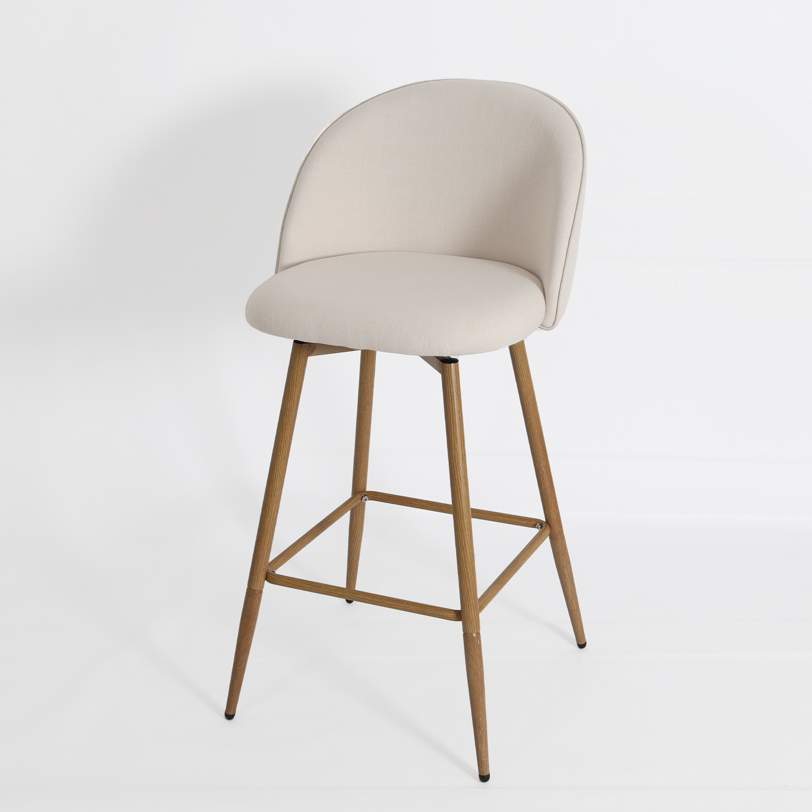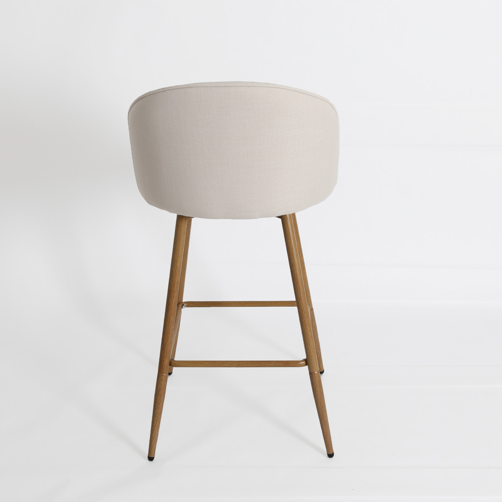 Comfort and design come together nicely in this 27-inch beige and oak fabric and metal low back counter height swivel bar chair. Quality construction from metal with an oak brown faux wood finish combines with soft and durable polyester fabric to give this stool a fresh, neutral, and updated look. A slightly curved back and bucket shaped seat design makes this versatile bar chair both comfortable and fashionable. 36.20-inch h x 16.50-inch w x 15.20-inch d.