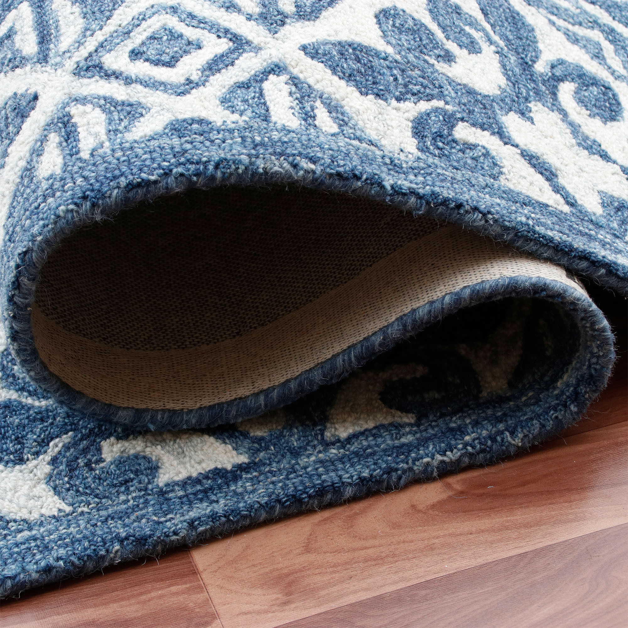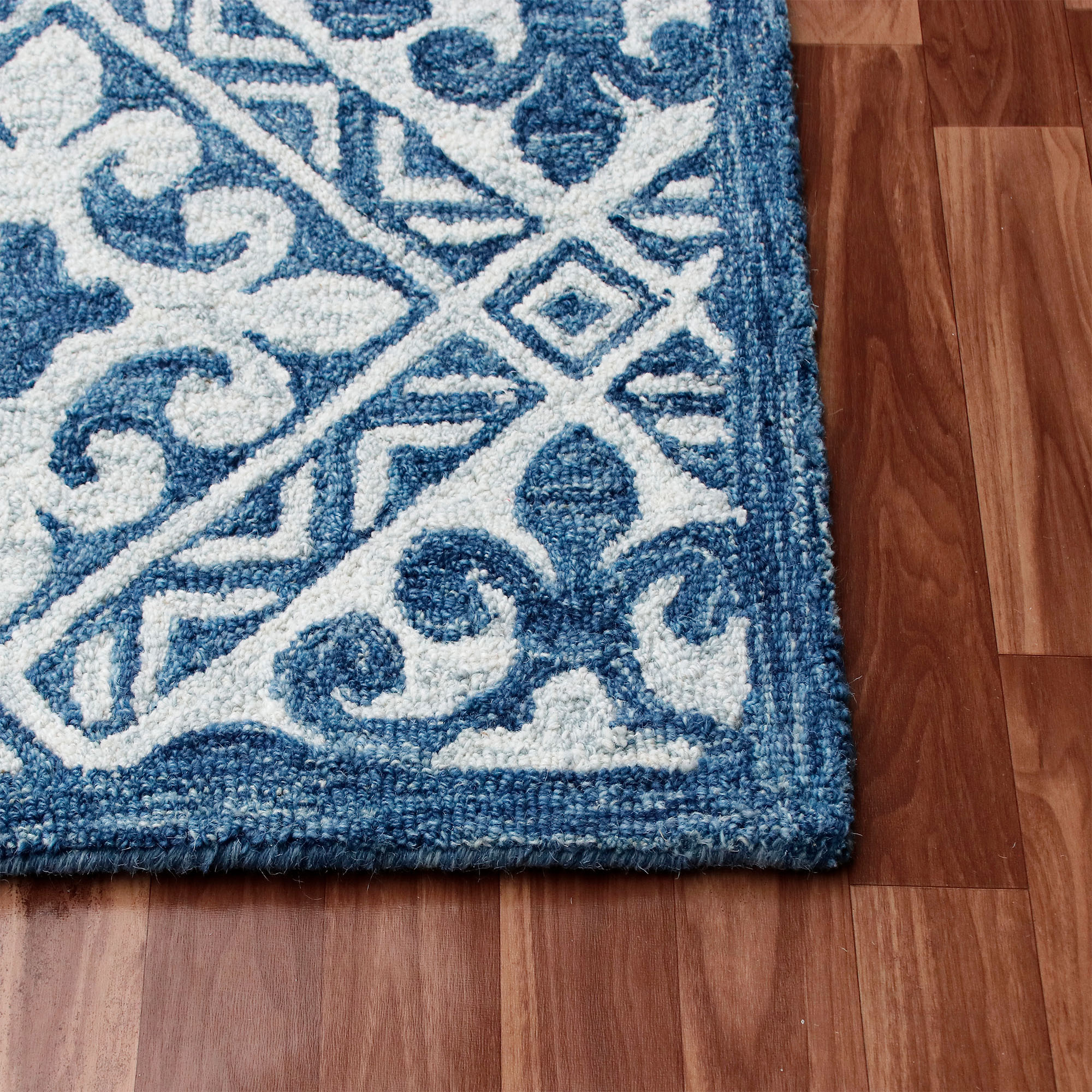 Add great coloration and comfortable texture to your space with this 3-foot x 5-foot blue and white wool floral hand tufted area rug. Crafted by skilled artisans, this hand tufted rug is genuine and unique. No two will be exactly alike. Rugs are a great way to showcase your style, hide imperfections, warm your home and reduce noise. This larger sized, bohemian styled rug is ready to create a focal point or statement piece in your room. 60.00-inch h x 36.00-inch w x 0.19-inch d.