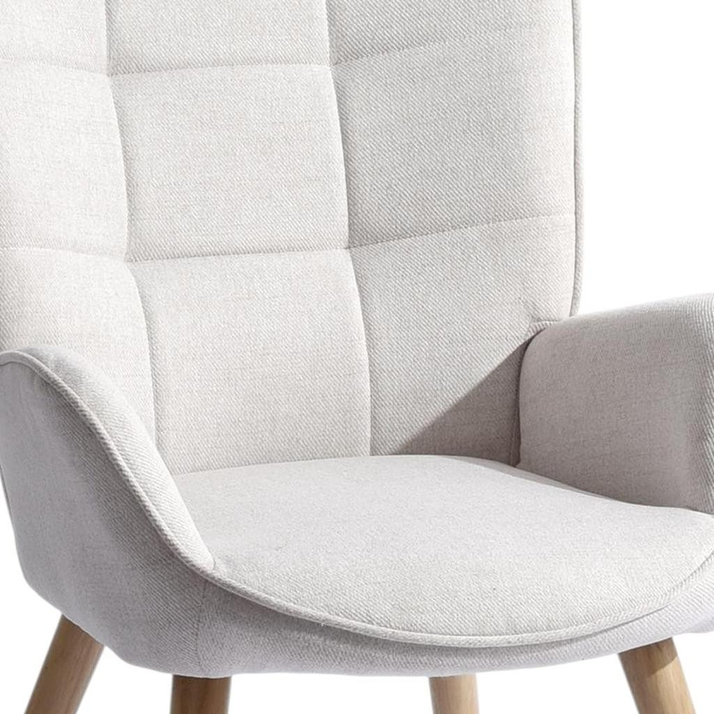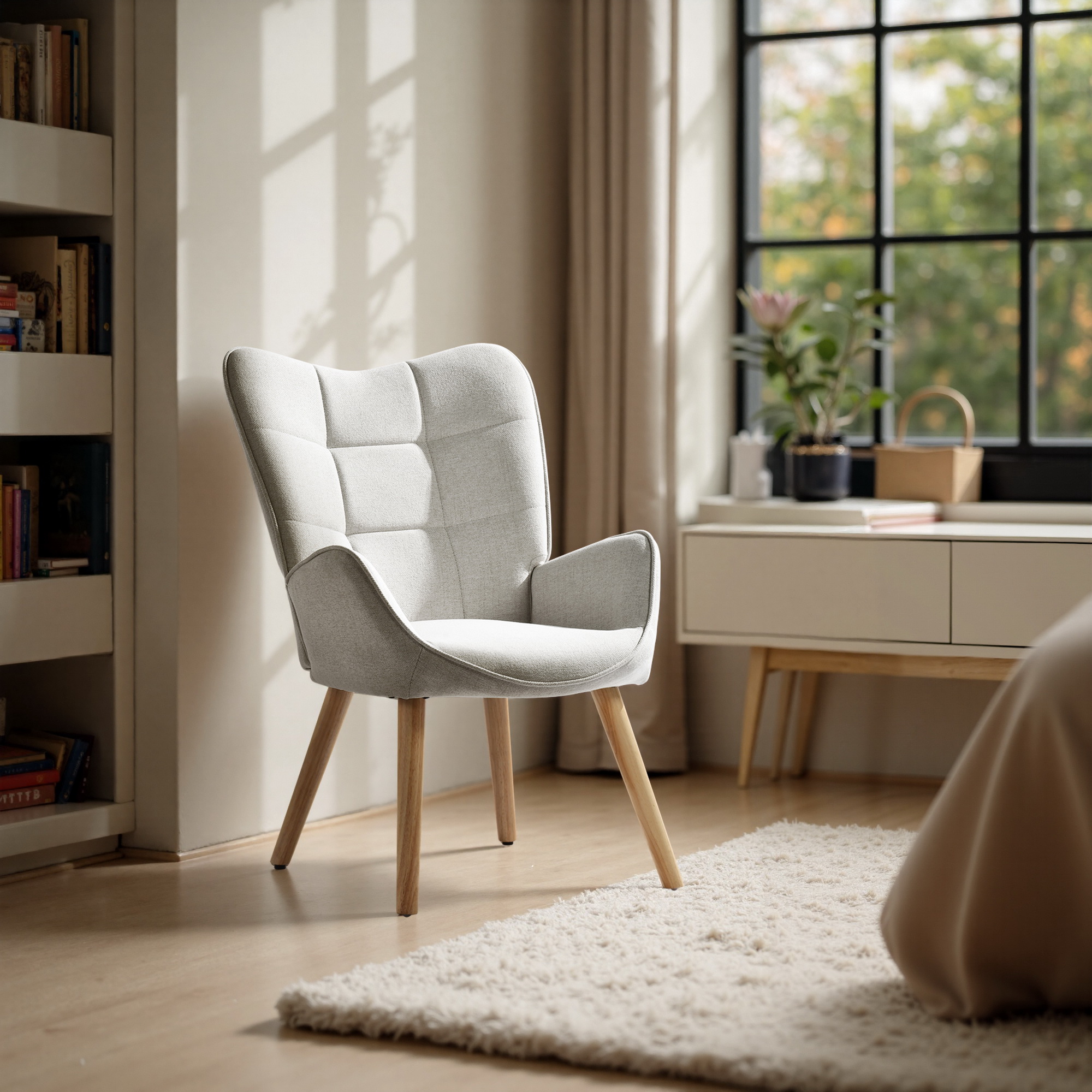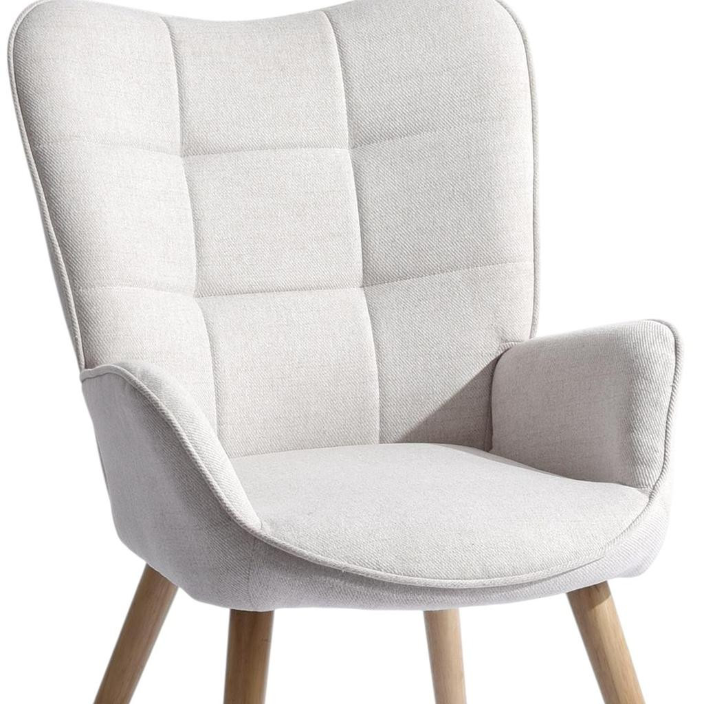 Stylish, elegant and fully functional, the 23-inch beige and natural tufted chenille and solid wood wingback chair adds a touch of panache to any set up. This versatile solid color beige wingback chair is masterfully upholstered in durable chenille with button tufted stitching. The high quality solid wood frame and legs are a natural color that creates a harmonious look with the neutral beige upholstery. 35.40-inch h x 22.80-inch w x 19.70-inch d.