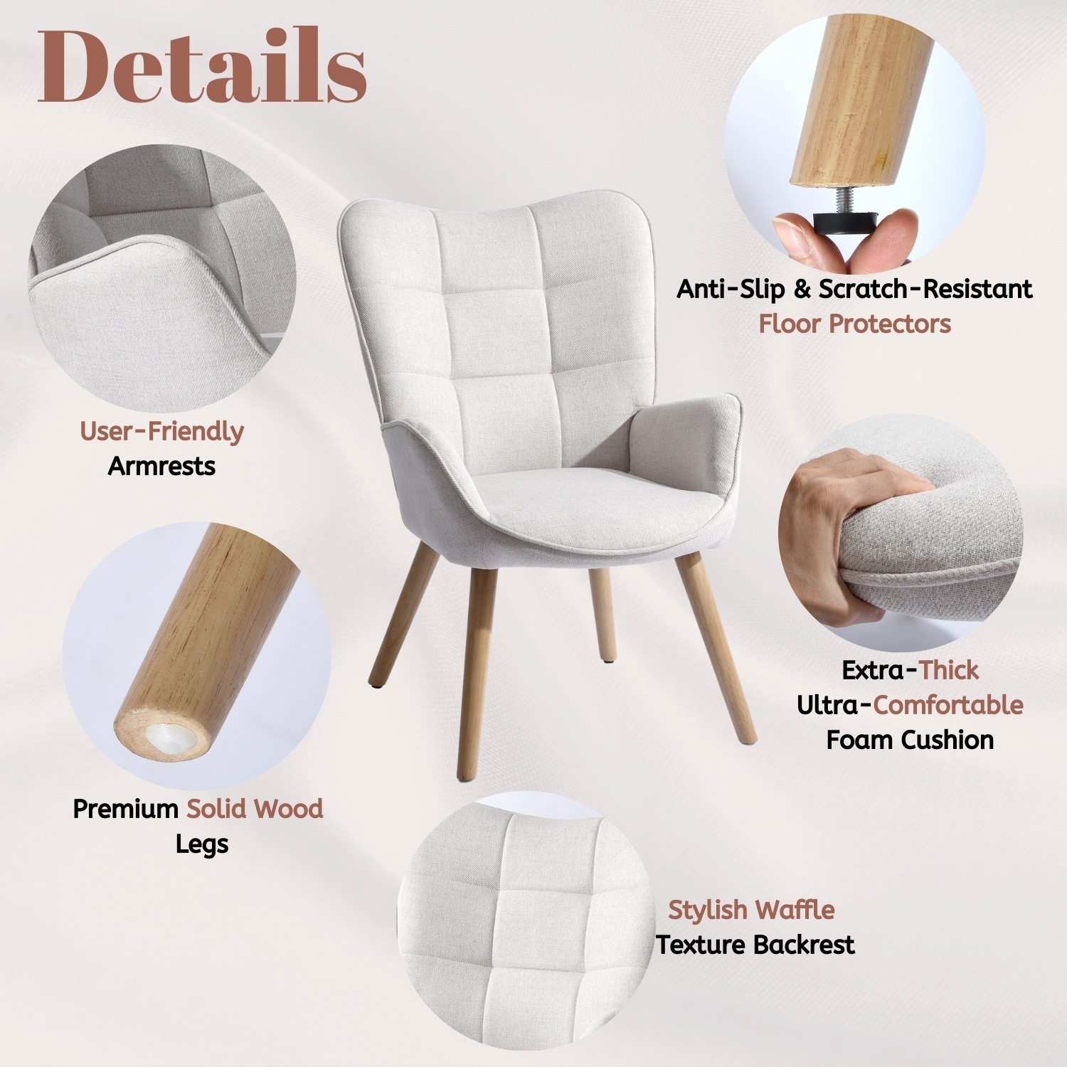 chenille solid wood wingback chair, 23" beige natural tufted chenille, wood wingback chair, beige natural tufted chenille solid, tufted chenille solid wood wingback |