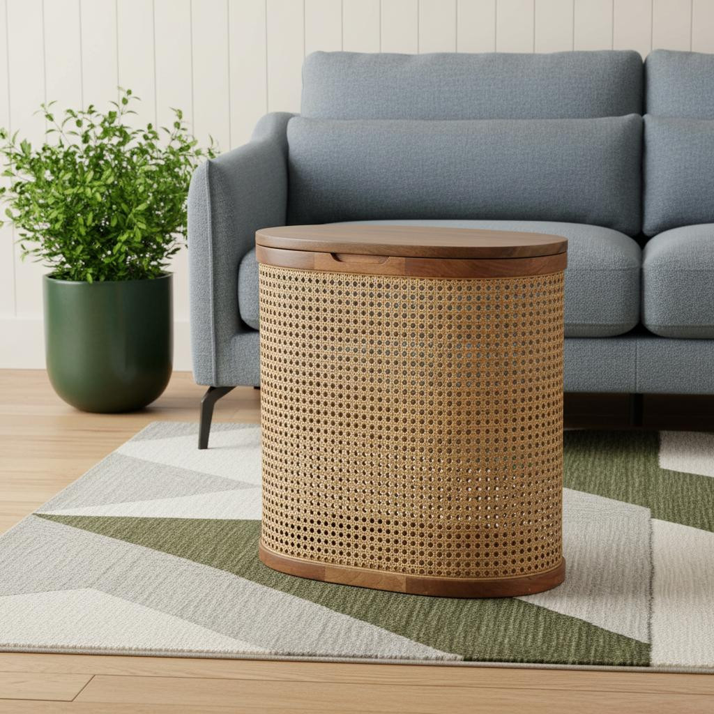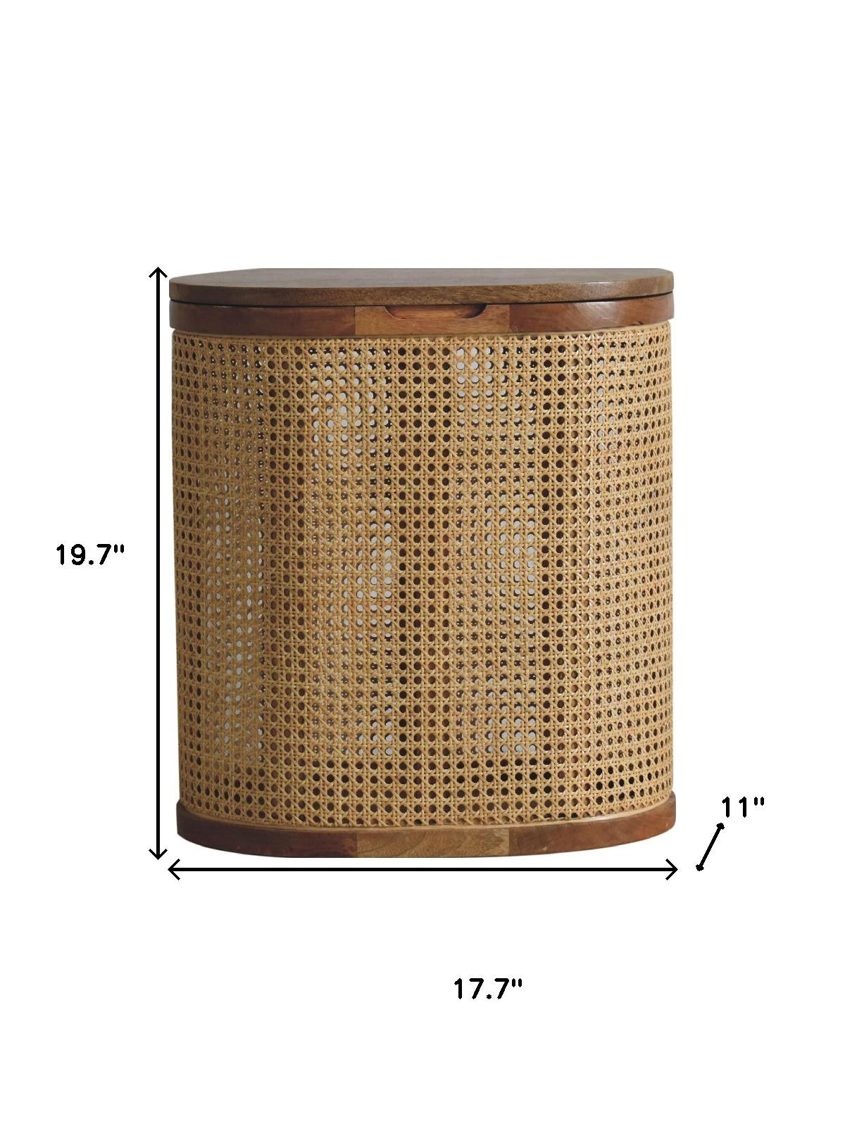 Practicality and fashion mix together with this handy 18-inch brown solid wood round storage ottoman. Designed to discretely add hidden storage to your room without sacrificing seating or foot rest space. Ottomans are multi-functional additions to your space that add fashion and practical value. 19.70-inch h x 17.70-inch w x 11.00-inch d.