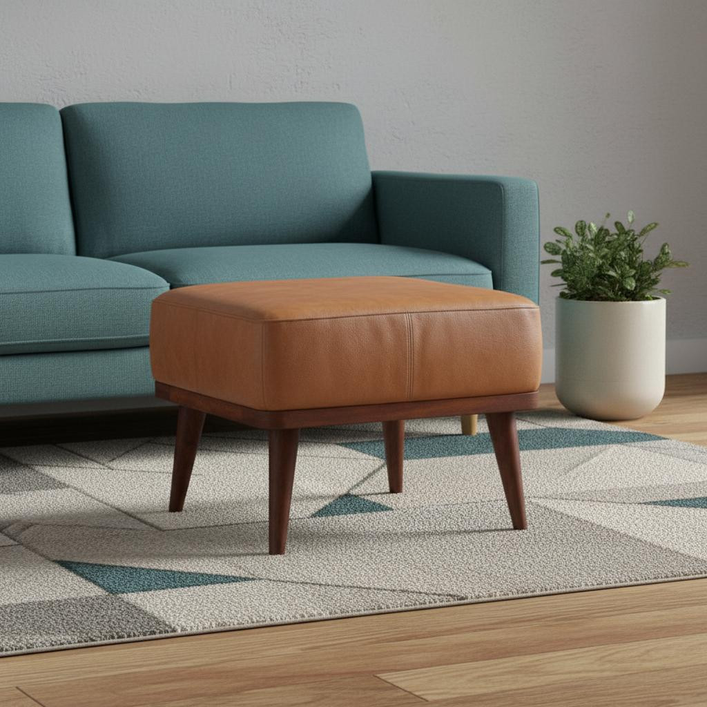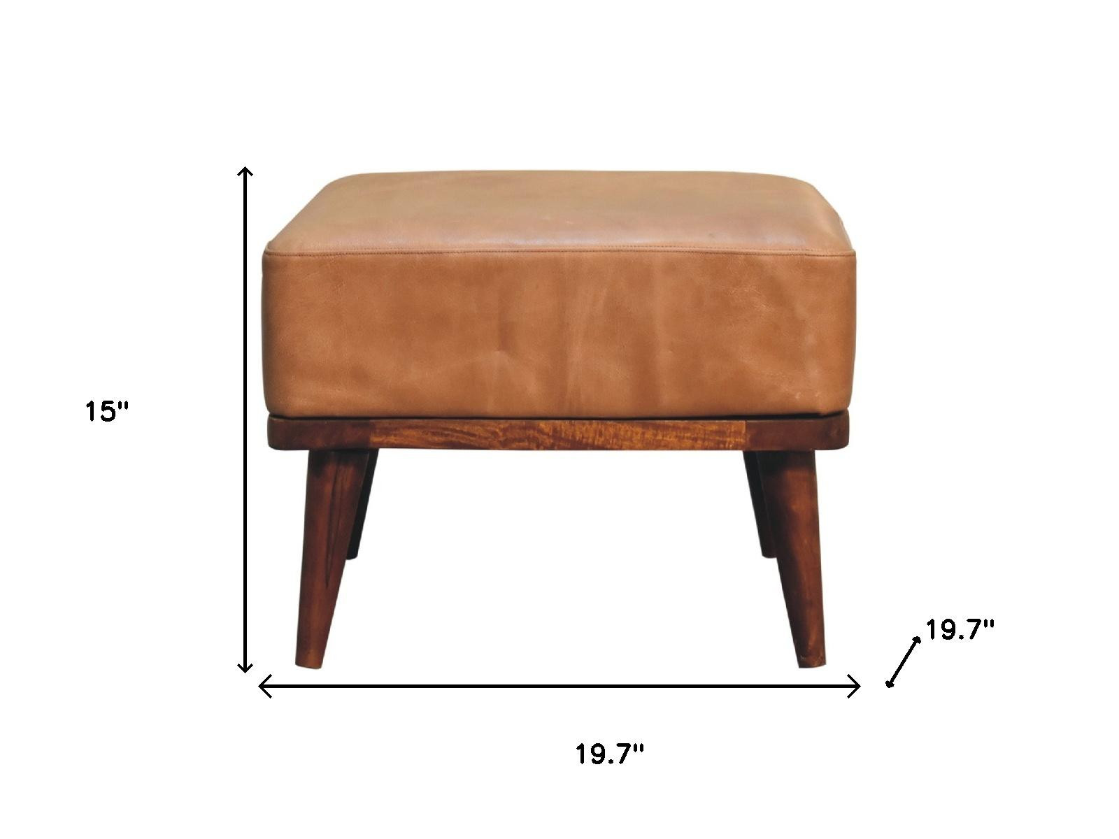 Optimize your space and add some charm to your room with the 20-inch brown leather round footstool. This footstool is a treasure at the end of the day as an ideal place to rest your feet and legs and can also be used for extra seating when needed in a pinch. A brown coloration runs throughout this good looking solid wood and upholstery ottoman. Expertly upholstered with padding in a soft solid color leather, this ottoman is as comfortable as it is good looking. Ottomans are multi-functional additions to your space that add fashion and practical value. 15.00-inch h x 19.70-inch w x 19.70-inch d.
