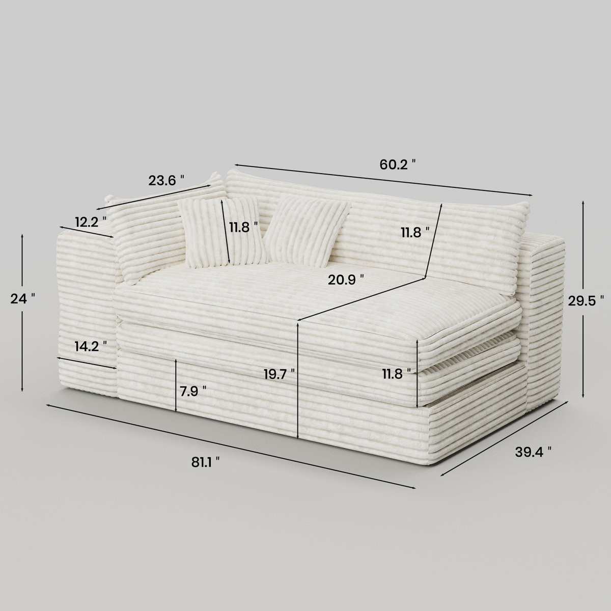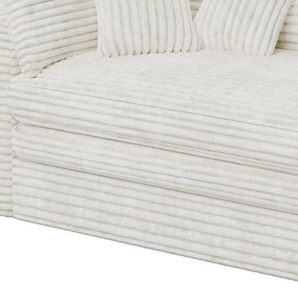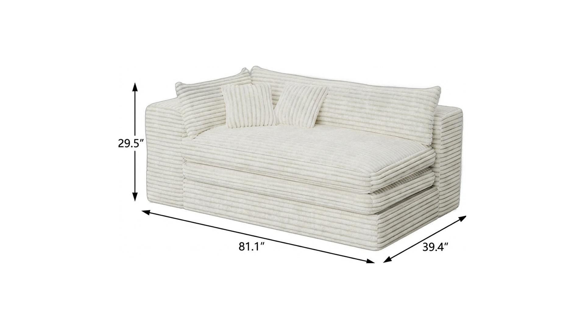 Fill your living room, bedroom, or office with fashionable seating options with this 81-inch white corduroy lounge chair. Built to last this lounge chair is finished in solid white corduroy to give your room a great update. The high quality foam inner frame flaunts convenient armrests and a cushion back that are complimented by soft and comfortable cushioning. 29.50-inch h x 81.10-inch w x 39.40-inch d.