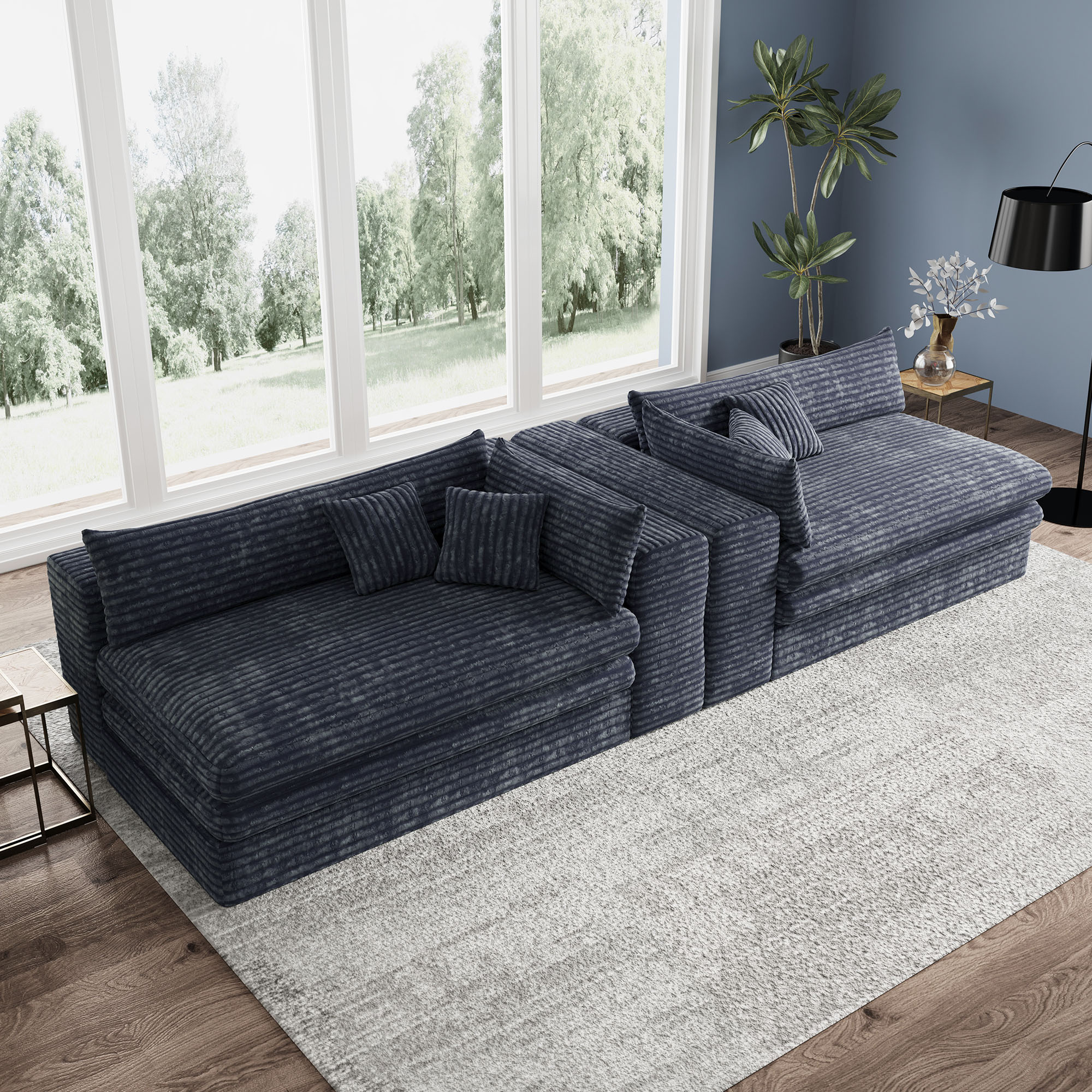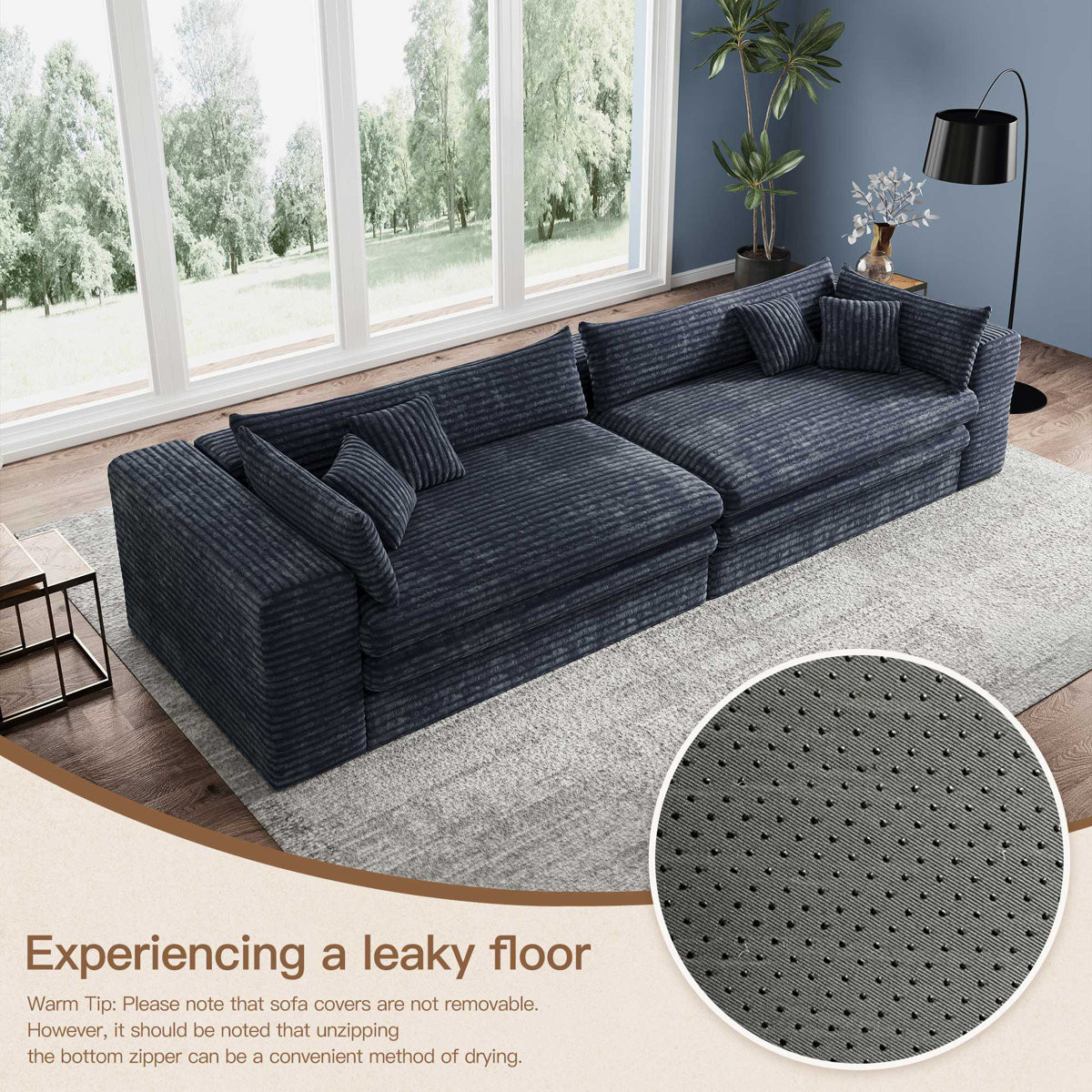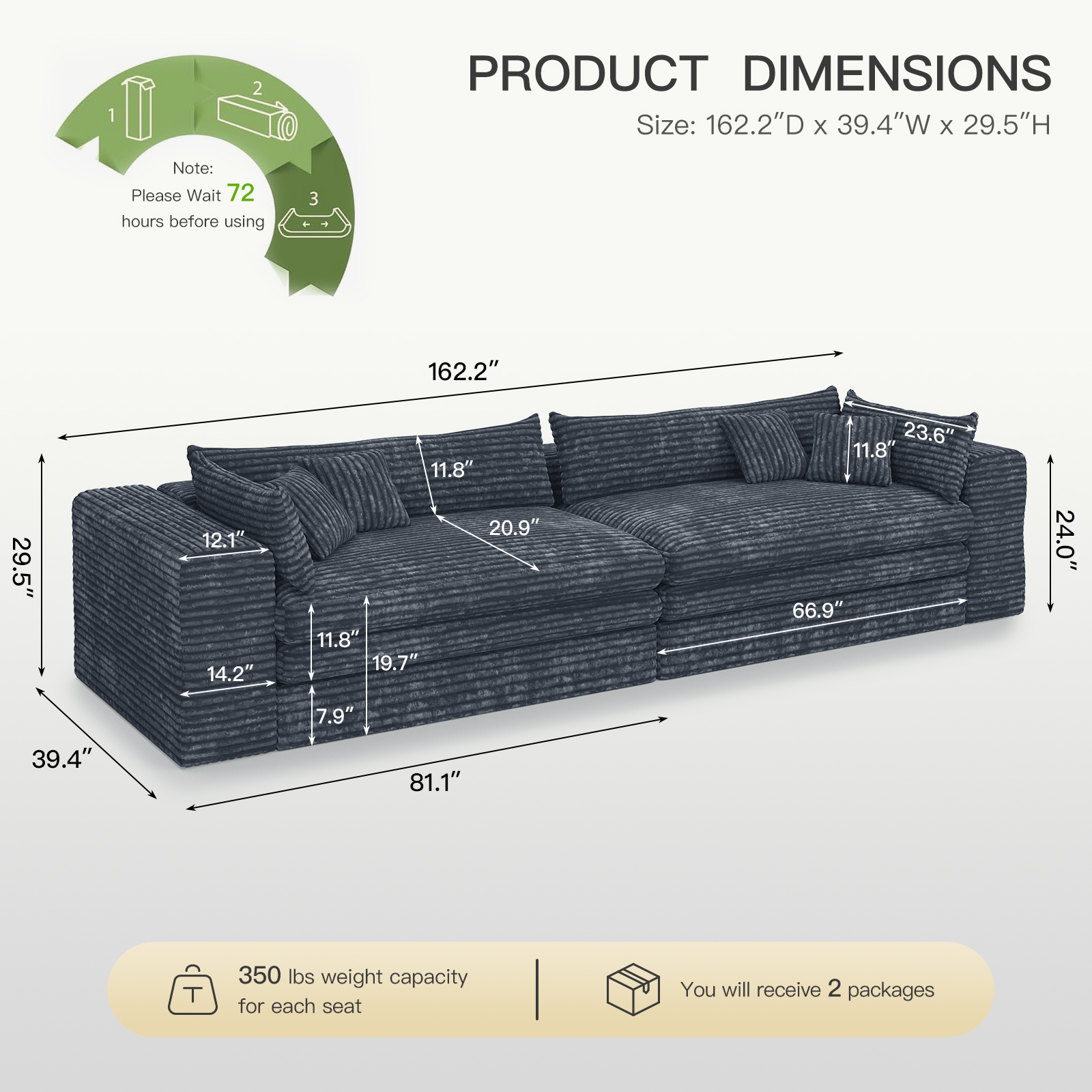 The 162-inch gray corduroy compression foam sofa combines comfort and style for your living space. Upholstered in soft gray corduroy, it features a solid color pattern that complements various decor styles. The modular design allows for flexible arrangement, making it perfect for casual gatherings. The sturdy foam frame ensures durability and resilience, providing lasting enjoyment. This sofa also includes arms for added comfort and support, making it an ideal choice for lounging or entertaining guests. Transform your home with this stylish and functional centerpiece. 29.50-inch h x 162.20-inch w x 39.40-inch d.