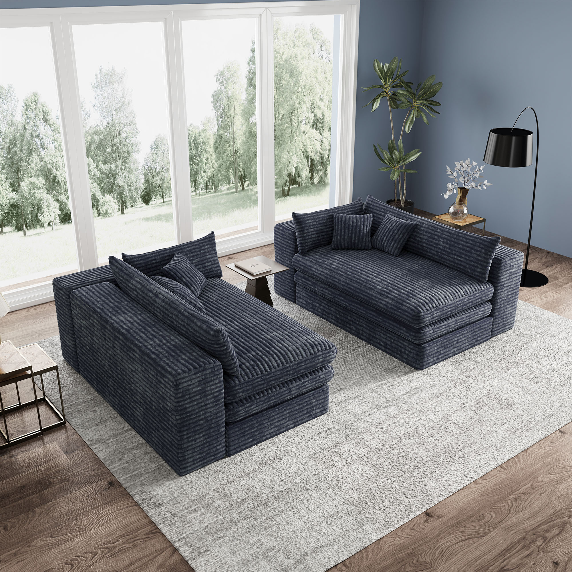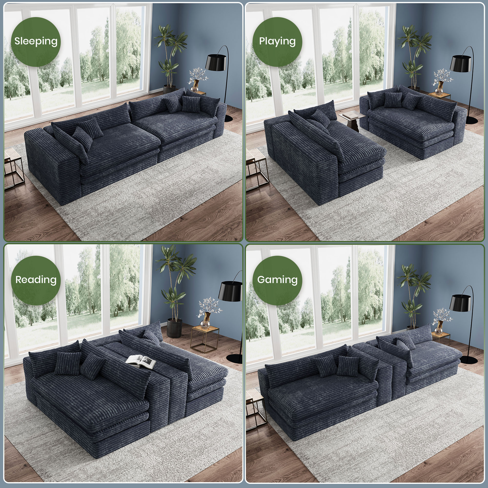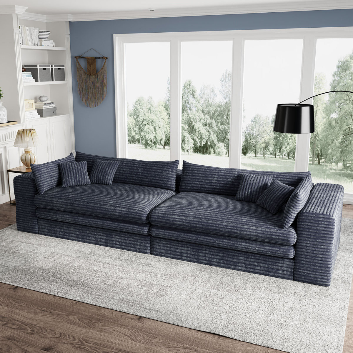 The 162-inch gray corduroy compression foam sofa combines comfort and style for your living space. Upholstered in soft gray corduroy, it features a solid color pattern that complements various decor styles. The modular design allows for flexible arrangement, making it perfect for casual gatherings. The sturdy foam frame ensures durability and resilience, providing lasting enjoyment. This sofa also includes arms for added comfort and support, making it an ideal choice for lounging or entertaining guests. Transform your home with this stylish and functional centerpiece. 29.50-inch h x 162.20-inch w x 39.40-inch d.