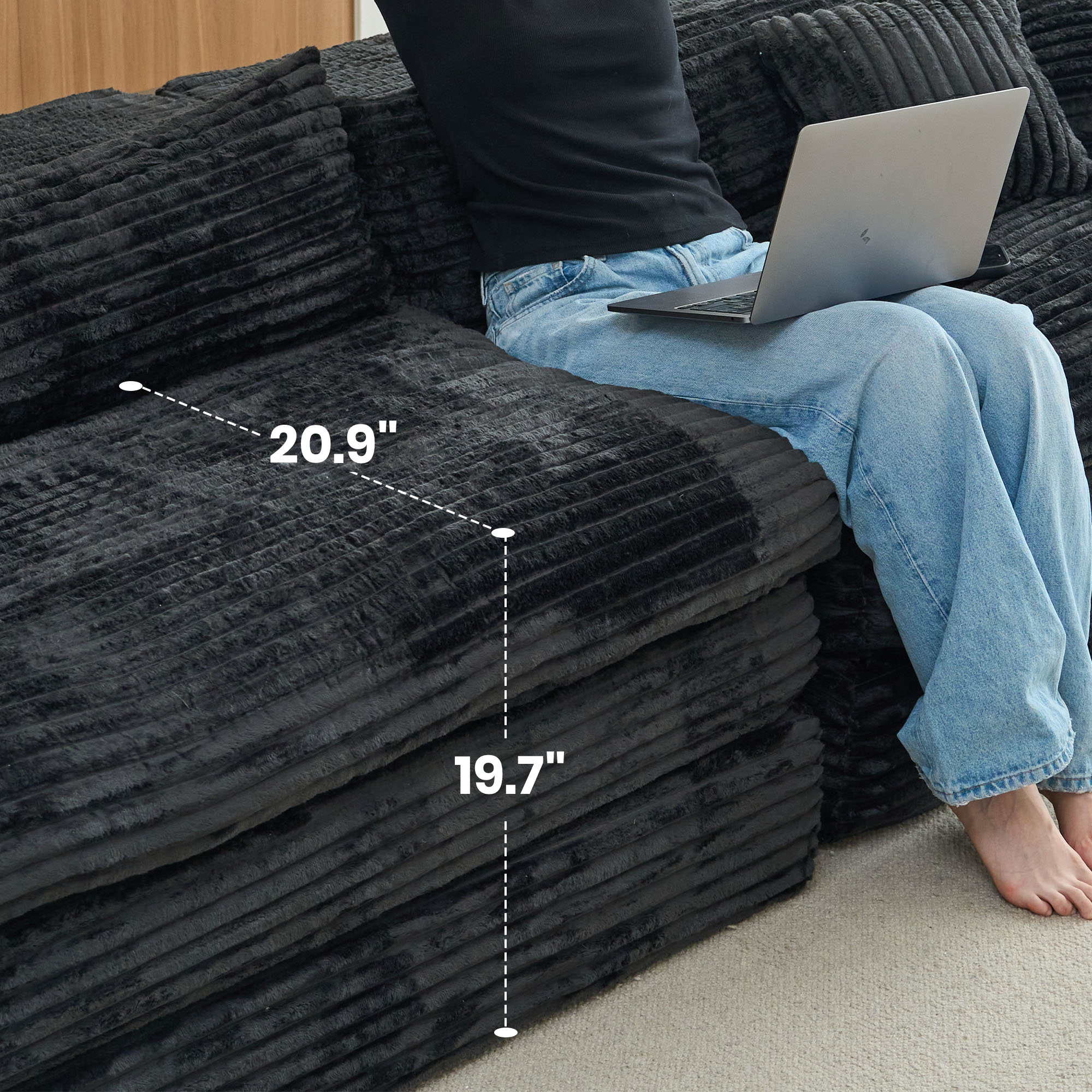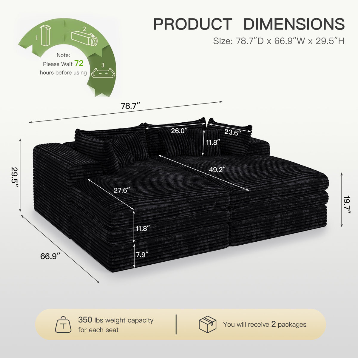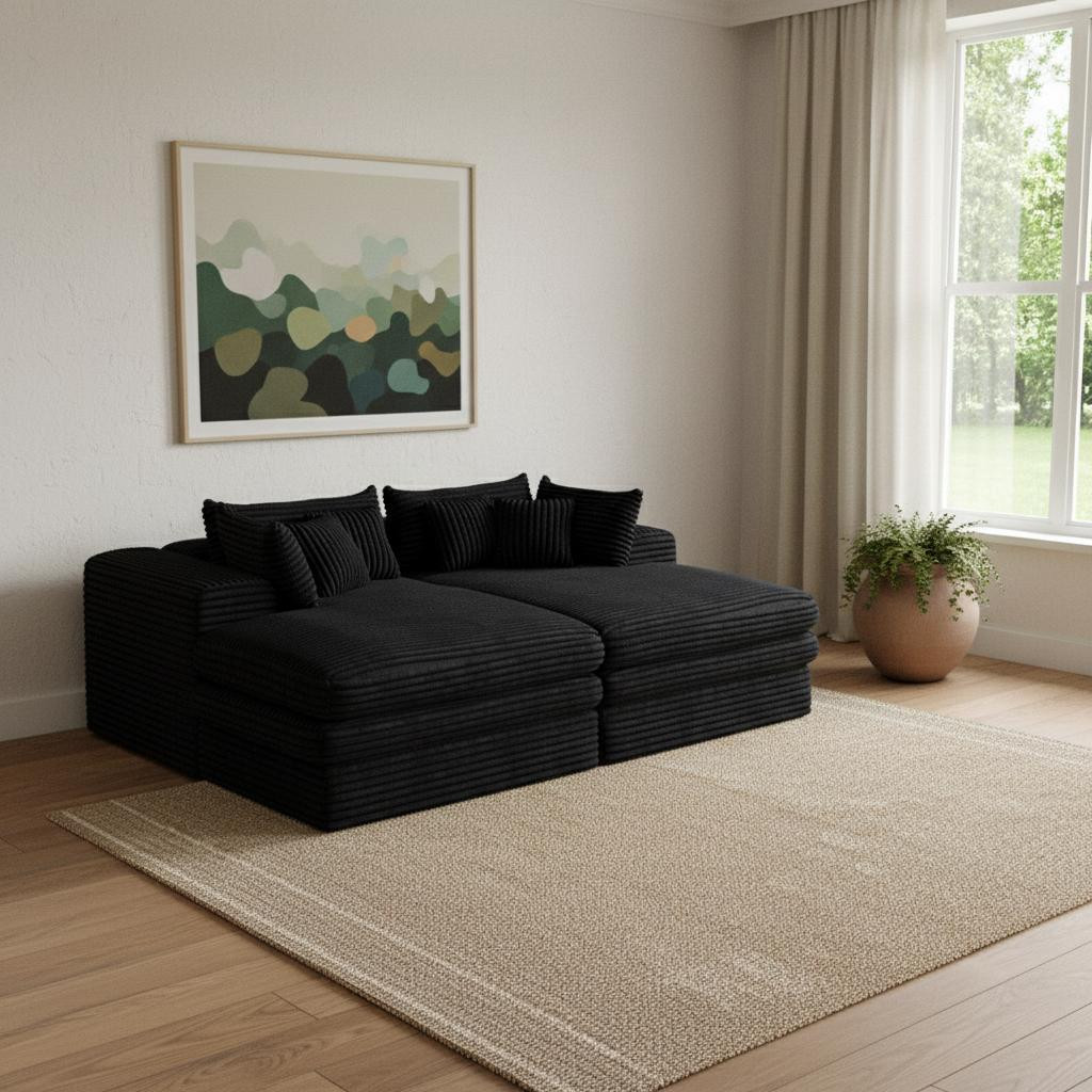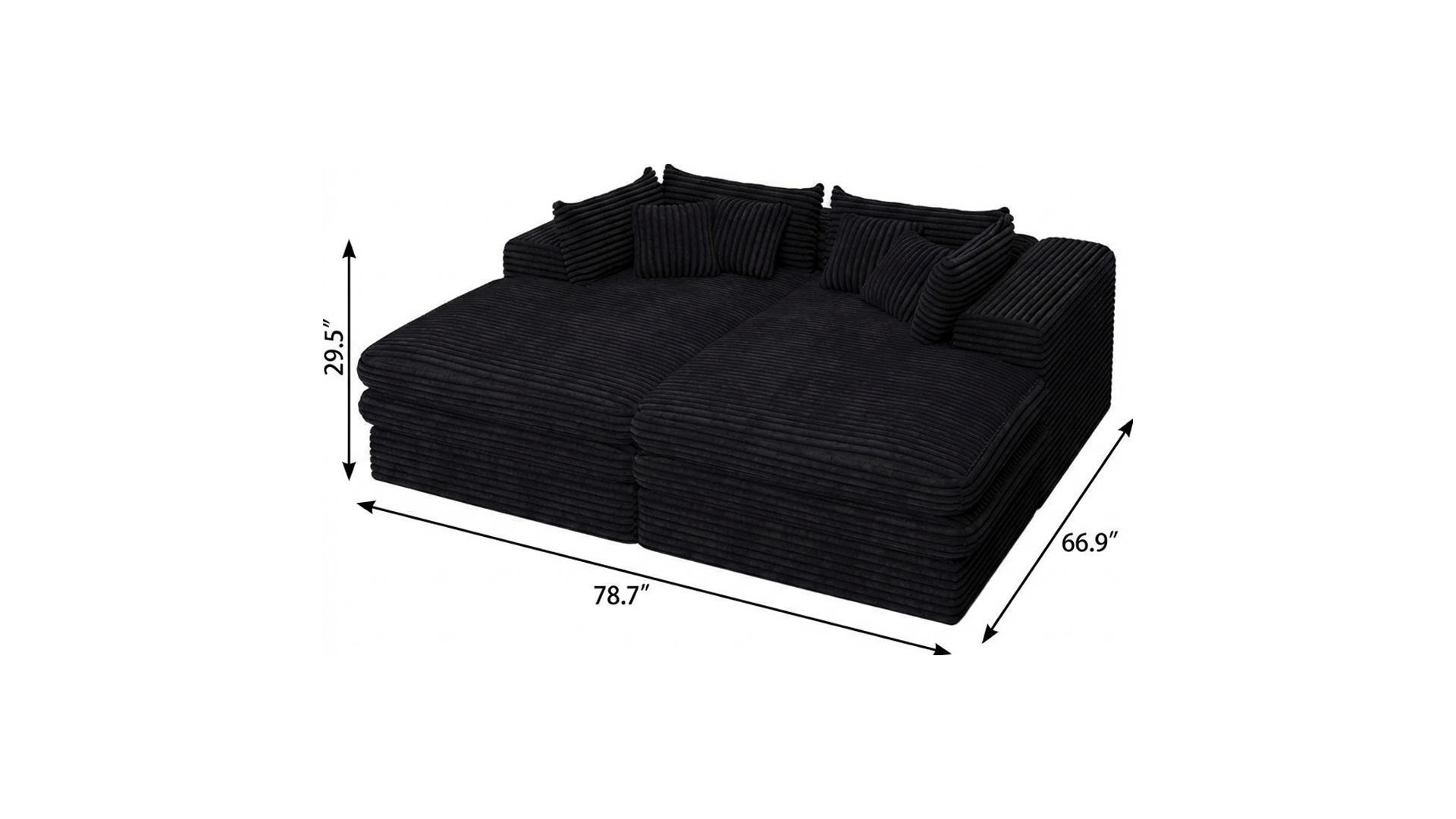 Add an air of fashion to your space with this fabulous 79-inch black corduroy sleeper sofa. This solid color standard is made from corduroy that is unique and gives this piece some special flair. Solid colors give you lots of decorative options and are easy to work into your decor scheme. Removable back cushions make this sofa easy to manage. Square arms offer a comfy place to rest. A great showpiece for your room, this sofa is a must have. 29.50-inch h x 78.70-inch w x 66.90-inch d.