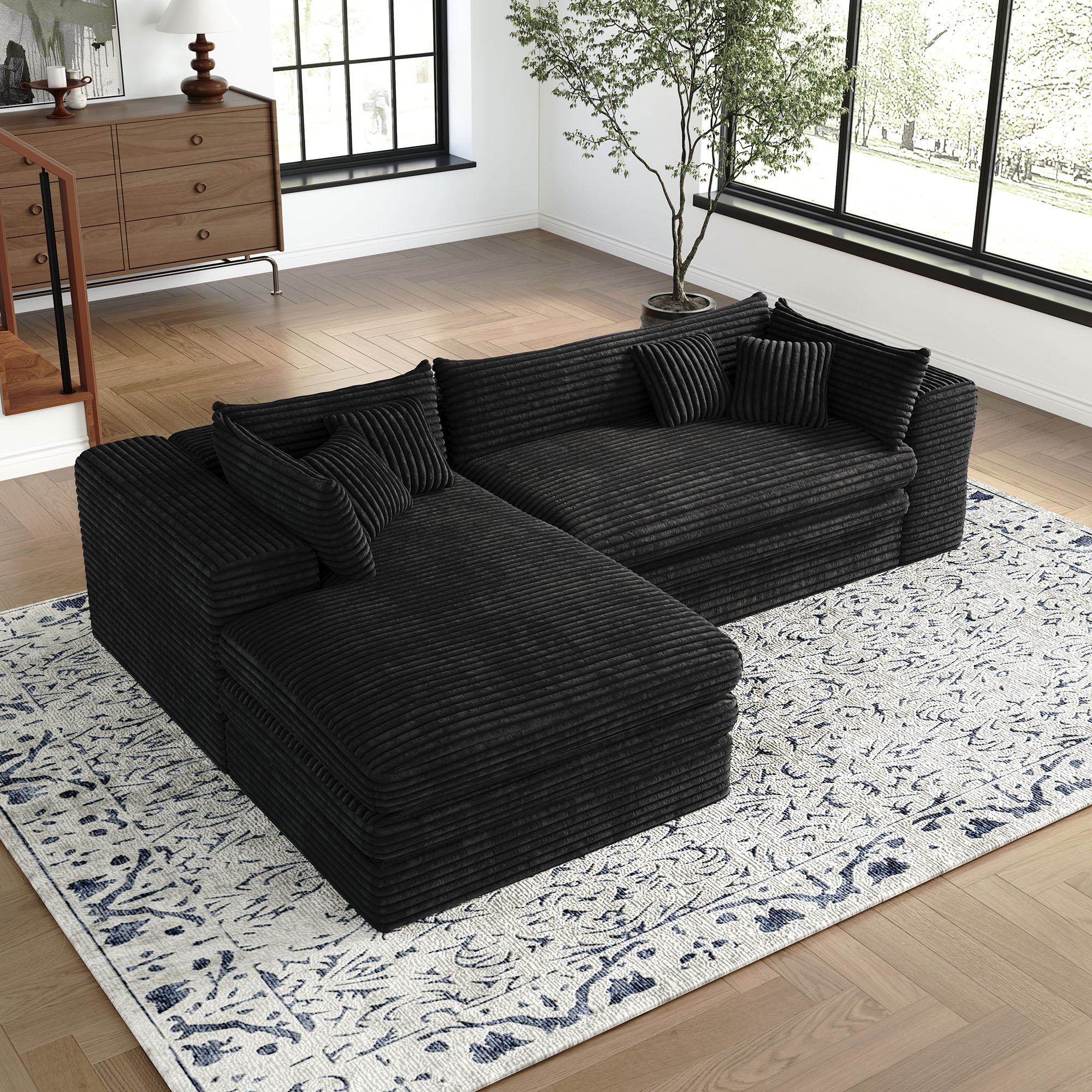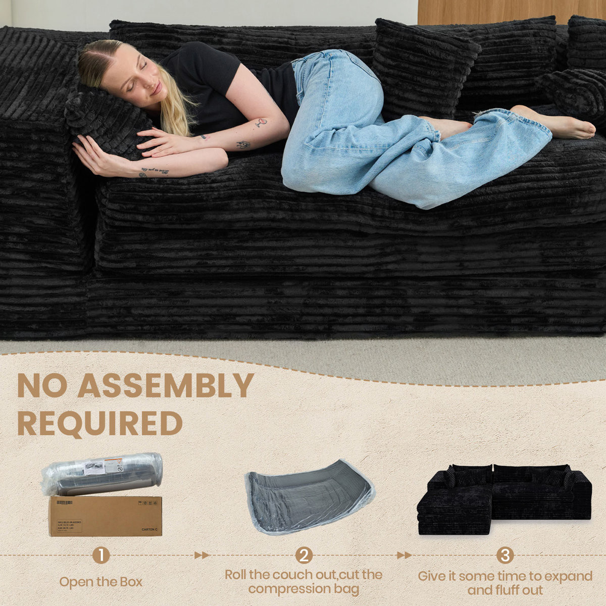 black corduroy compression foam sofa, corduroy compression foam sofa, compression foam sofa, 121" black corduroy compression foam, black corduroy compression foam |