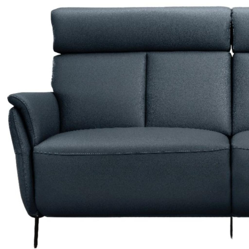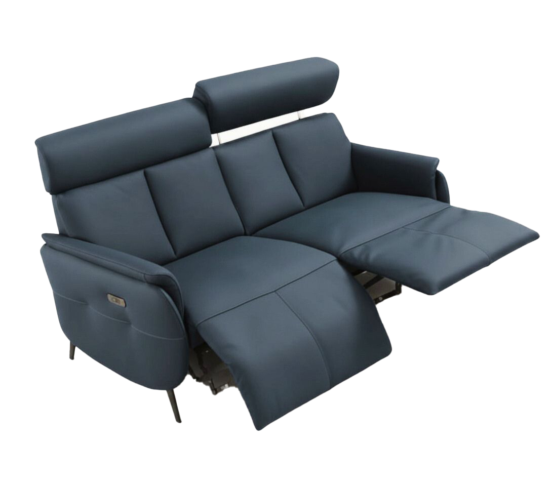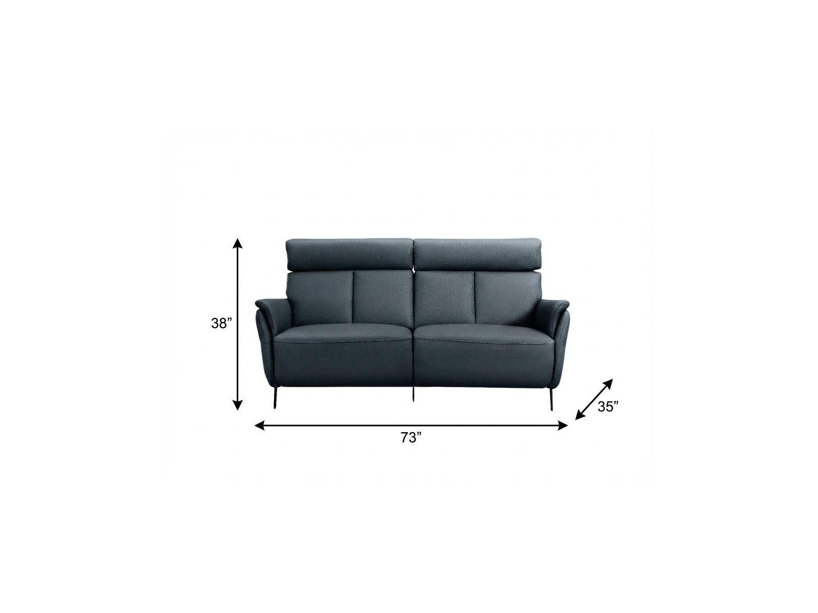 An interior designer's dream, this buttery soft high grade leather 73-inch blue leather reclining usb sofa will bring just the right touch to your space. The premium leather used makes your lounging luxuriously comfortable and adds an elegant appeal to your space. Solid colors give you lots of decorative options and are easy to work into your decor scheme. Flared arms offer a comfy place to rest. Black metal legs effortlessly elevate the room and add a touch of contemporary design. Built to last, this sofa will be a great centerpiece for your room. 38.00-inch h x 73.00-inch w x 35.00-inch d.